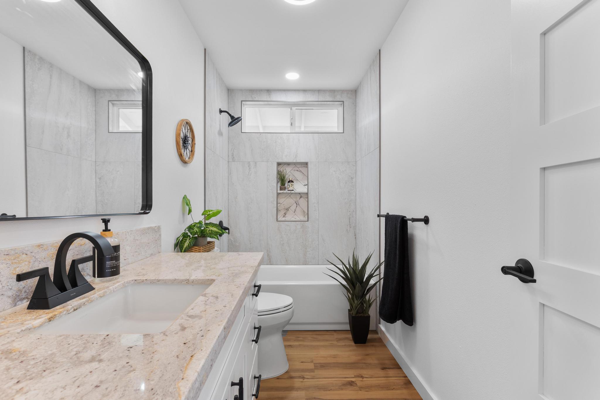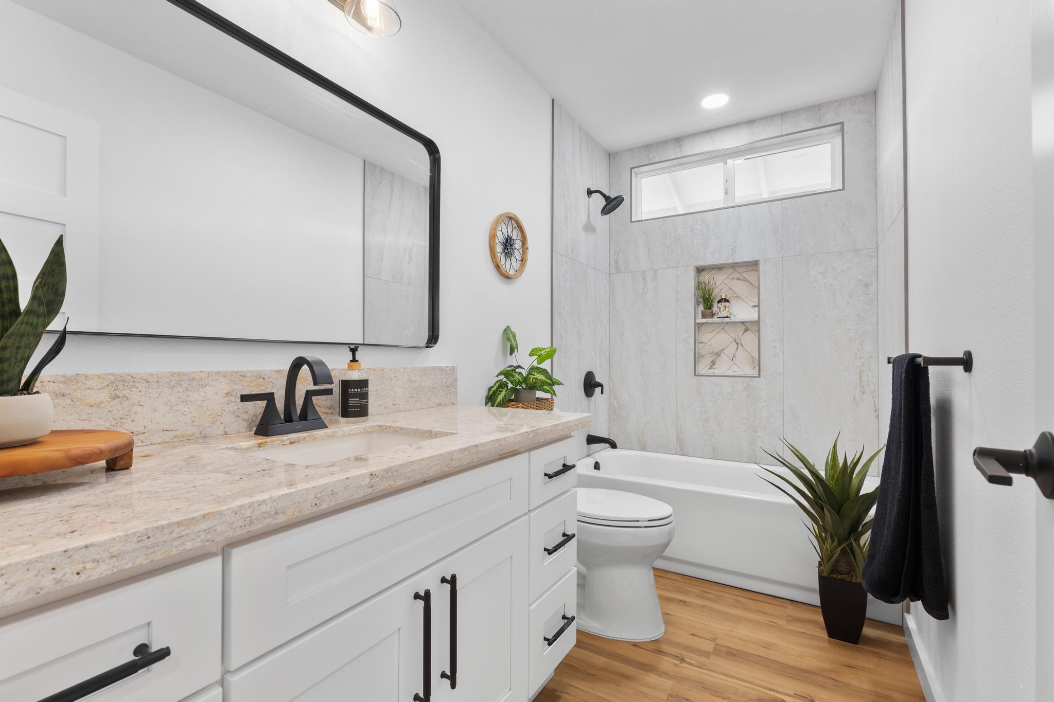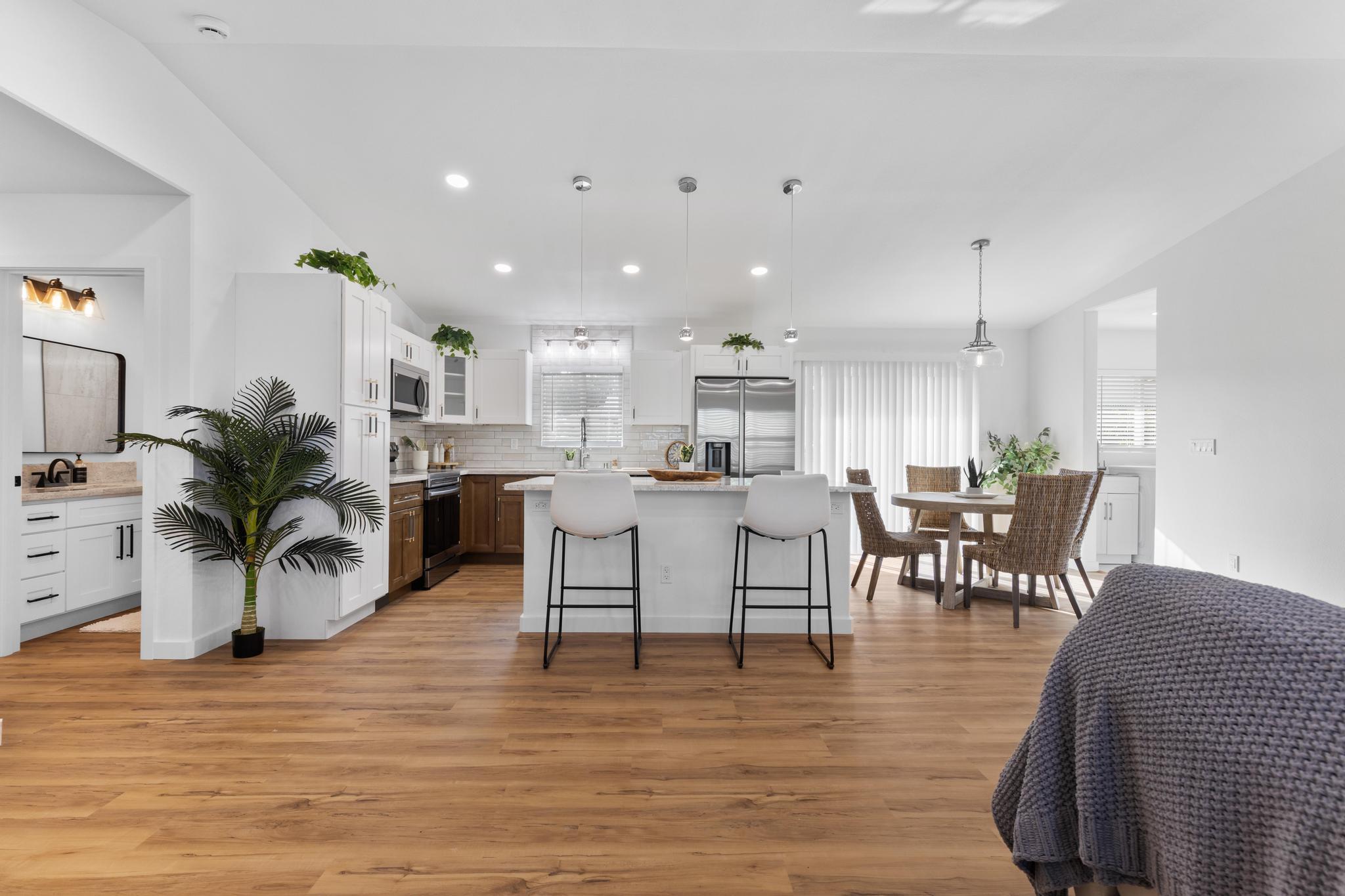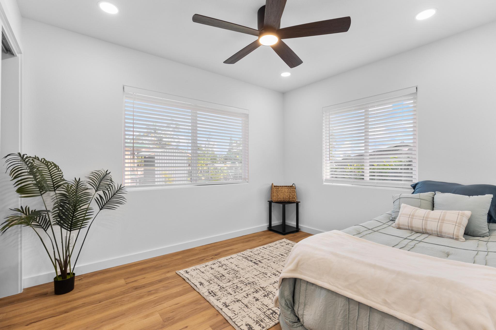 You Asked… and We Delivered! Turnkey Living in Ainaloa on Uilani Drive! This brand new home was built with you in mind. You asked for a 3 bedroom home with more than two bathrooms, we delivered 2.5! You asked for a chain link fence, we added one with a gate. You asked for a driveway, we paved it with asphalt. You wanted an enclosed garage, we built it in. You asked for a yard and landscaping, we gave you grass and native plants. You asked to be on a paved road, well, we are, right toward the front half of the subdivision! From the moment you arrive, you’ll see this home stands out from the rest. Sitting on a spacious 12,000 sq ft lot, it’s designed for comfort, style, and functionality. Step inside to an open concept floor plan featuring 3 bedrooms, 2 full bathrooms, plus an additional half bath conveniently located in the lovely epoxy garage. The modern kitchen is the heart of the home, with a 7 foot quartz island, custom tile backsplash, dishwasher, and clean contemporary finishes. High-end tile flows throughout the bathrooms, offering natural texture and long-lasting quality. You’ll love the barn style windows, window blinds already installed, and the bright, airy feel throughout. Outside, enjoy classic board-and-batten siding, a brand new asphalt driveway, chain link fencing with palm lined borders for privacy, and a freshly seeded lawn ready for you to make it your own. With a 1 year general contractor’s warranty included, this home is as solid as it is stunning. Don’t miss your chance to own a brand new home in one of Puna’s most desirable and fast-growing neighborhoods. This one truly delivers.