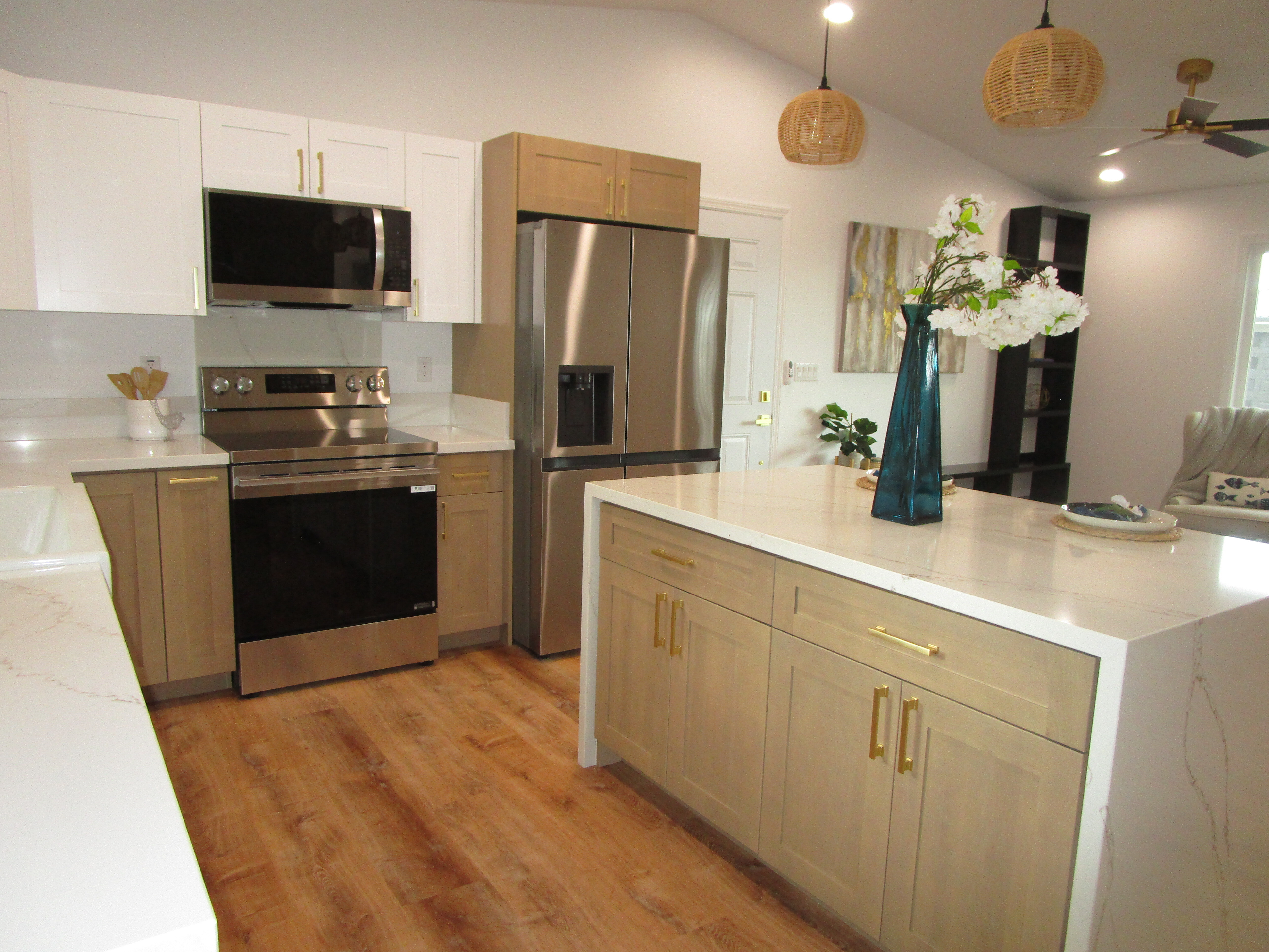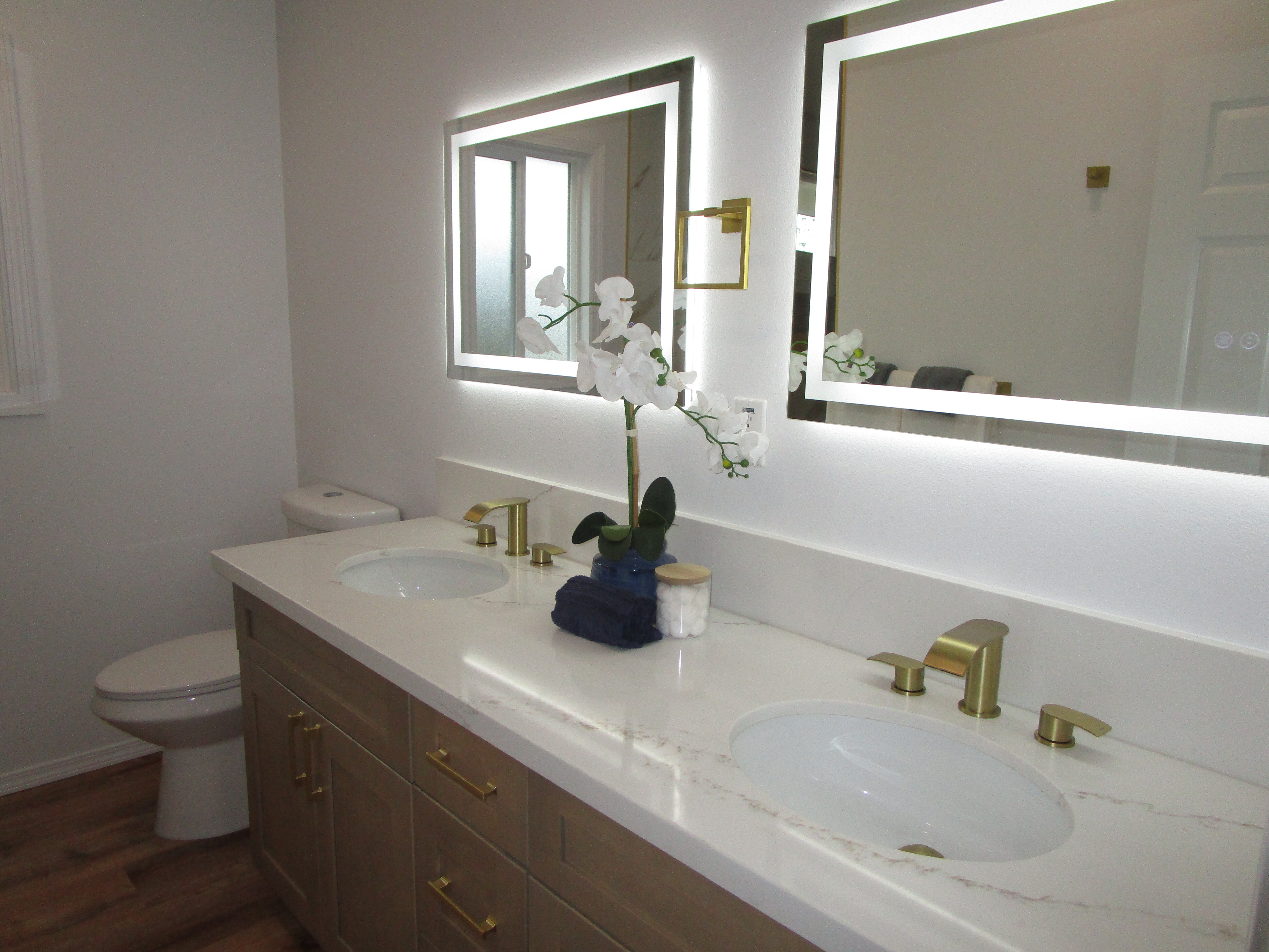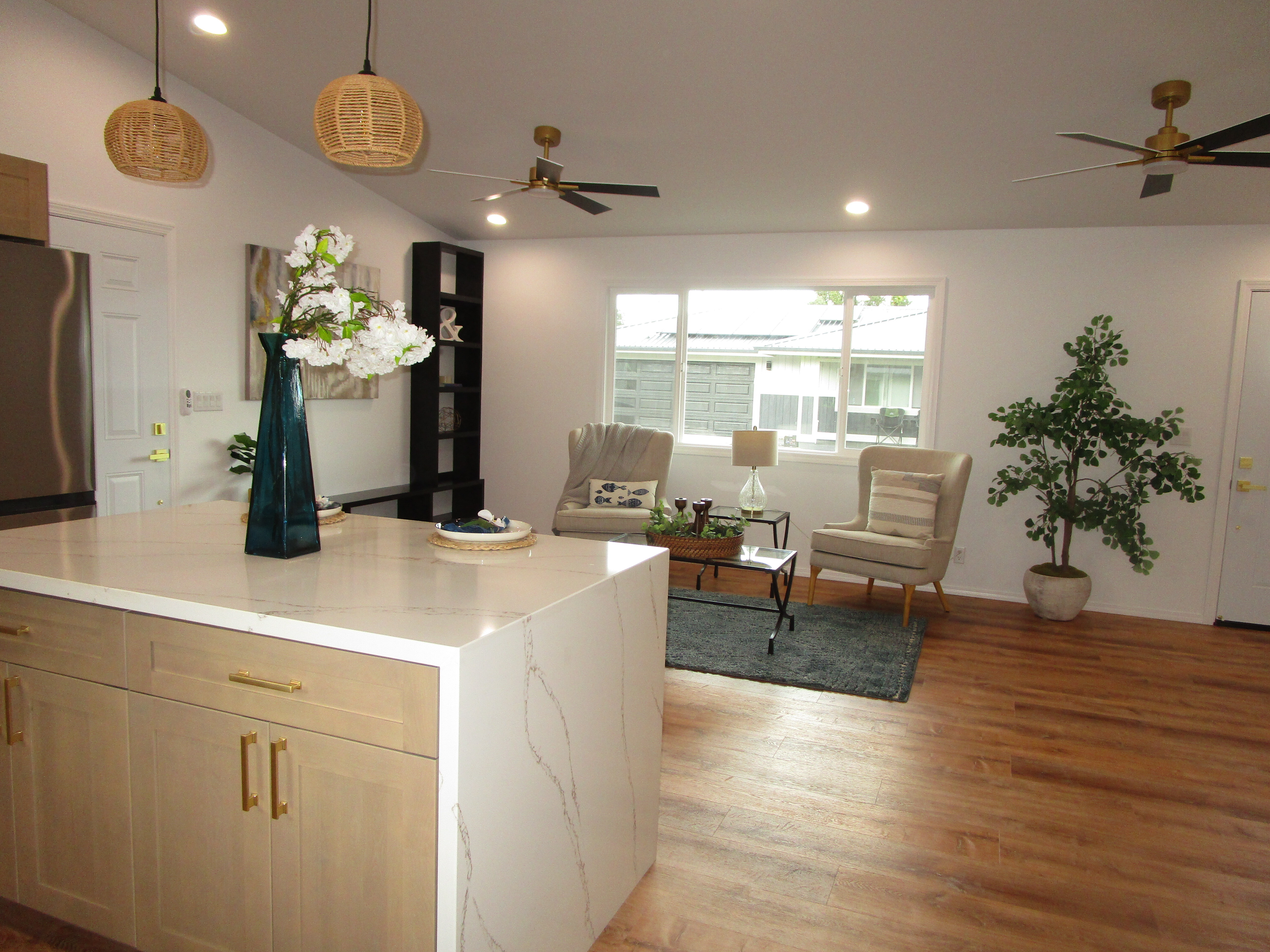 Brand new 3-bedroom 2 bath home with so many upgrades! Open kitchen/living room comes with an island, spacious barn style sink with touchless water flow facet. Primary bedroom is light and airy with a sliding glass door, dual sinks and vanity mirrors, tiled shower enclosure with dual shower heads. Also has custom design walk-in closet. Lovely lighting and plumbing fixtures throughout with soft closure cabinets. Vaulted ceilings with fans to keep home cool. Back patio great for the BBQ party! Many nice newer homes on Ginger.