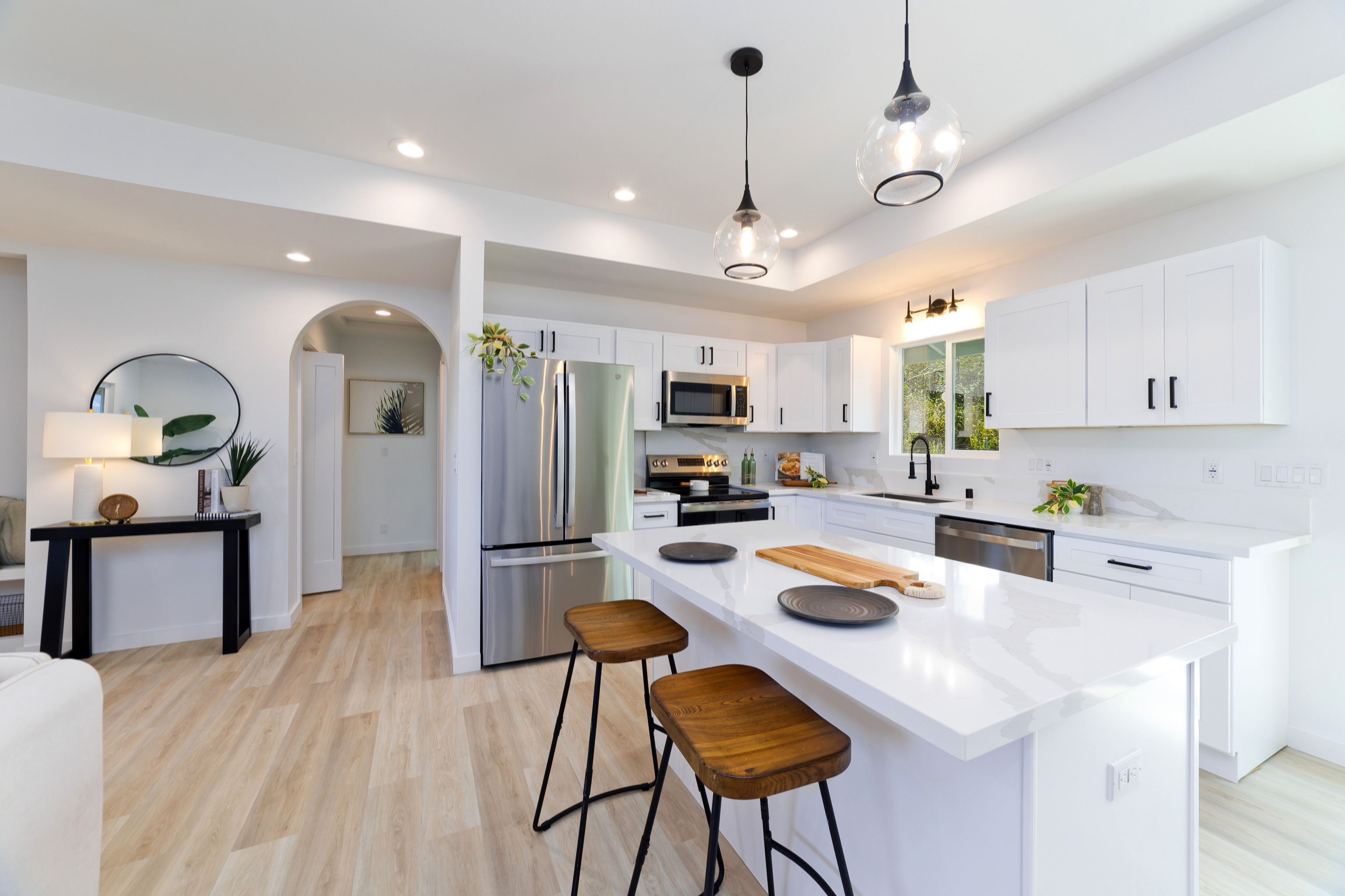 As you enter, you're welcomed by a charming nook, perfect for a reading corner, small office, or creative space. The open concept layout seamlessly connects the living room, dining area, and kitchen, making it ideal for entertaining or family gatherings. The kitchen features brand new appliances, sleek cabinetry, and a functional layout that makes cooking and hosting a breeze.