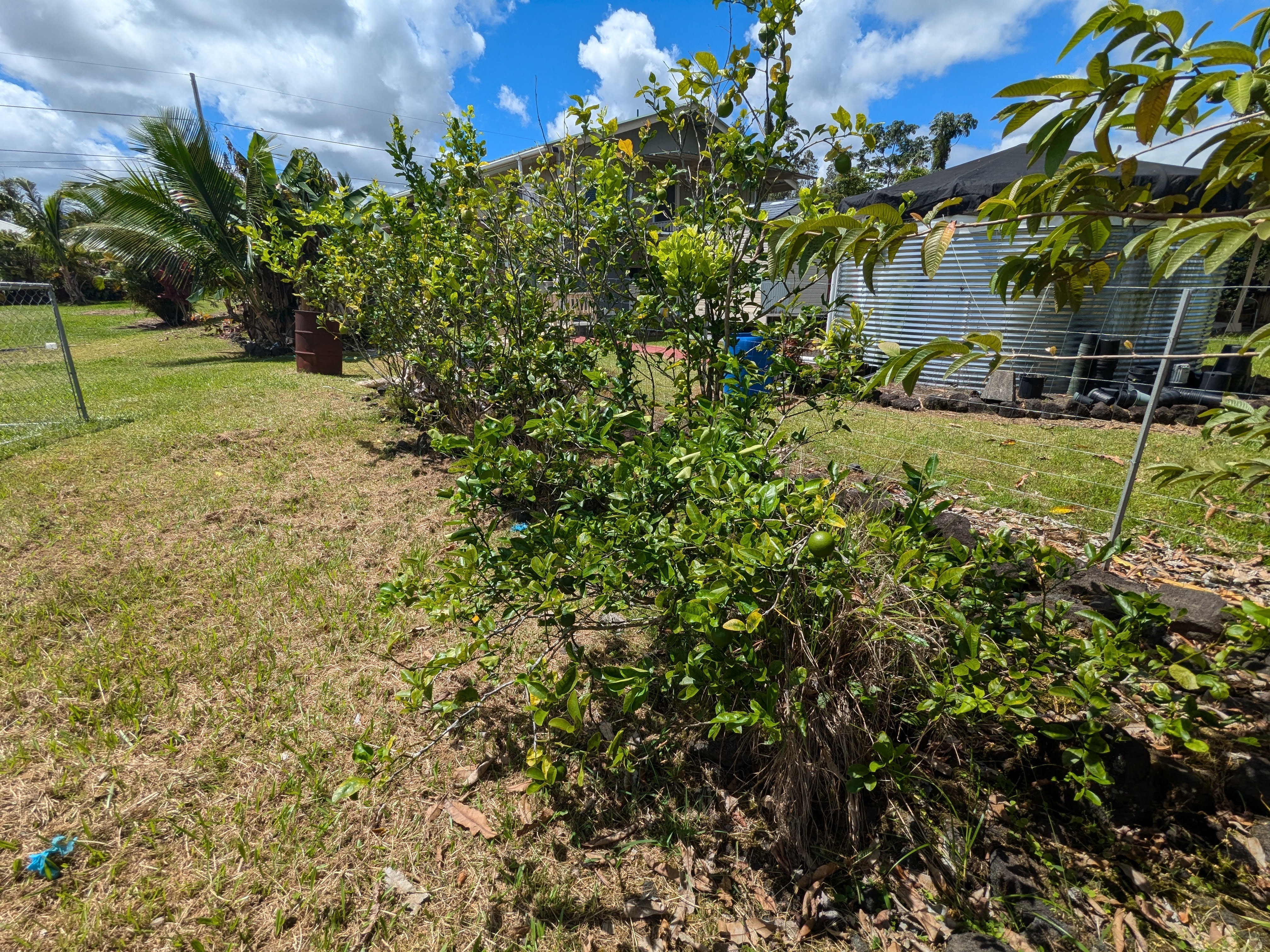 This fully cleared and fenced quarter-acre lot is ideally located along a paved road and includes a small agricultural structure with a carport. The property is beautifully landscaped and features a lush variety of tropical fruit trees and plants, including lemon, avocado, lychee, mountain apple, banana, right from your own yard! Learn more about the community at Ainaloa.org