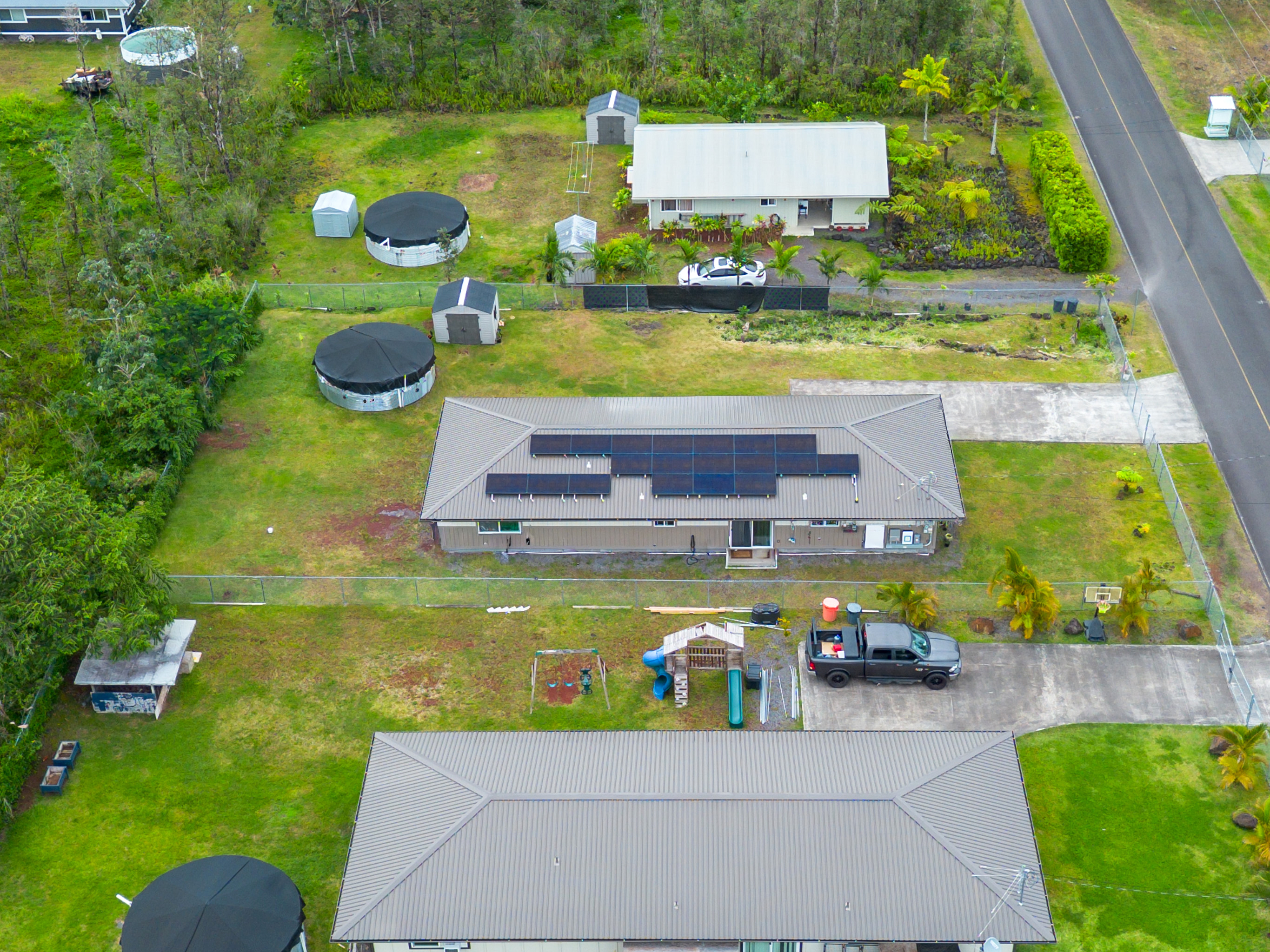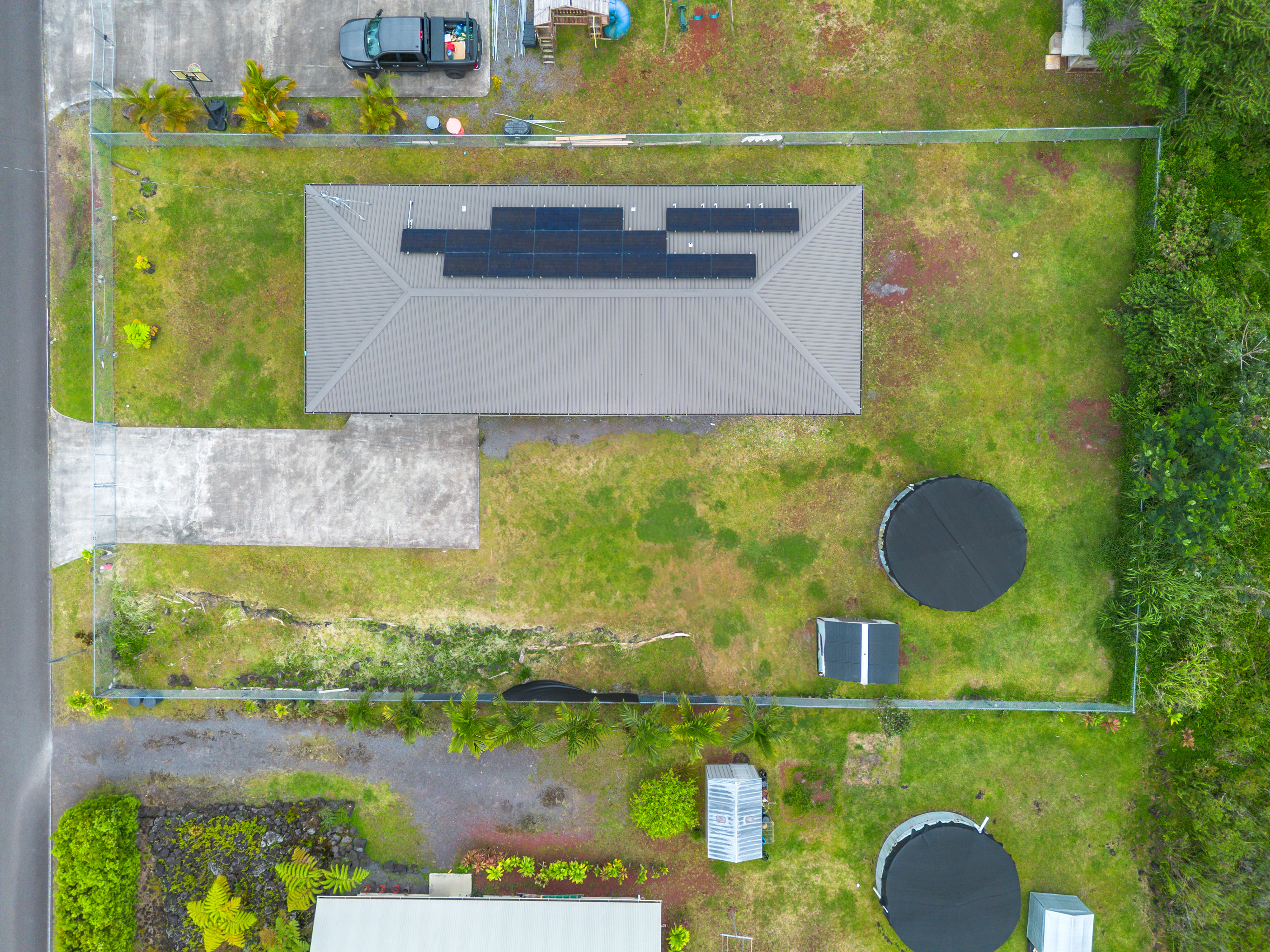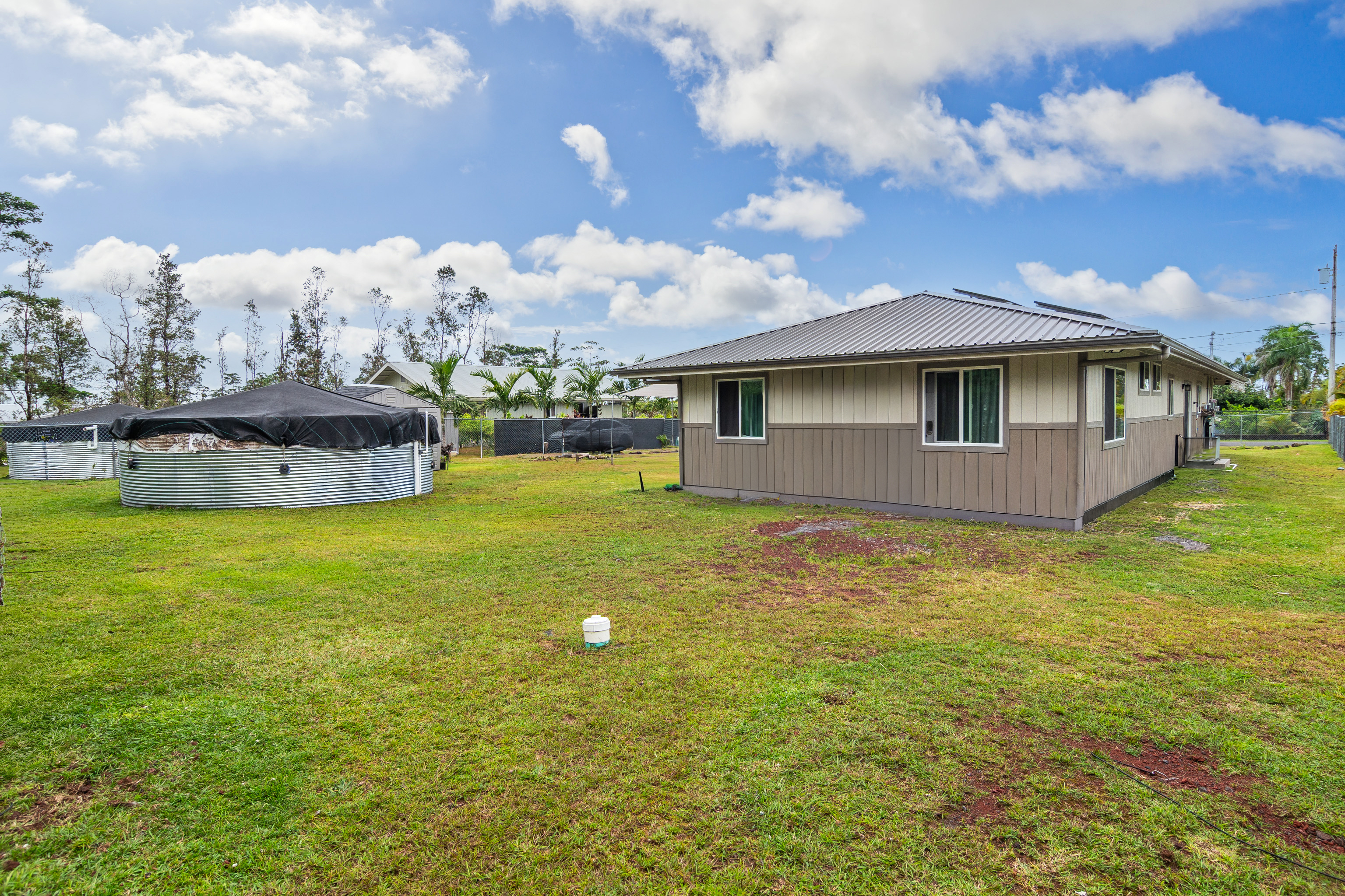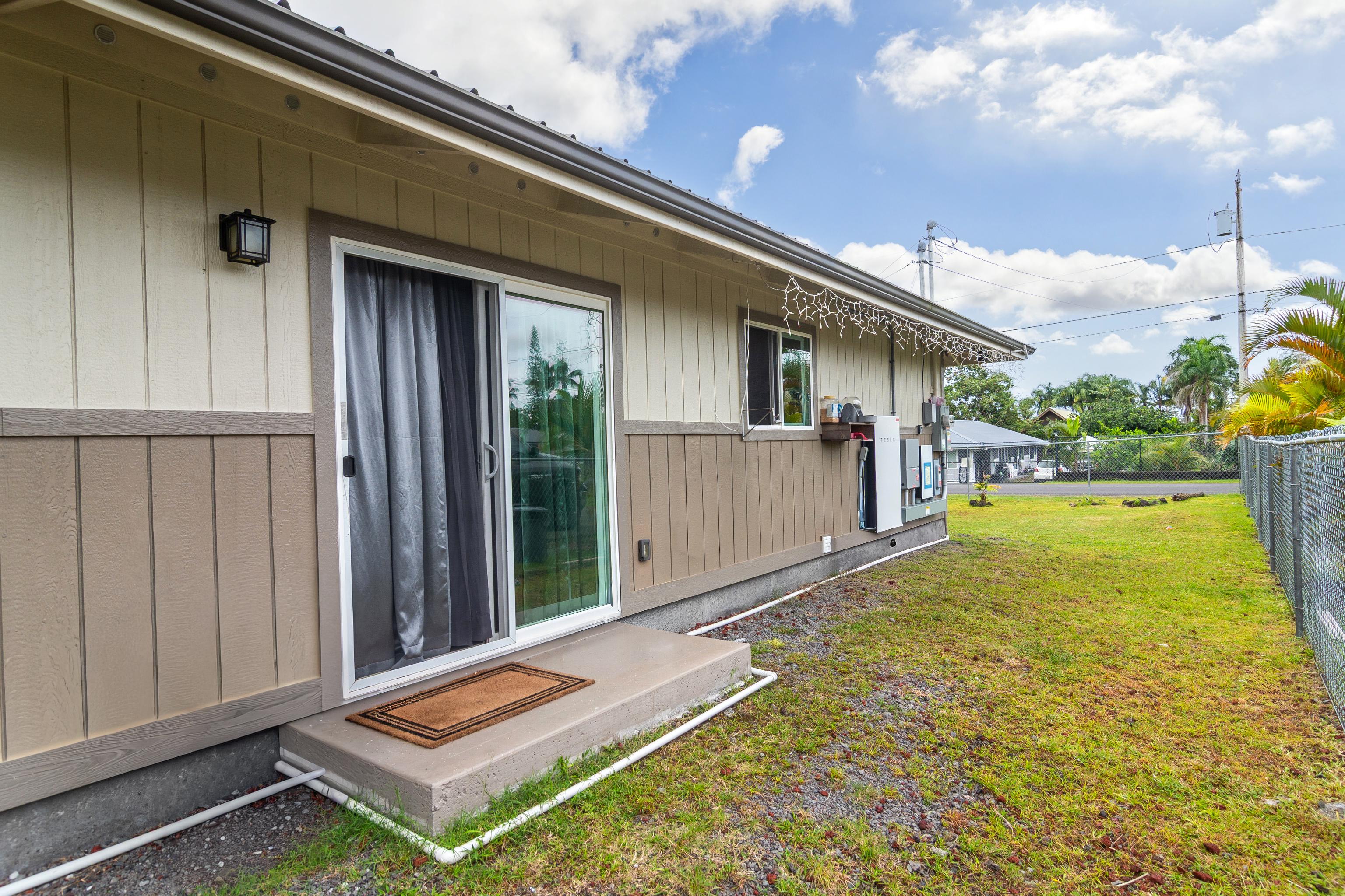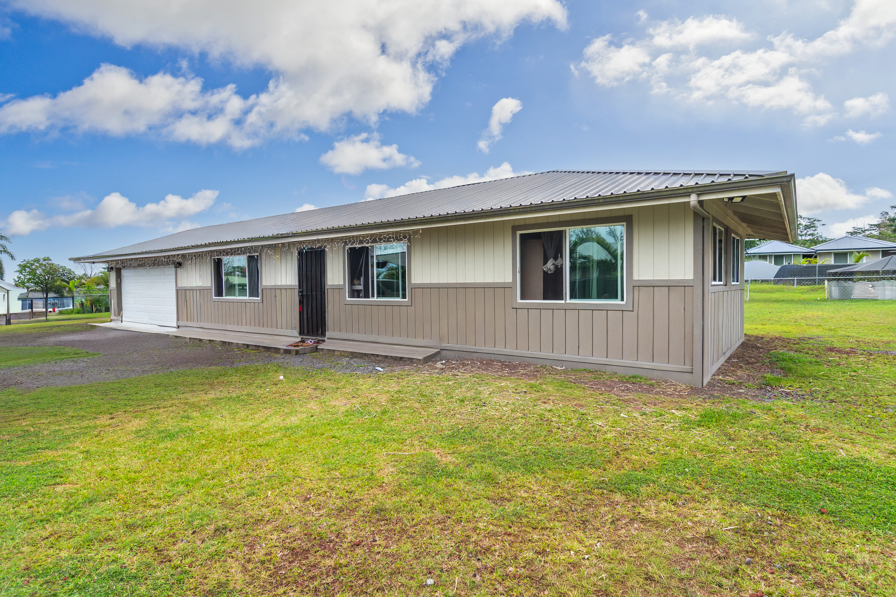 Welcome to this well-maintained 3-bedroom, 2-bath home located on Rainbow Drive in Ainaloa Estates, offering comfort, efficiency, and value at an attractive price of $360,000. This property is equipped with 19 solar panels and a Tesla Powerwall battery through a Sunrun lease at $190 per month, helping to significantly reduce energy costs while providing added peace of mind. The home features a fully fenced yard, a paved driveway, and a spacious grassy area–perfect for outdoor living, pets, or entertaining. Inside, you’ll find a clean and modern interior with quartz countertops, durable vinyl flooring, and beautifully tiled showers. The layout is functional and inviting, ideal for both everyday living and hosting guests. Whether you're a first-time homebuyer, investor, or looking for a move-in-ready property on the Big Island, this home offers a great combination of upgrades, sustainability, and affordability in a growing community.