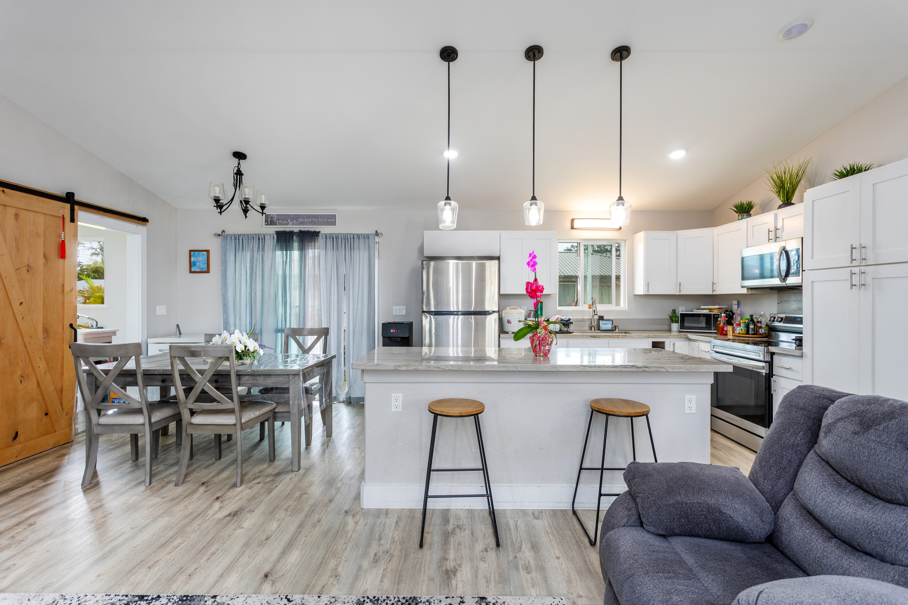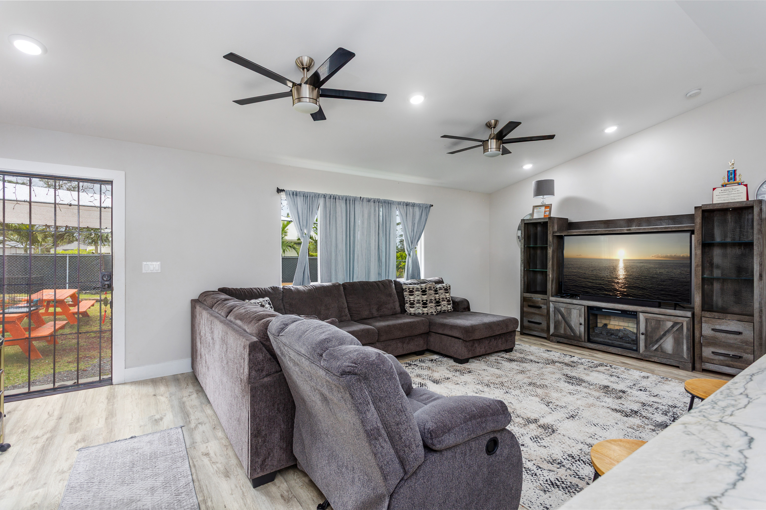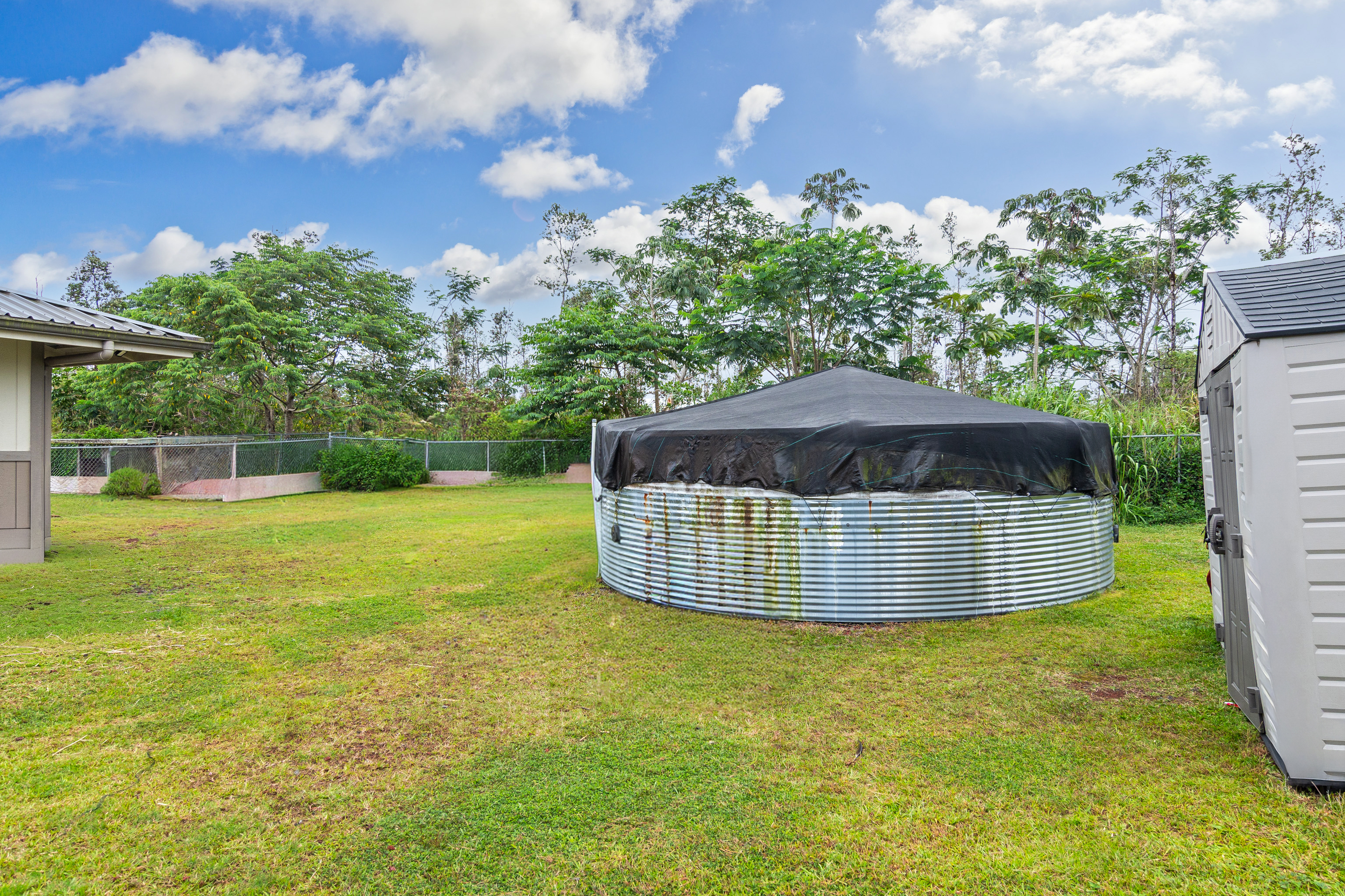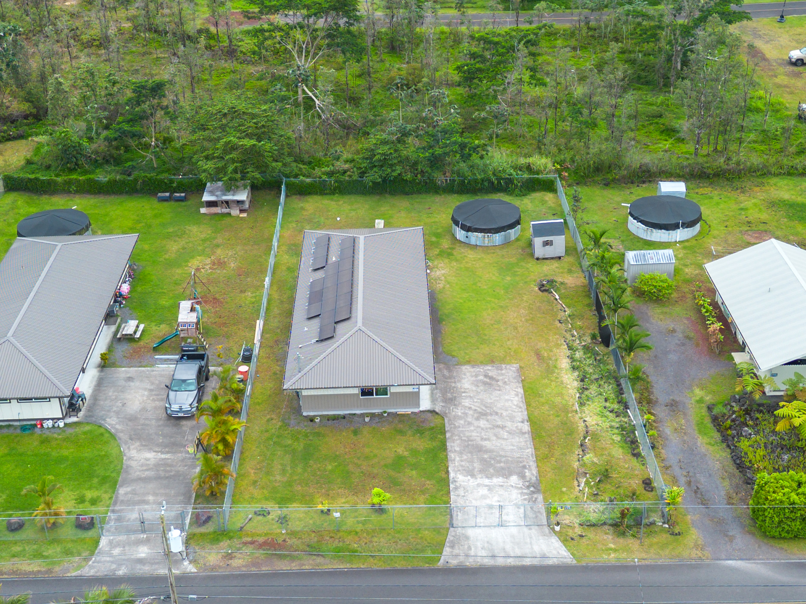 Welcome to this well-maintained 3-bedroom, 2-bath home located on Rainbow Drive in Ainaloa Estates, offering comfort, efficiency, and value at an attractive price of $360,000. This property is equipped with 19 solar panels and a Tesla Powerwall battery through a Sunrun lease at $190 per month, helping to significantly reduce energy costs while providing added peace of mind. The home features a fully fenced yard, a paved driveway, and a spacious grassy area–perfect for outdoor living, pets, or entertaining. Inside, you’ll find a clean and modern interior with quartz countertops, durable vinyl flooring, and beautifully tiled showers. The layout is functional and inviting, ideal for both everyday living and hosting guests. Whether you're a first-time homebuyer, investor, or looking for a move-in-ready property on the Big Island, this home offers a great combination of upgrades, sustainability, and affordability in a growing community.