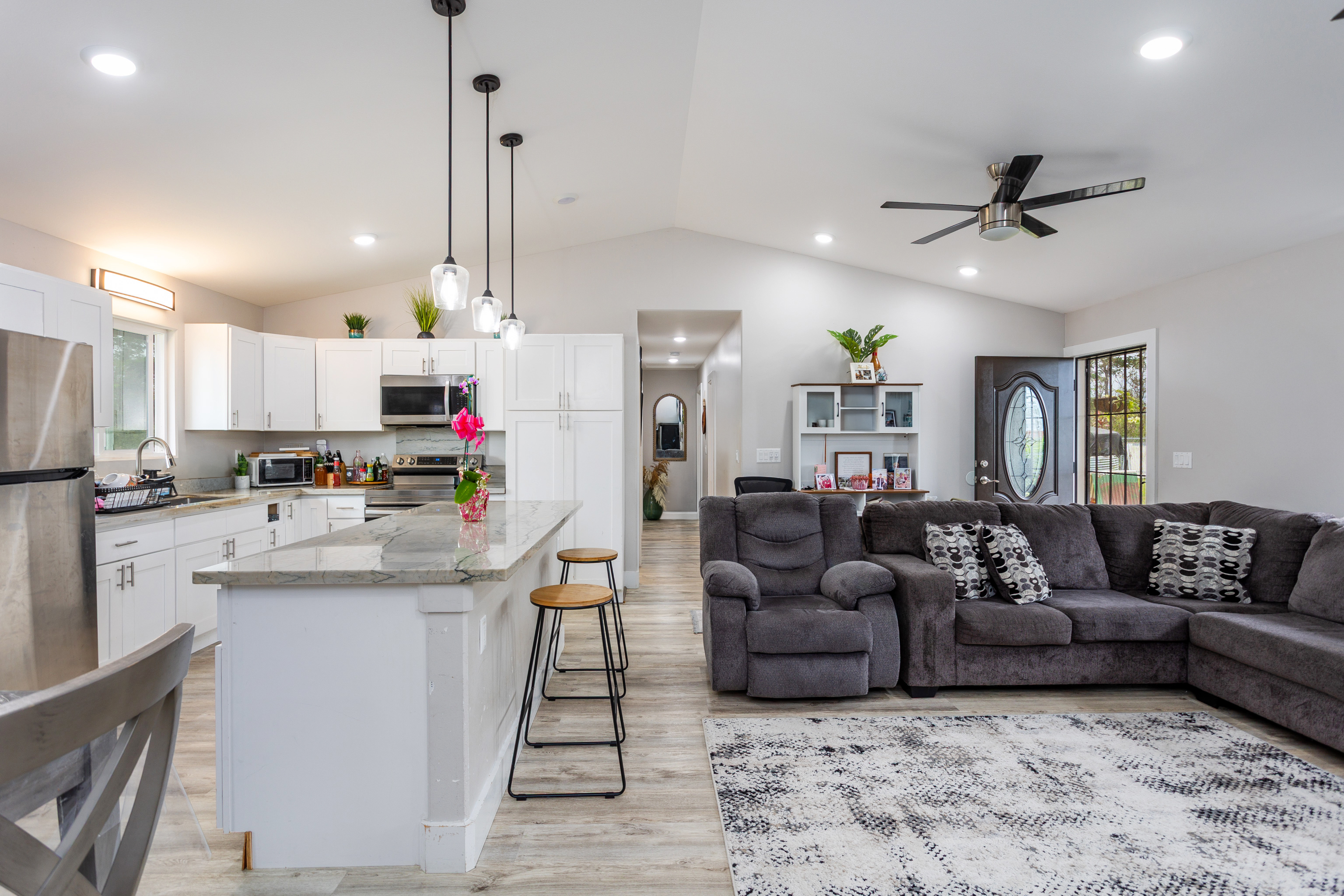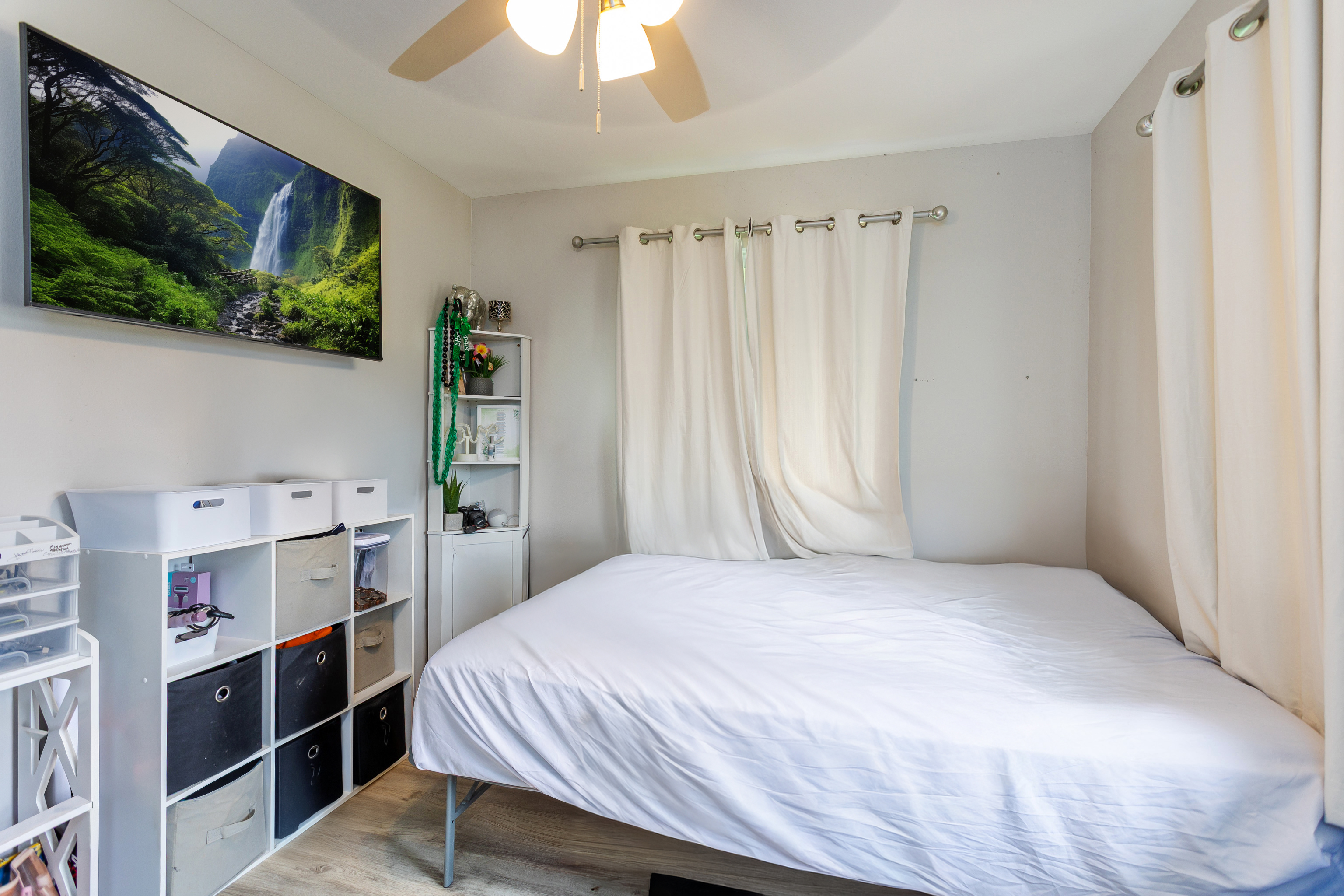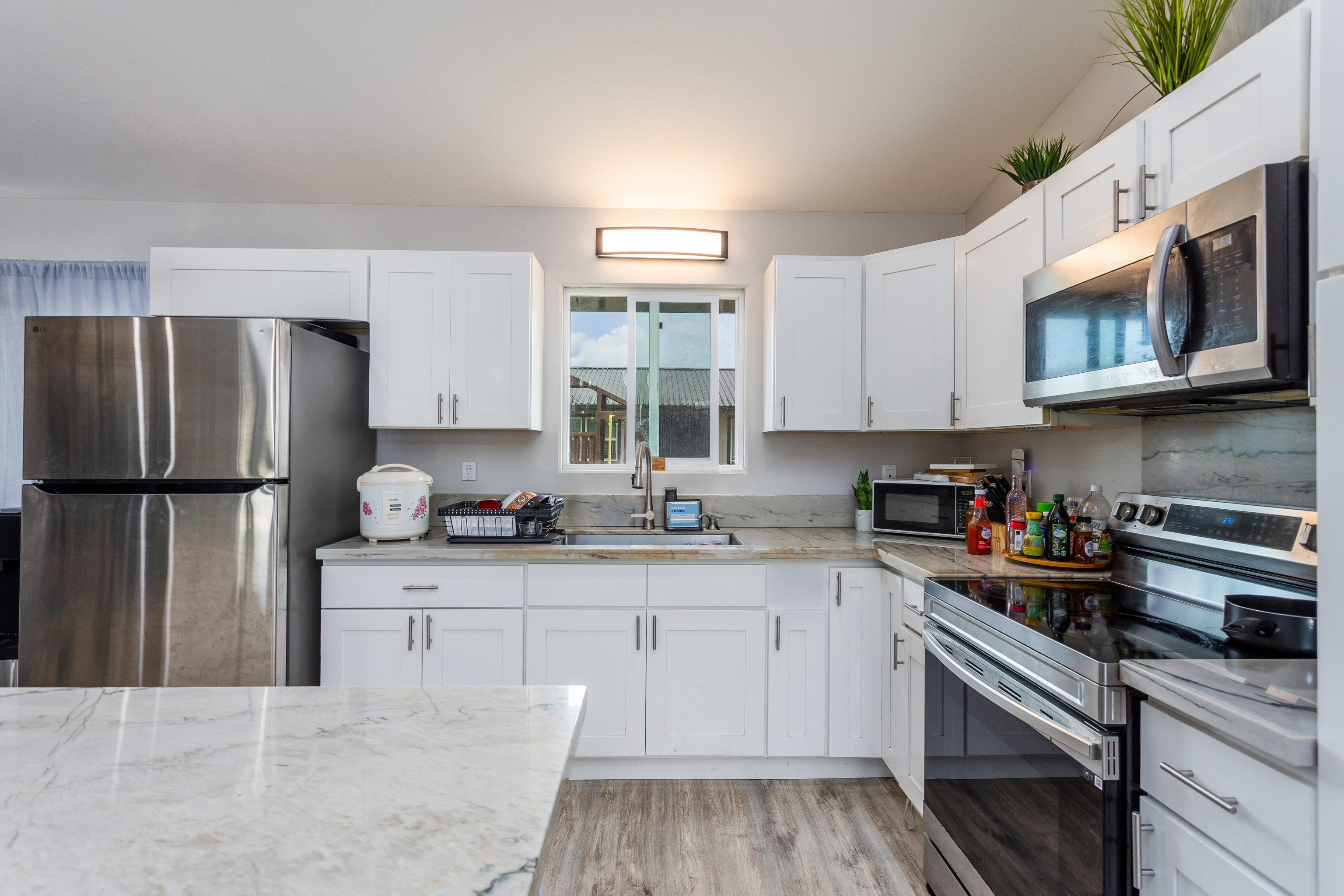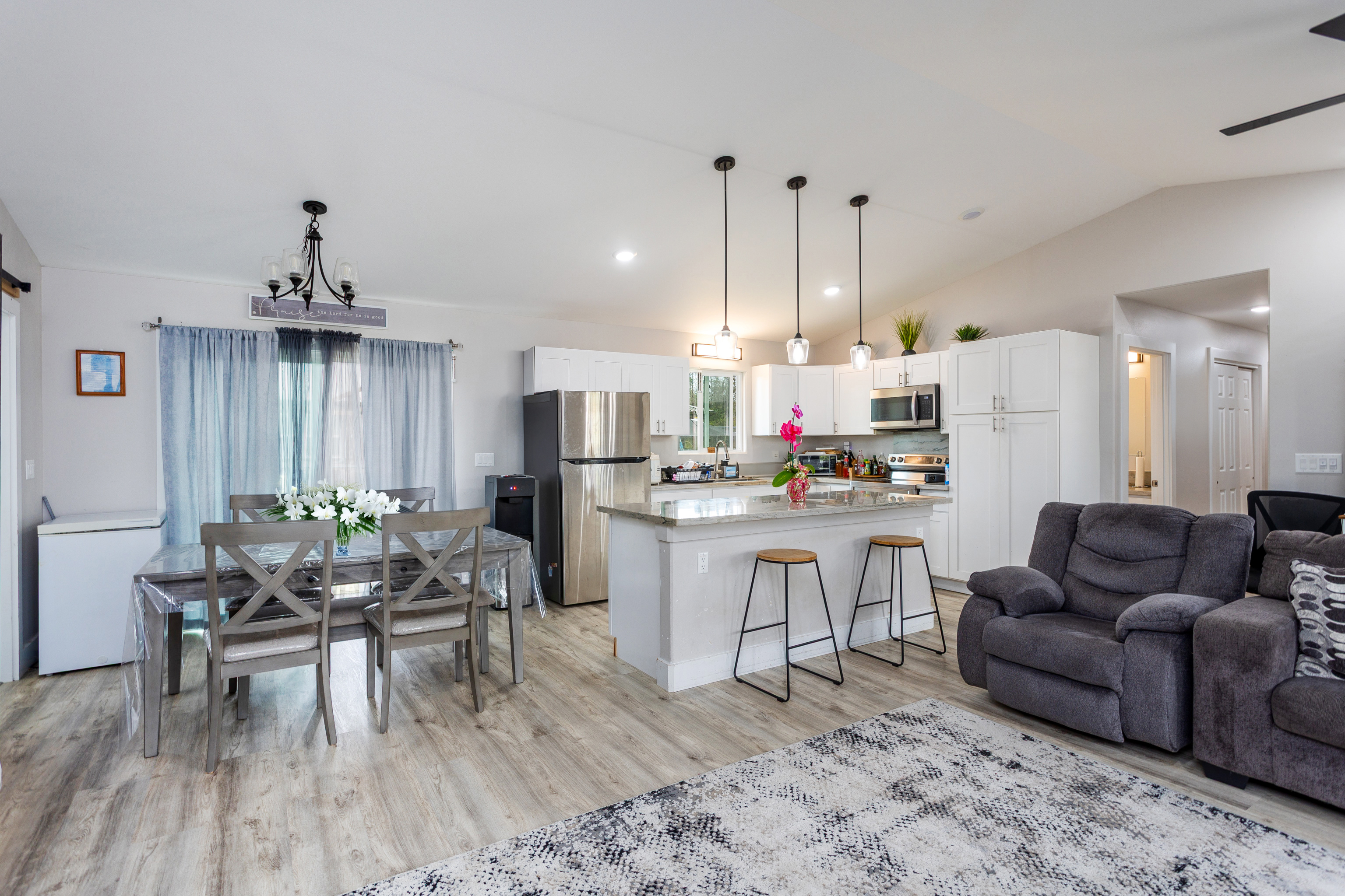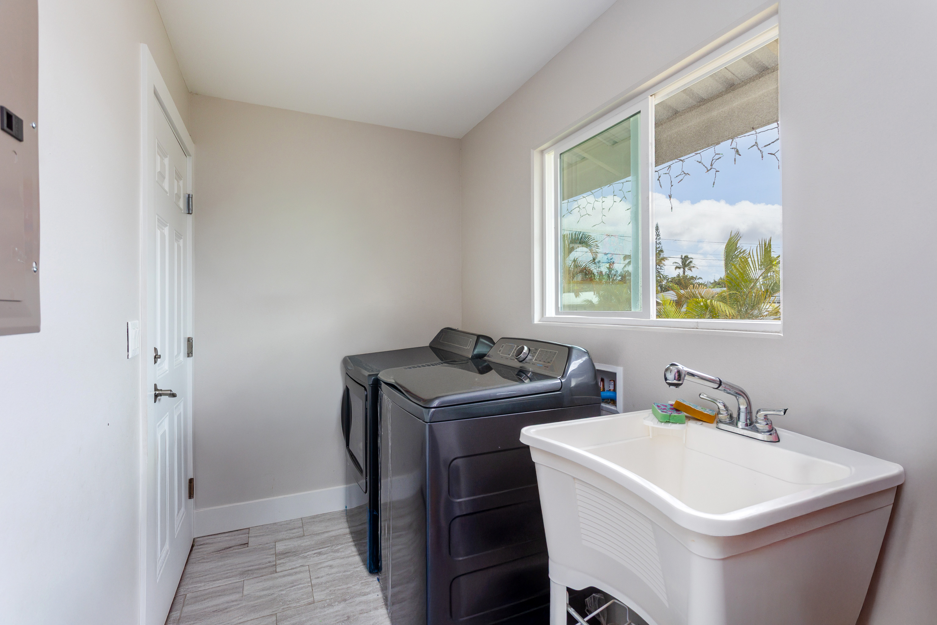 Welcome to this well-maintained 3-bedroom, 2-bath home located on Rainbow Drive in Ainaloa Estates, offering comfort, efficiency, and value at an attractive price of $360,000. This property is equipped with 19 solar panels and a Tesla Powerwall battery through a Sunrun lease at $190 per month, helping to significantly reduce energy costs while providing added peace of mind. The home features a fully fenced yard, a paved driveway, and a spacious grassy area–perfect for outdoor living, pets, or entertaining. Inside, you’ll find a clean and modern interior with quartz countertops, durable vinyl flooring, and beautifully tiled showers. The layout is functional and inviting, ideal for both everyday living and hosting guests. Whether you're a first-time homebuyer, investor, or looking for a move-in-ready property on the Big Island, this home offers a great combination of upgrades, sustainability, and affordability in a growing community.