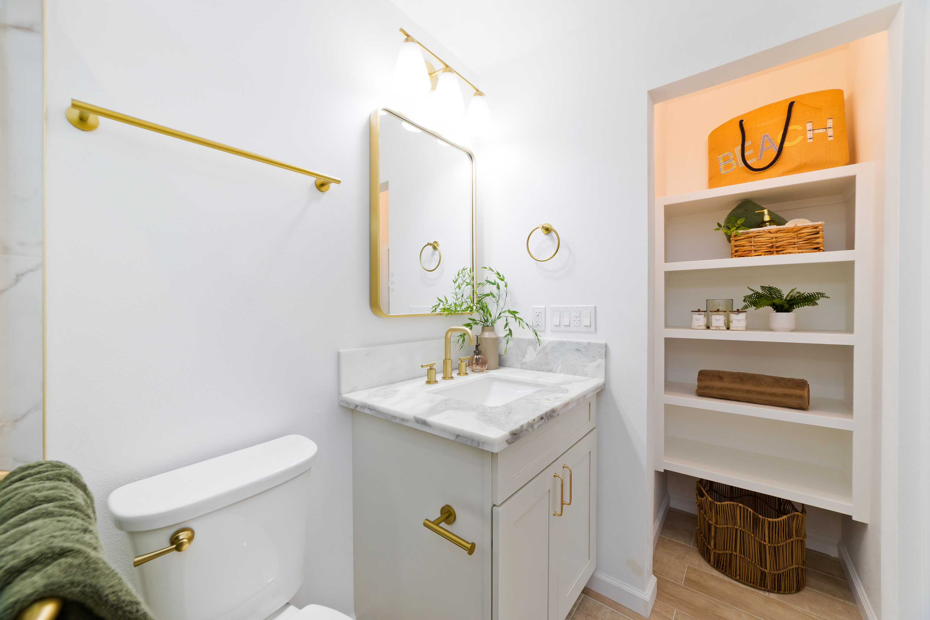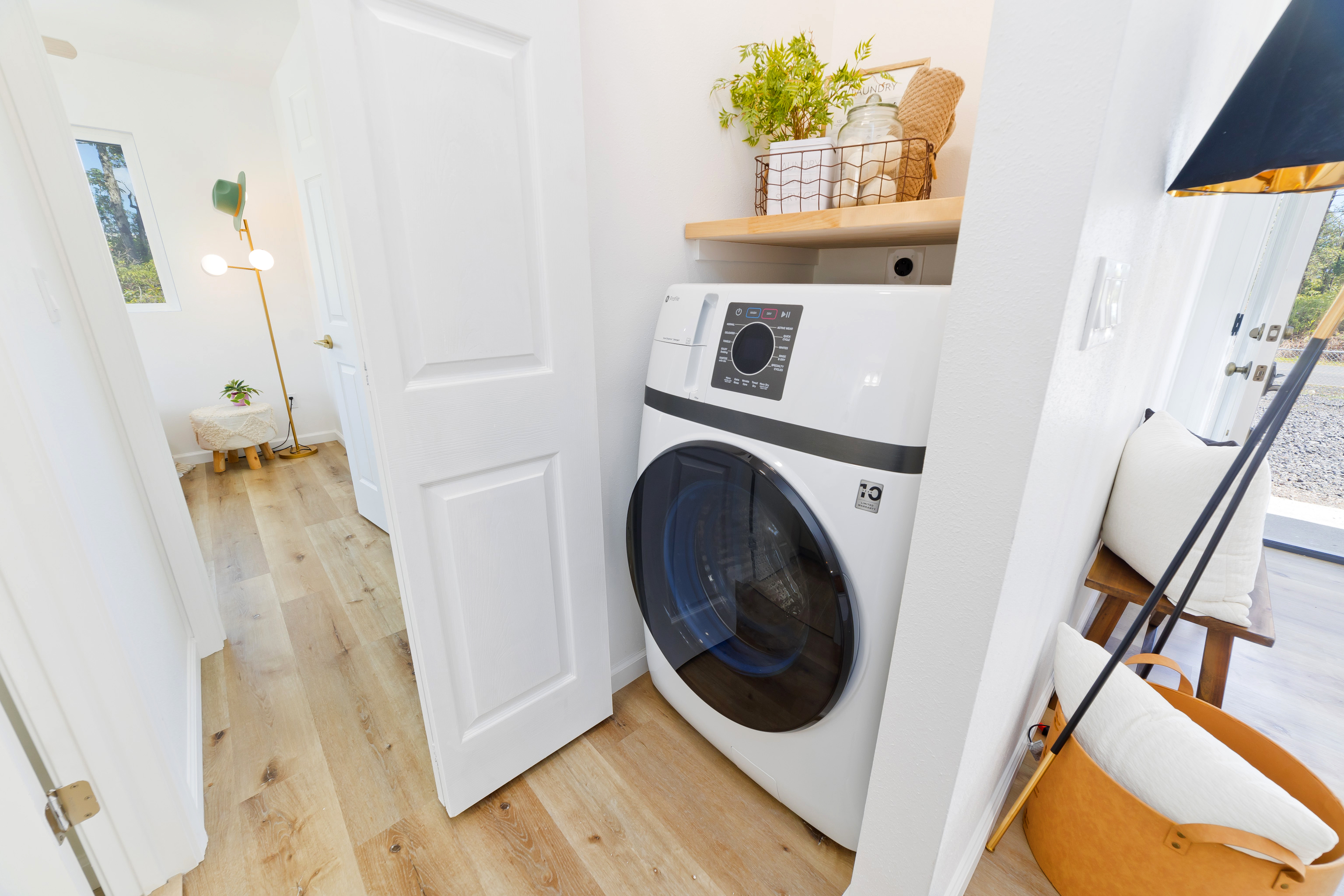 The primary suite offers a private retreat with its own full bathroom, complete with a walk-in shower. Two additional bedrooms provide flexible options for guests, additional family members, or a home office, and are conveniently located near the second shared bathroom. For added convenience, the home is equipped with an all-in-one washer and dryer unit, making laundry simple and efficient.