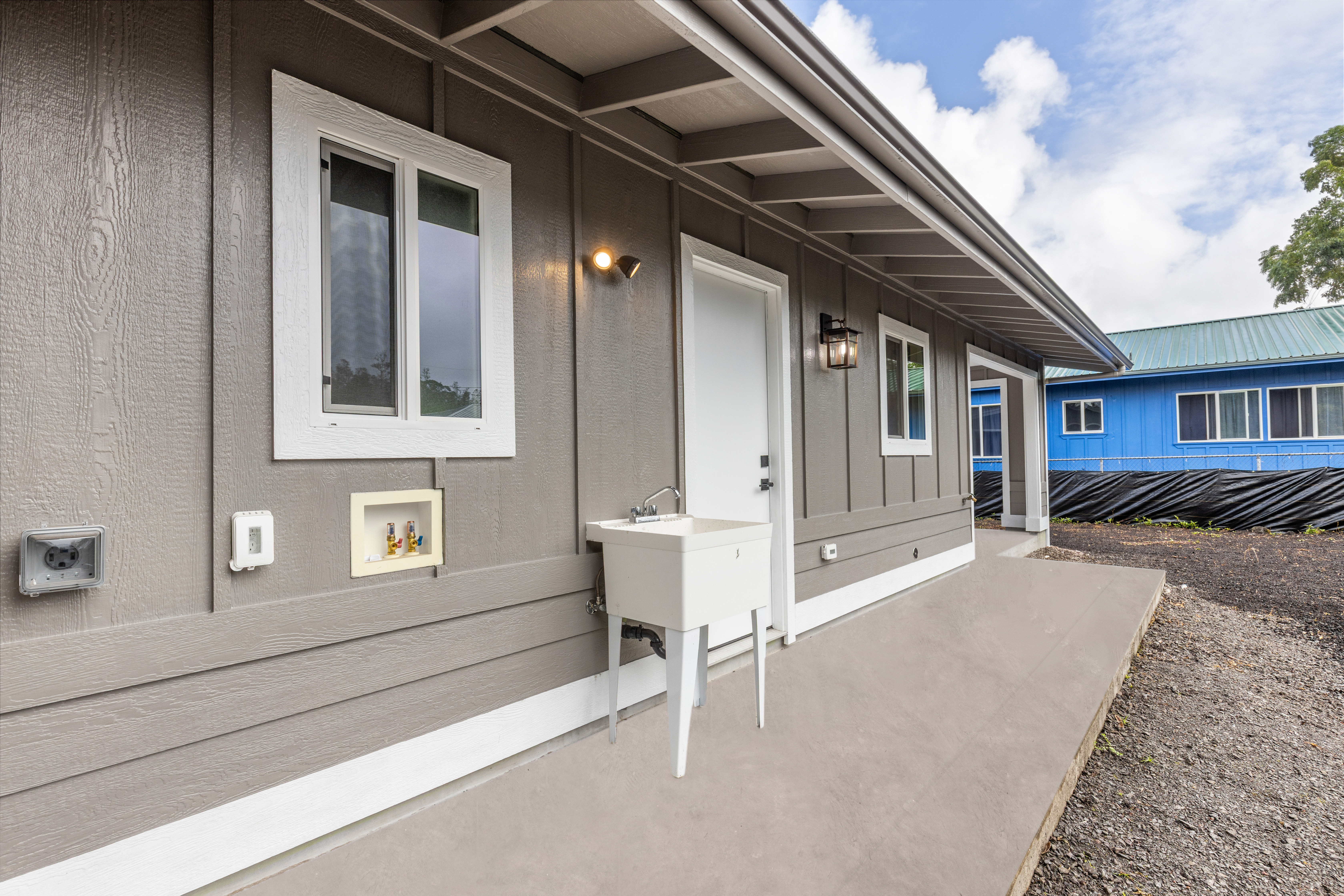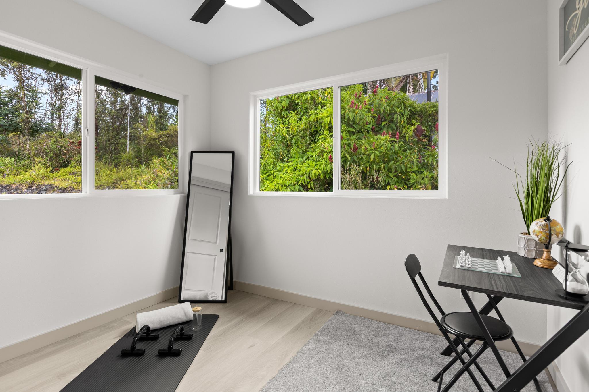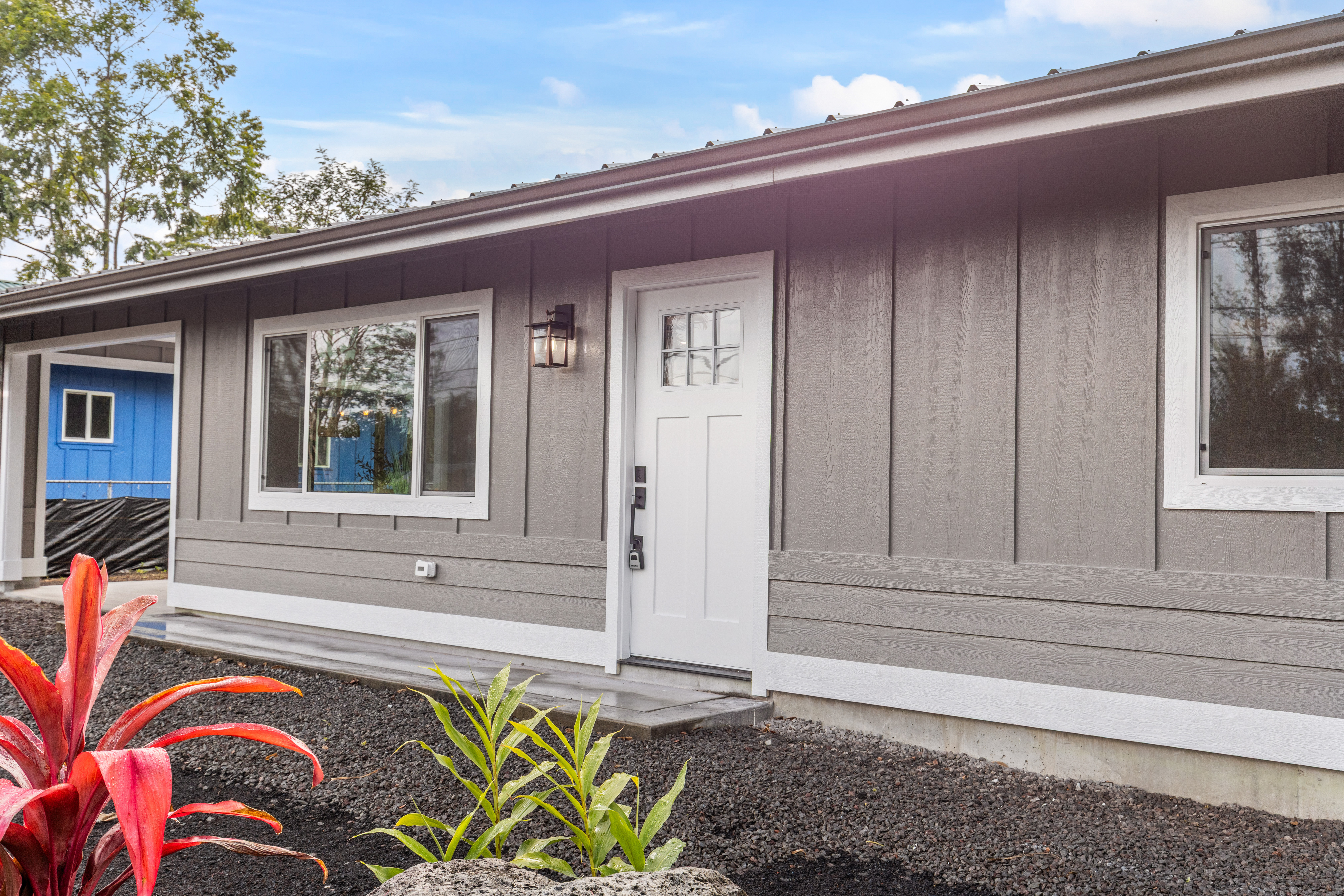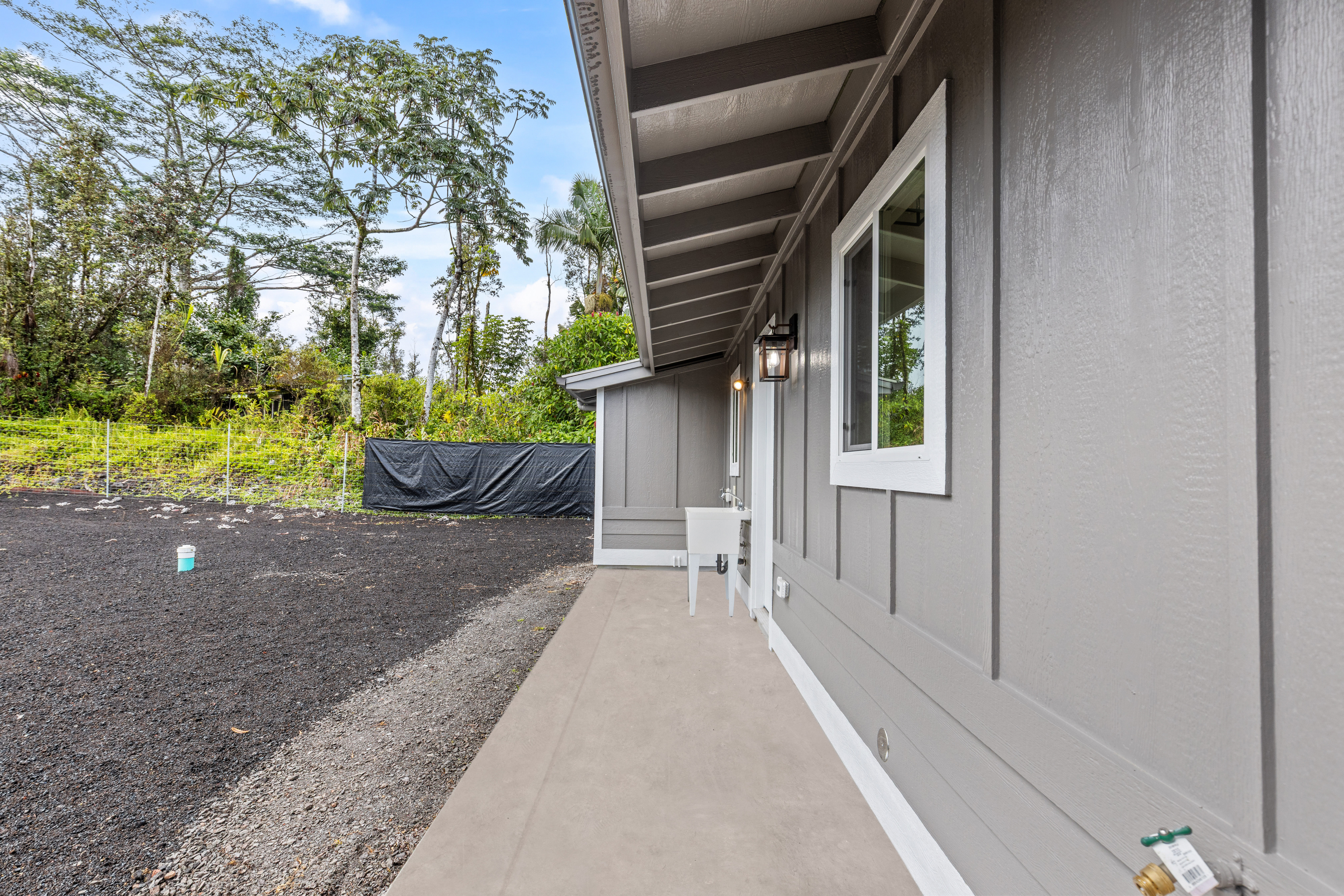 Don't miss this beautifully built 2-bedroom, 1-bath home, perfect as a starter or investment property–offered at an affordable price point in one of Puna's growing communities. Inside, you'll find quality finishes throughout, including luxury vinyl flooring, a fully tiled bathroom, and custom built-in closets for smart storage. The living area and hallway feature elegant natural wood tone paneling, adding warmth and island charm to the space. The kitchen is equipped with modern conveniences, and the home includes a refillable pure water dispenser that offers both ice-cold and hot water on demand–an added bonus for daily comfort. Step outside to enjoy a beautifully landscaped yard featuring tropical palms and native Hawaiian plants that create a serene, welcoming outdoor retreat. A brand-new 6-foot fence has just been installed along the right side and enhanced with privacy mesh for added seclusion and comfort. The home has also been refreshed with a new coat of exterior paint, boosting its curb appeal and making a great first impression from the moment you arrive. To top it off, this home comes with a 1-year contractor warranty, giving you peace of mind as you settle into your new home.