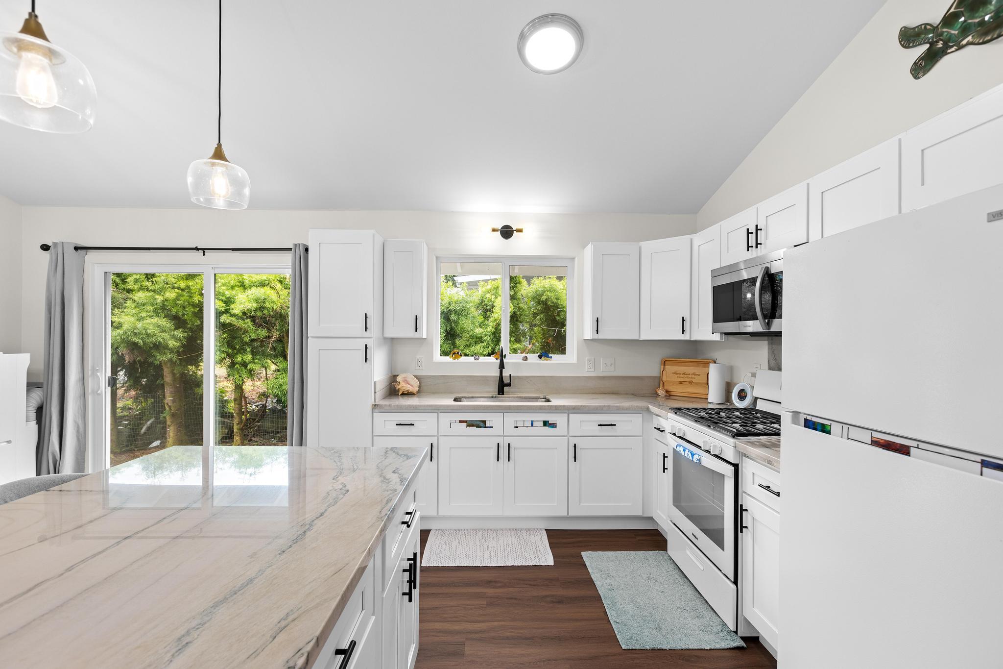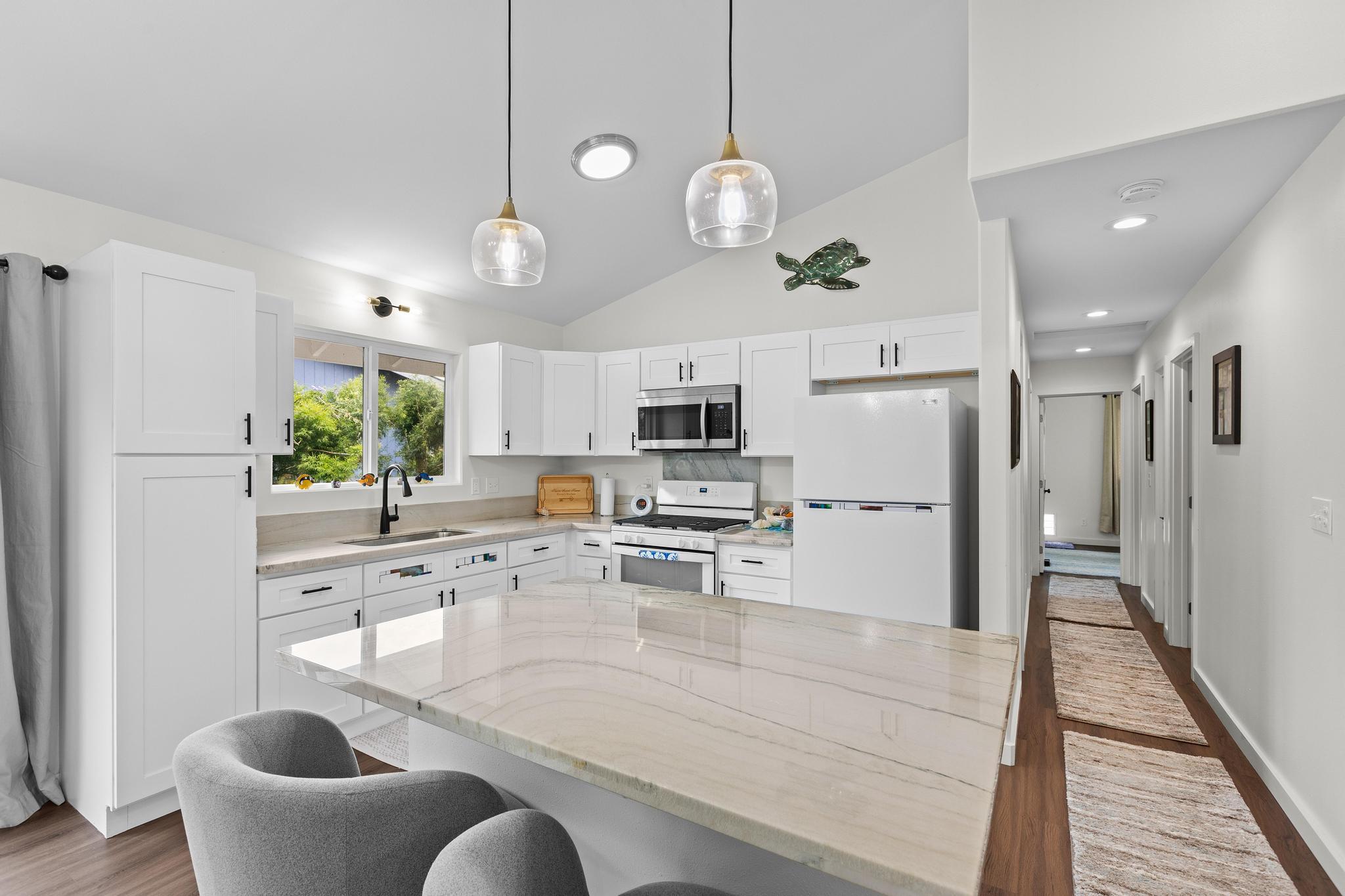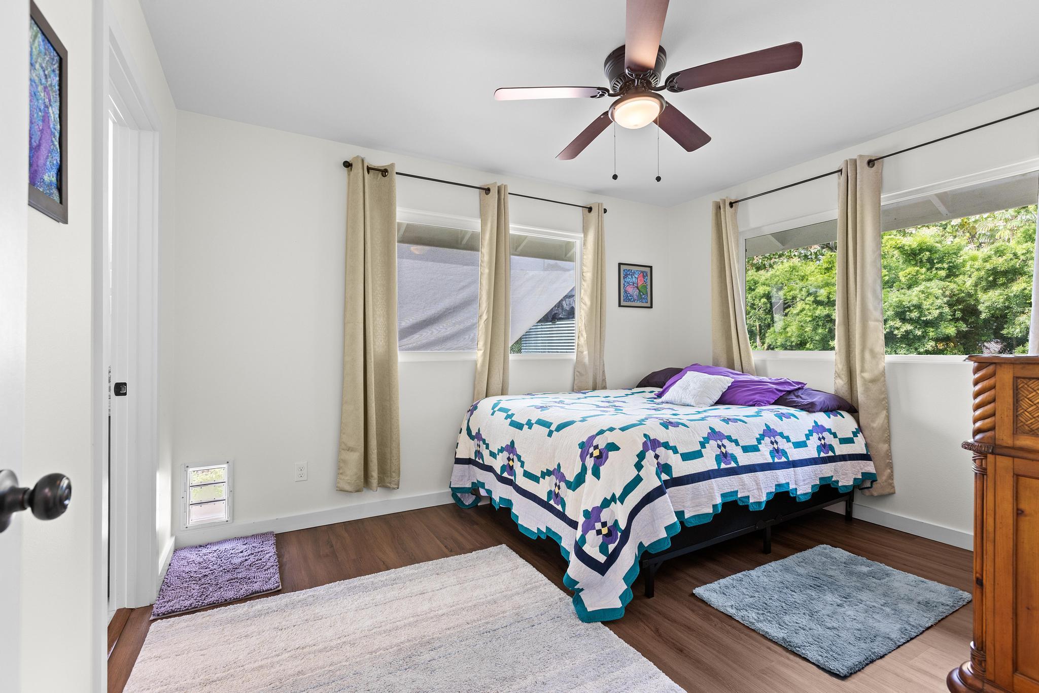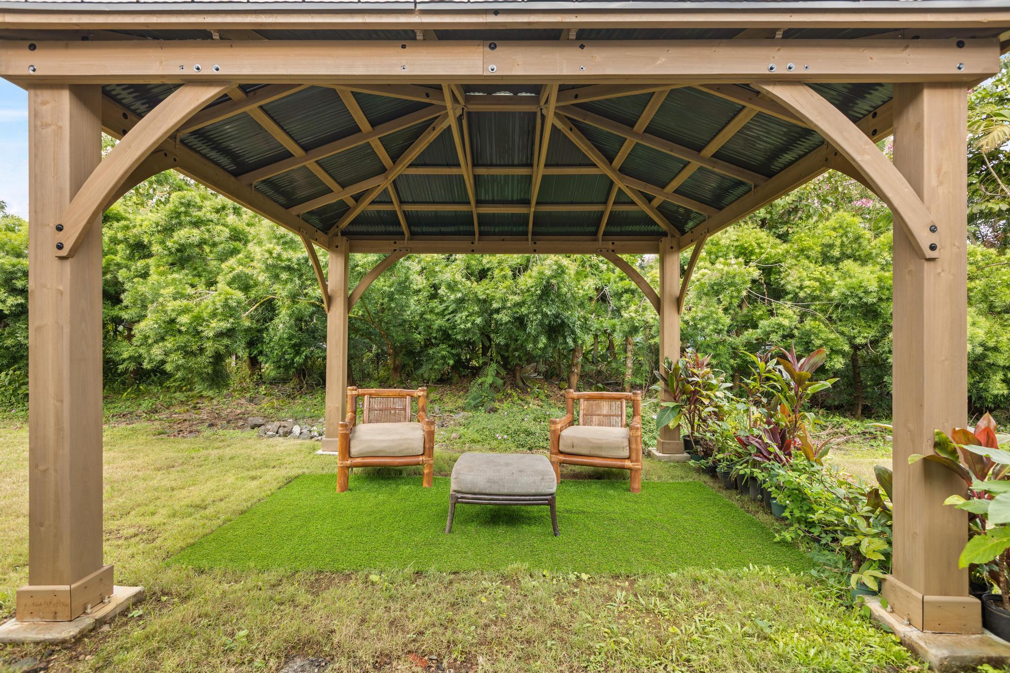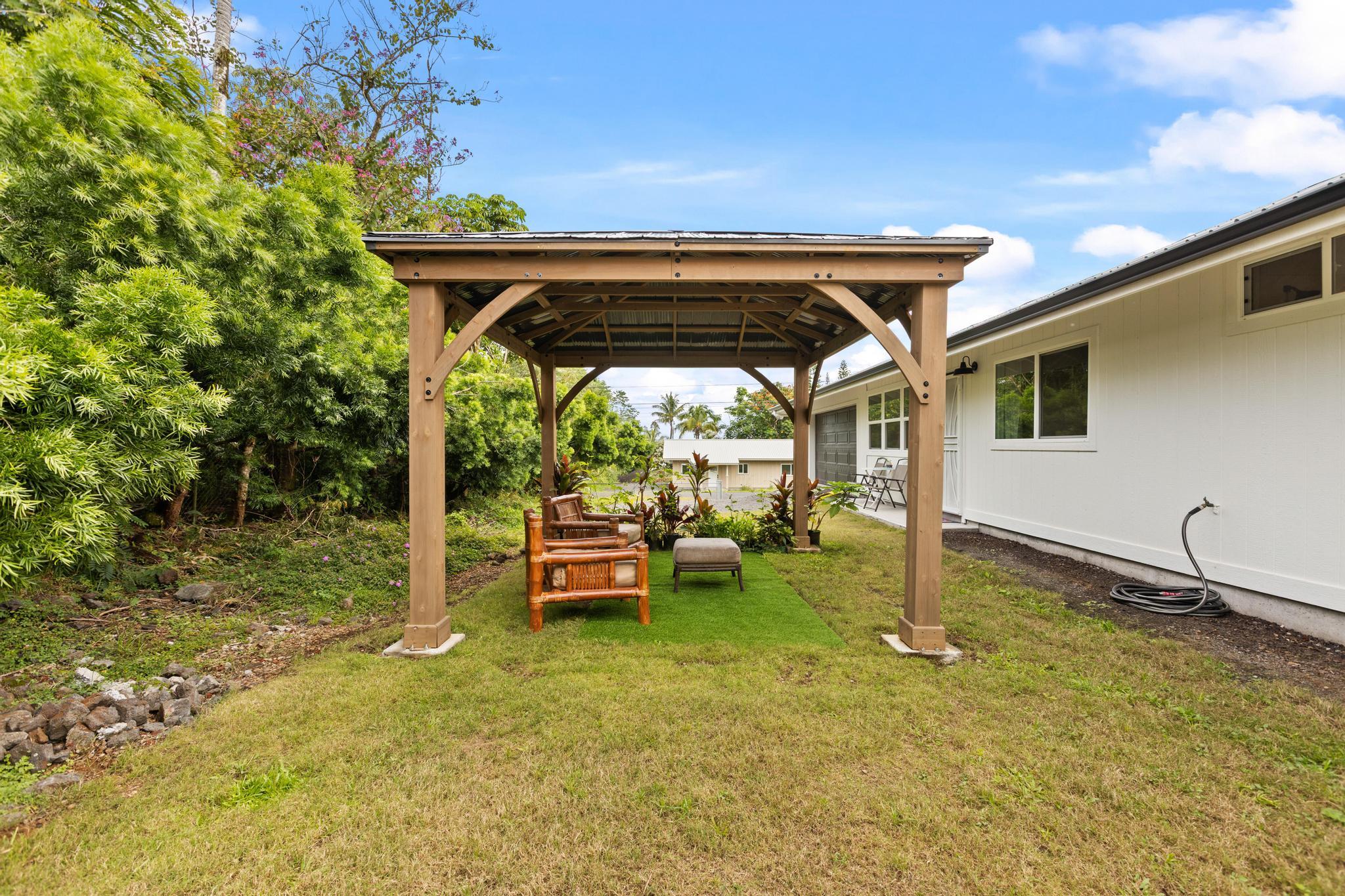 Aloha and Welcome to this Wonderful newer home in Ainaloa. What's better then a brand new home? This home is because it features custom touches, it has been meticulously cared for, and has been lovingly improved by the homeowner. With a gazebo outside and an animal door in the bedroom; all residents can benefit from outdoor living. The open kitchen gets great light from the bank of living room windows. Home feels spacious with Vaulted ceilings in the great room. The ensuite bedroom has a gracious bathroom with a double vanity and a huge walk in shower. There is lots of storage in the walk in closet, and larger then expected closets in the other two bedrooms. Perched above the paved road on Lilikoi Dr. there are peek a boo views of the ocean on clear days, and close proximity to the Ainaloa Longhouse and park. Fenced and gated with an enclosed garage, allows for convenience and security. Podocarpus hedges on both sides of the property help maintain privacy. Come and see how comfortable living can be in Ainaloa!