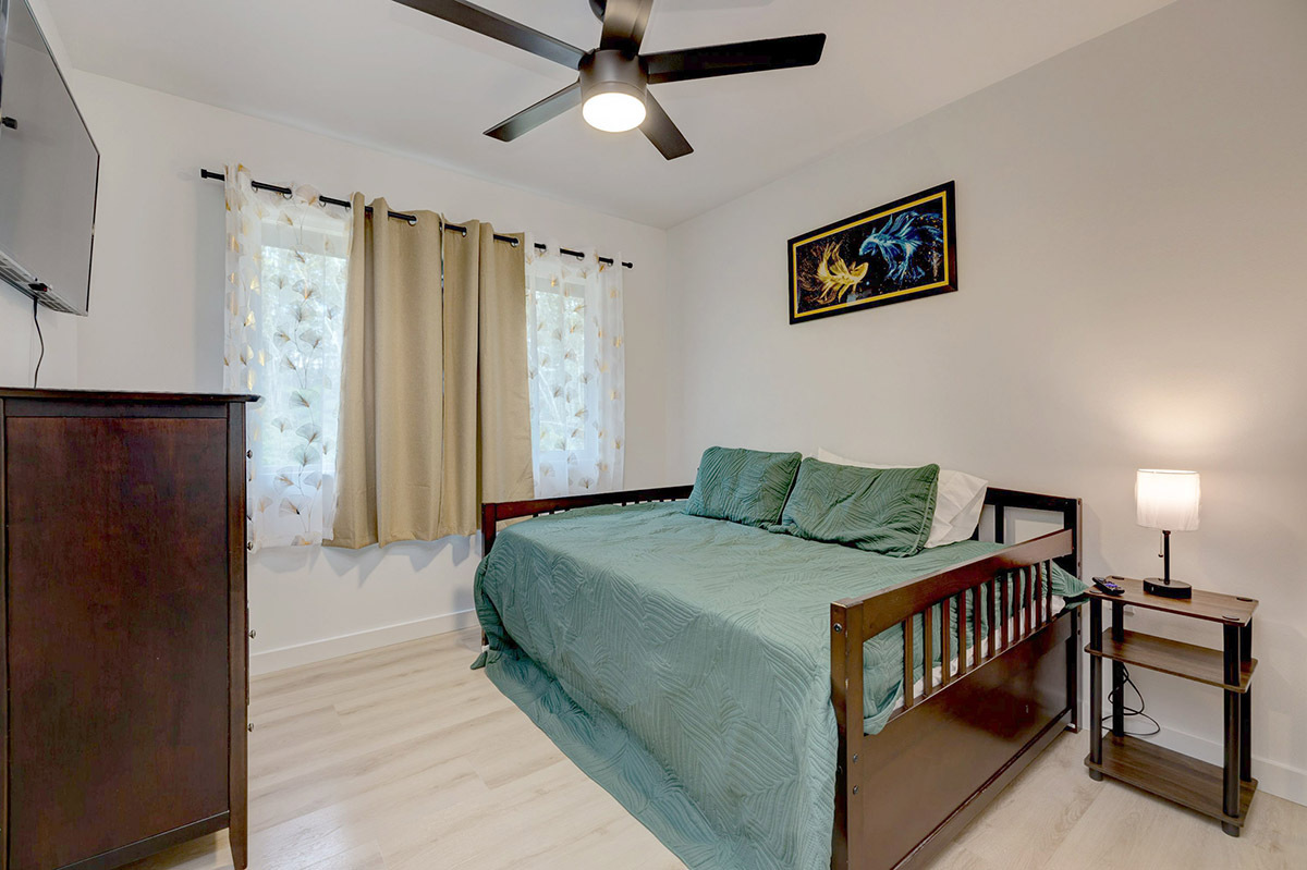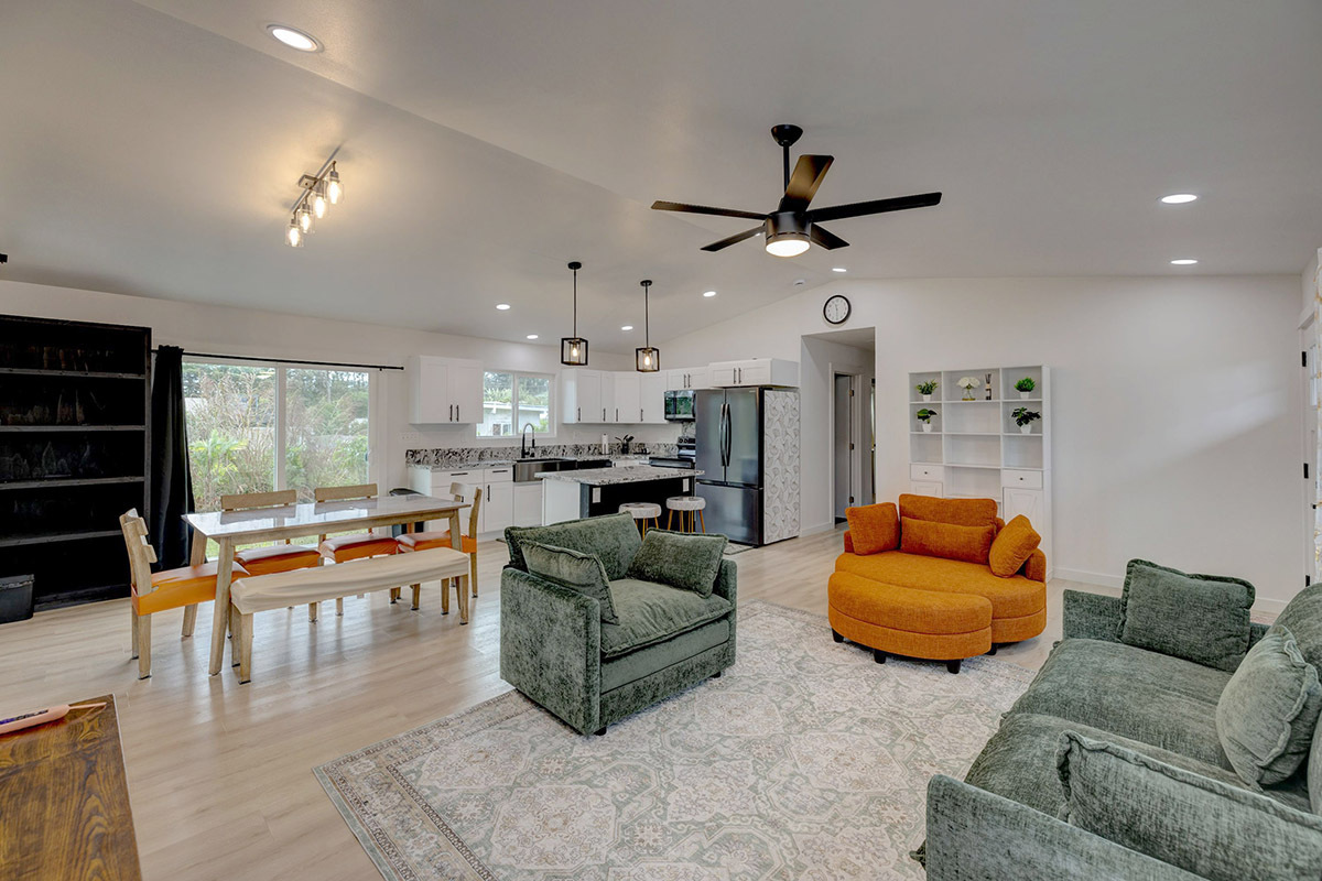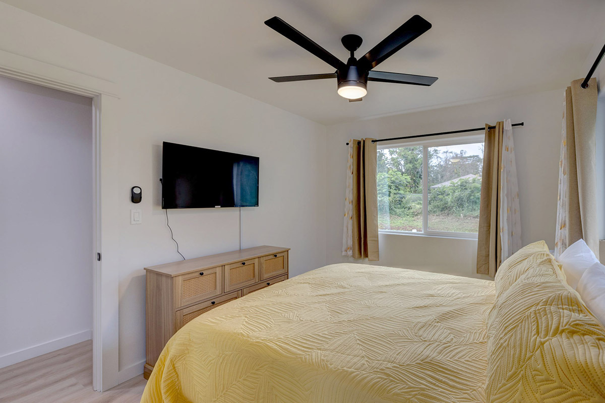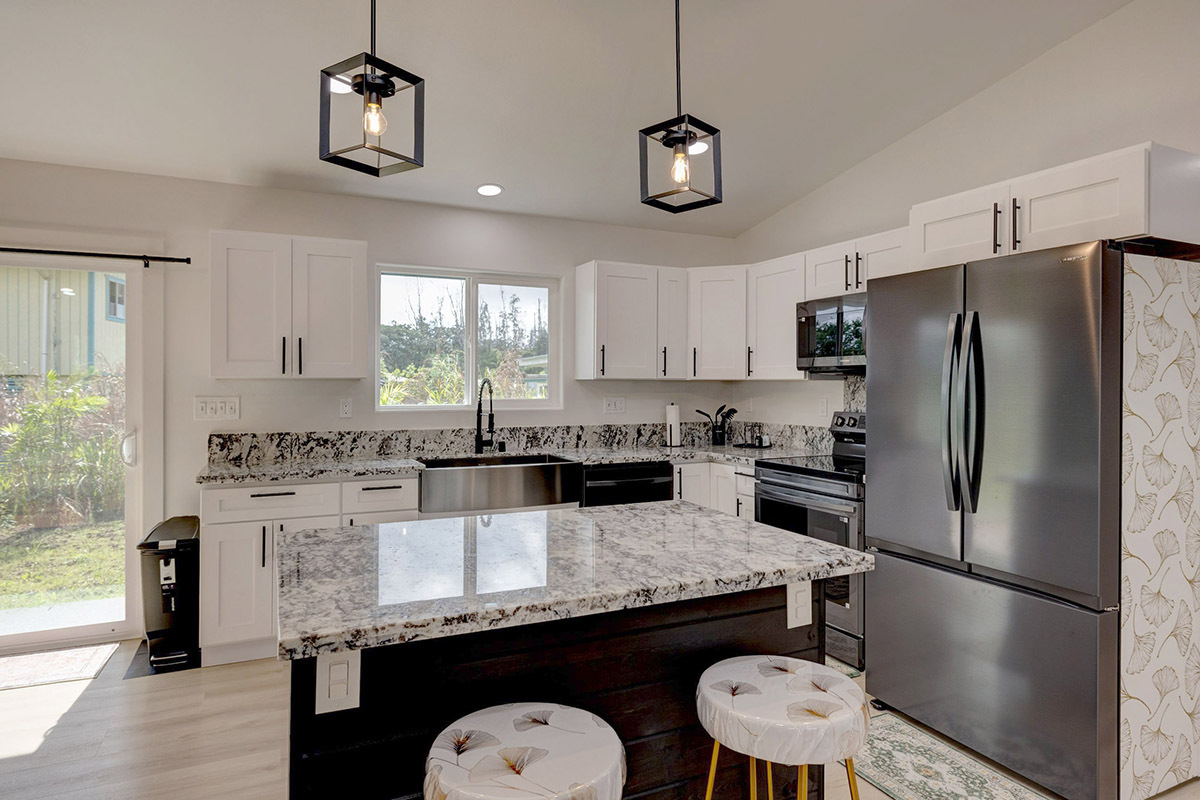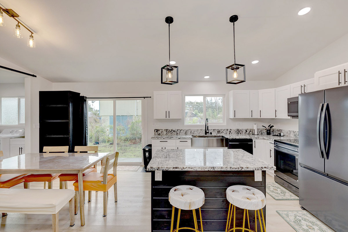 Welcome to this fairly new, built in 2025 and never lived in, furnished 3 bedroom, 2 bathroom home in Ainaloa. It offers modern comfort and true move-in-ready. The open concept living and kitchen area provides a bright, inviting space ideal for everyday living and entertaining. The primary suite features a walk-in shower, creating a private retreat, while two additional bedrooms share a full bathroom, perfect for guests, family, or a home office setup. An indoor laundry room includes a brand new washer and dryer for added ease. Sold fully furnished, this home is a turnkey opportunity for first-time homebuyers or investors alike. Located on a paved street in the desirable Ainaloa subdivision, the property is approximately 10 minutes from grocery stores, schools, and other everyday amenities, offering both comfort and convenience in a growing area!