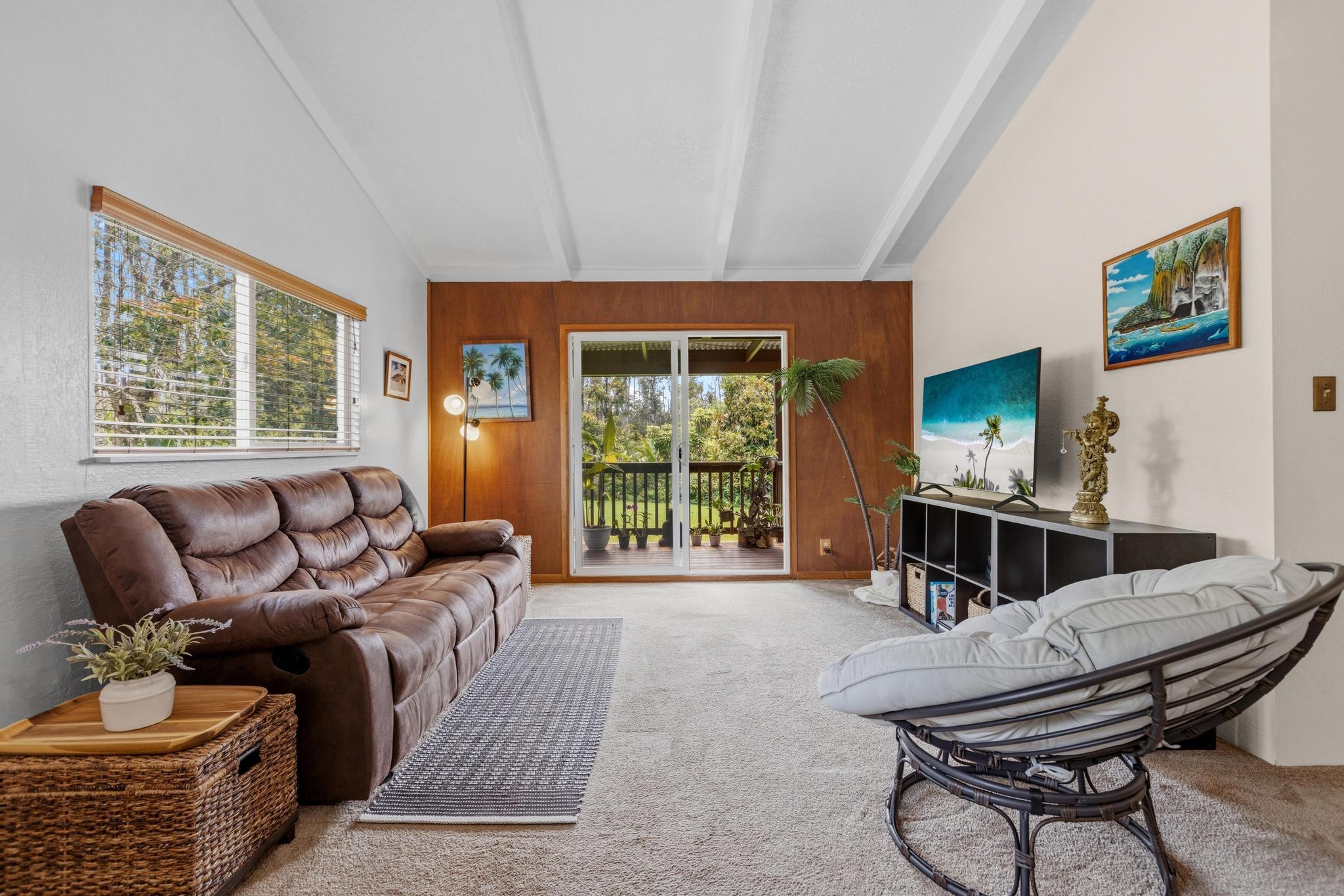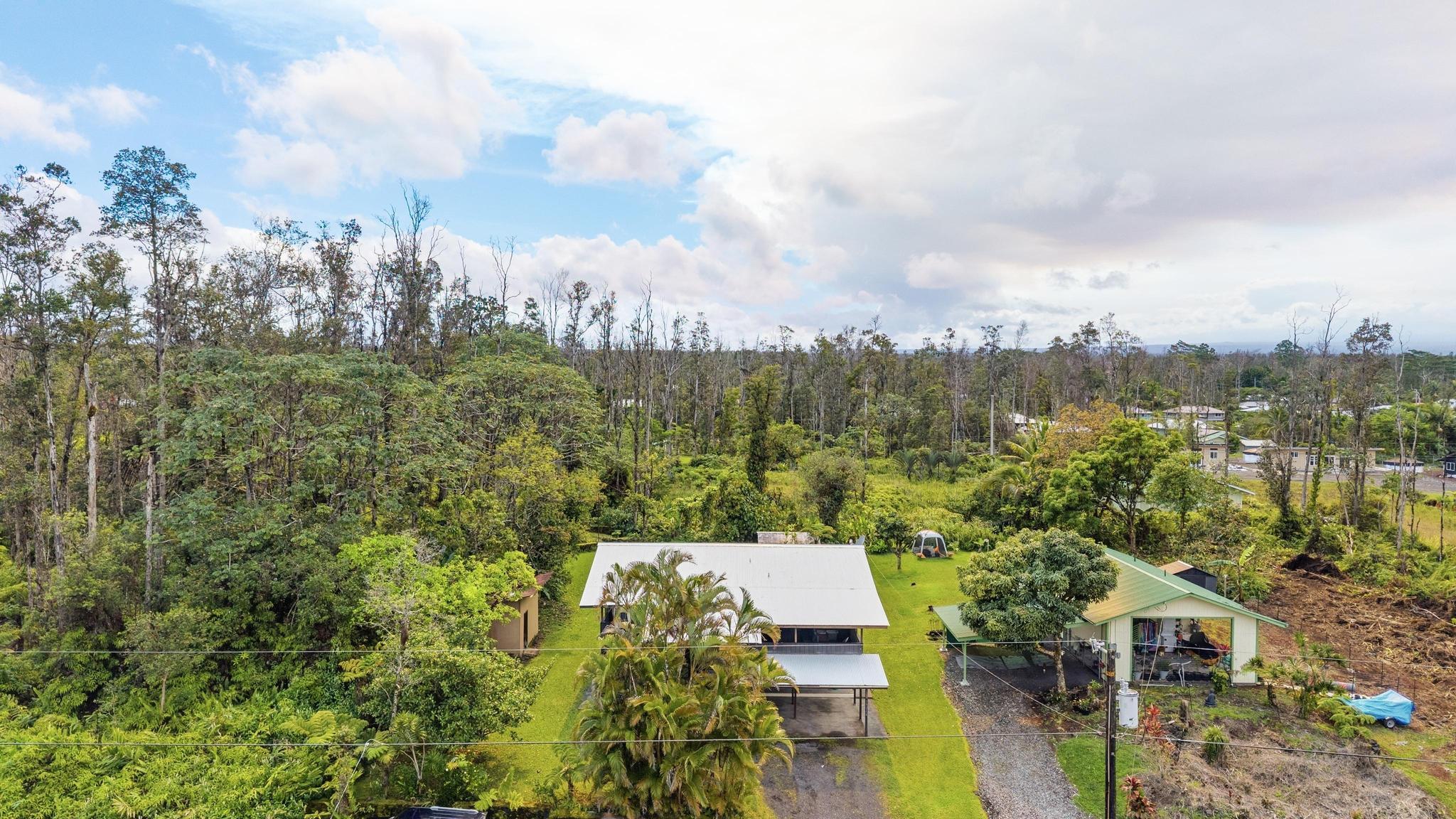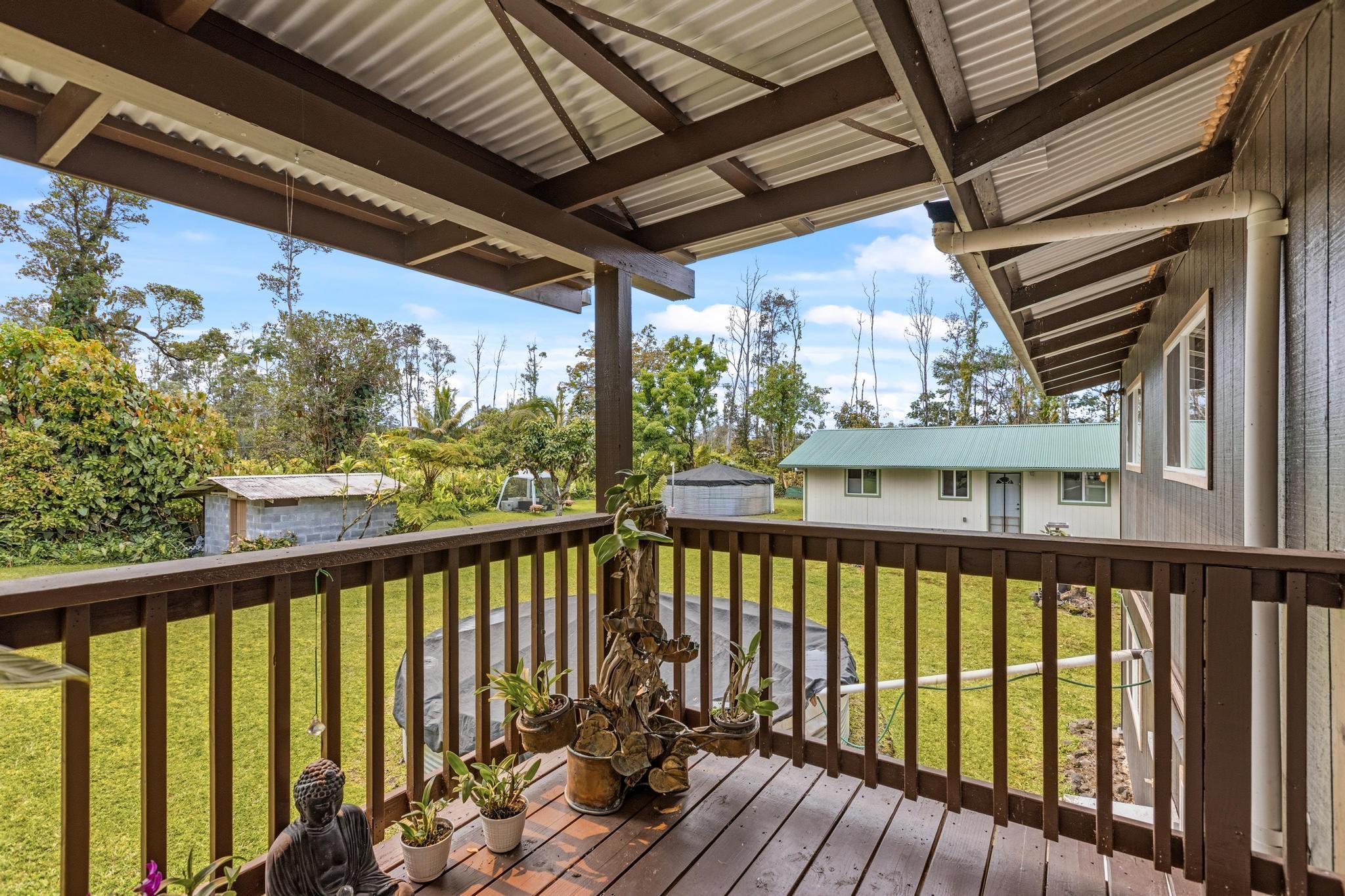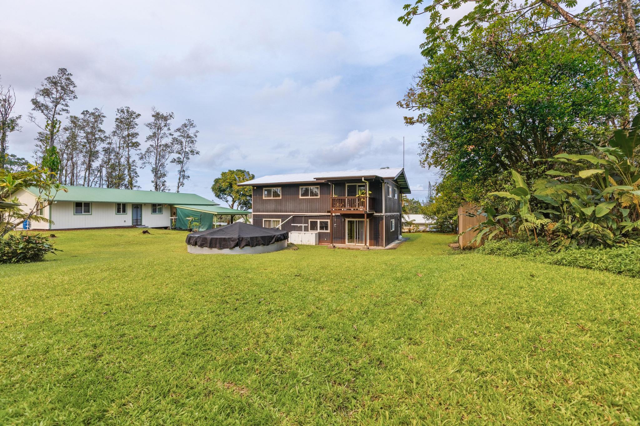 Great opportunity to own a well-proportioned two-level home in the Ainaloa community, offering flexibility, space, and a truly special island ambiance. The upper level features three bedrooms, one full bath, and an open kitchen, dining, and living area with vaulted ceilings that create a bright and inviting atmosphere. A covered lanai extends the living space, providing a peaceful place to relax and take in distant ocean views and cooling breezes. The lower level offers additional living space with a bathroom and multiple rooms, ideal for extended family, guests, or flexible use such as a home office, creative studio, or hobby area. What truly sets this property apart is the mature, thoughtfully cultivated yard–designed to be experienced as much as admired. Enjoy the fragrant blossoms of the puakenikeni tree, the beauty of anthuriums and gardenias, and the lush backdrop of hapu?u ferns that create a natural haven for orchids. Seasonal yellow ginger fills the air with a sweet summer scent, while birdsong from visiting finches and cardinals adds to the tranquil setting. The property also features productive calamansi and avocado trees, a charming rock wall accent, and a storage shed for added convenience. Whether relaxing on the front lanai on a warm day or enjoying the backyard from the rear lanai, the outdoor spaces invite you to slow down and enjoy the surroundings. Located just minutes from the popular Maku?u Farmers Market, where you’ll find fresh local produce, tropical fruits, plants, and unique artisan goods, this home offers not just a place to live–but a lifestyle to enjoy. With its flexible layout, income potential, and inviting atmosphere, this property is ready to capture interest and welcome its next owner.