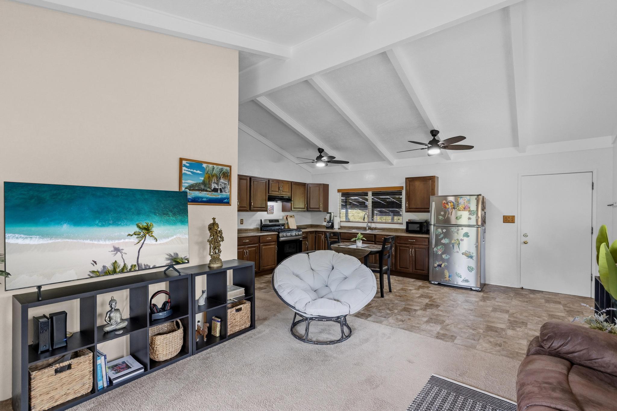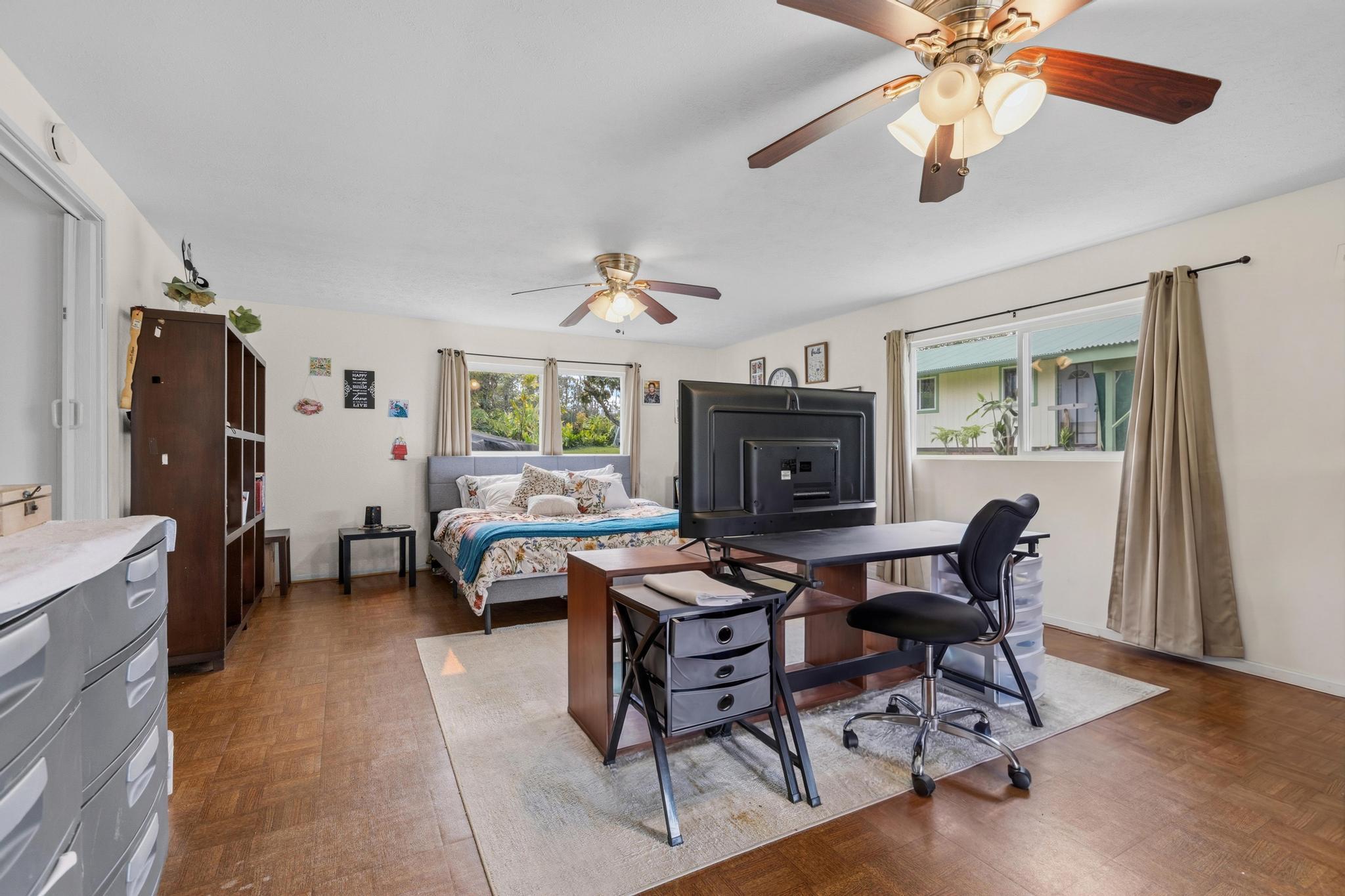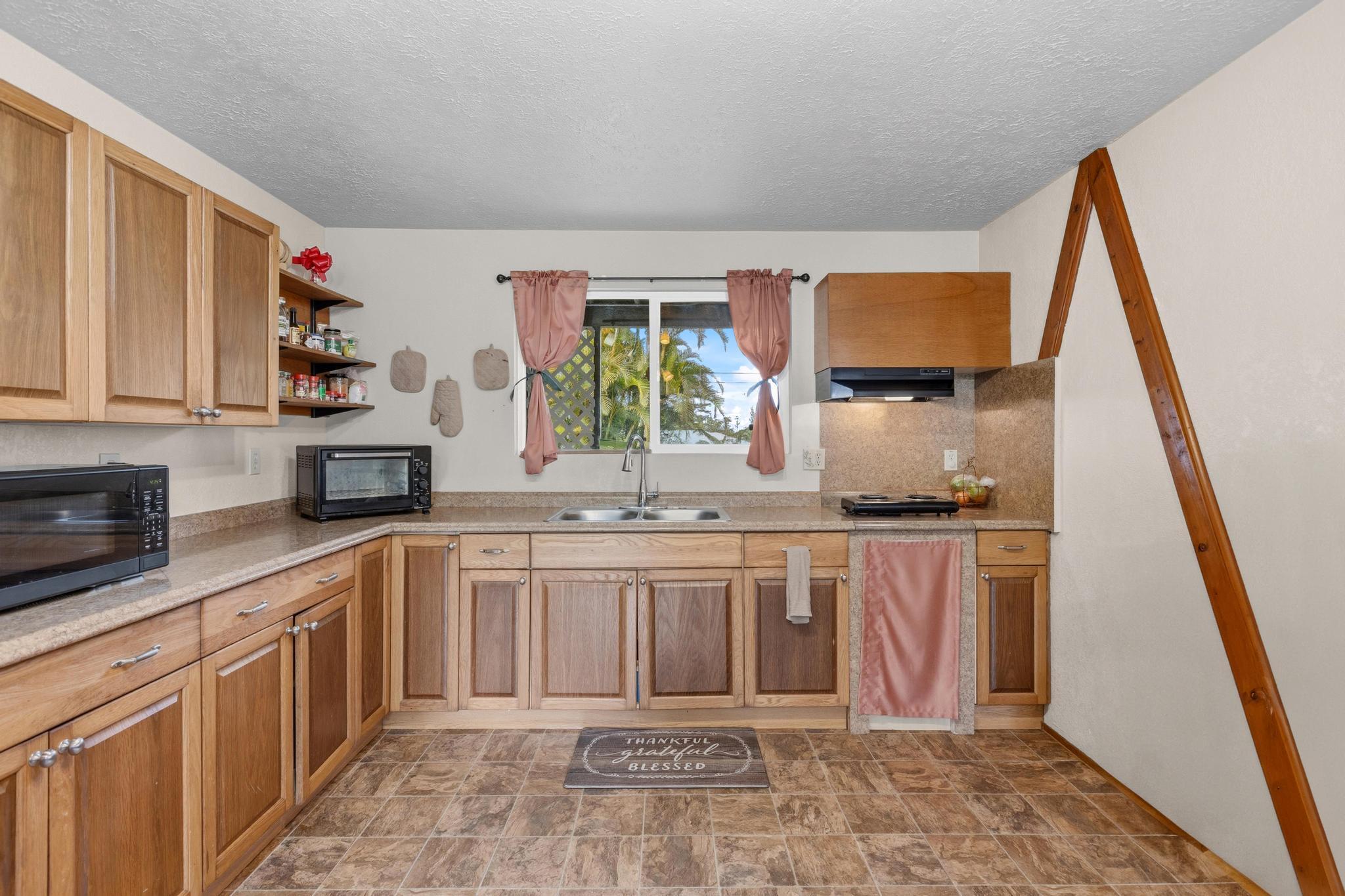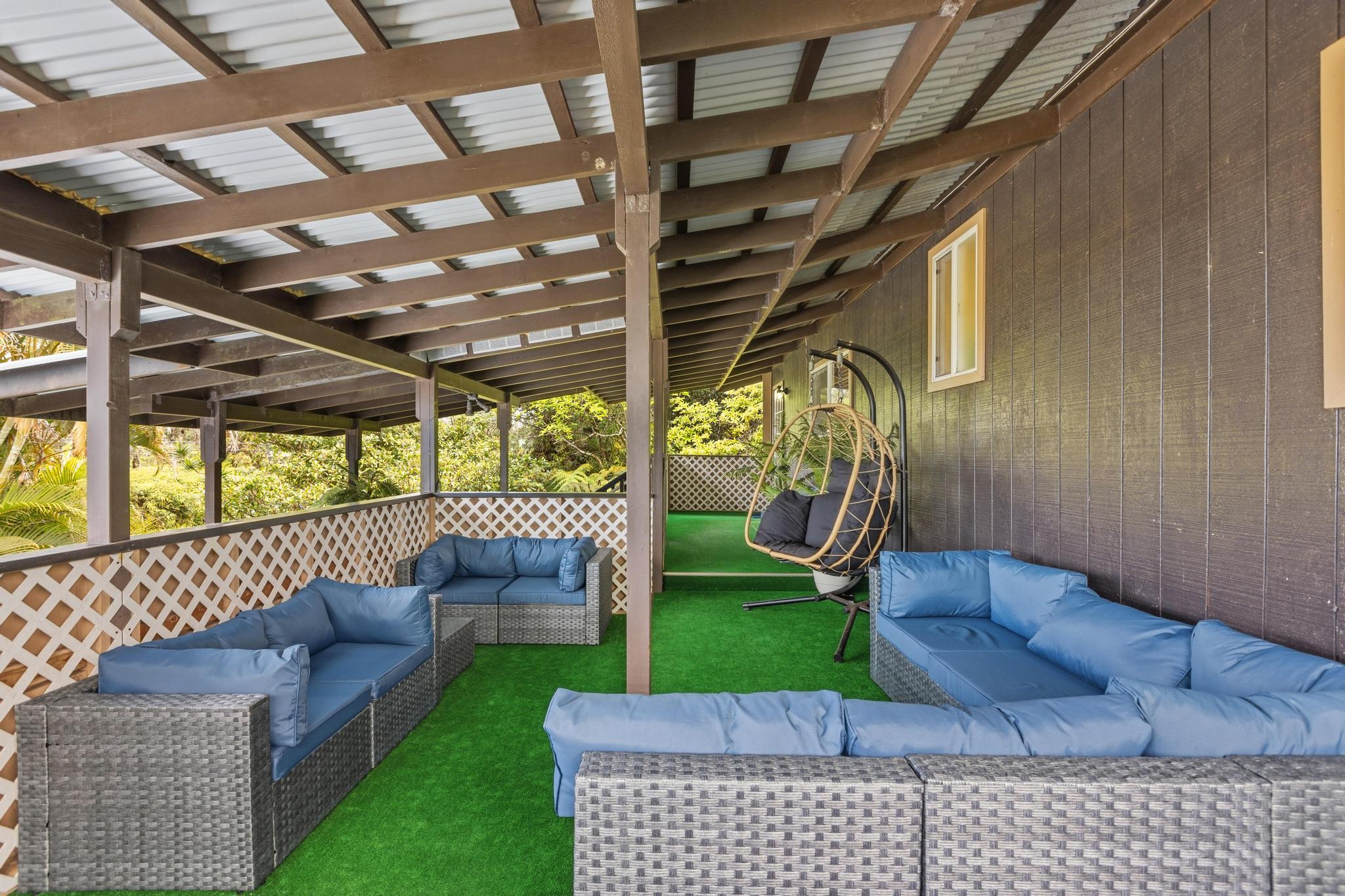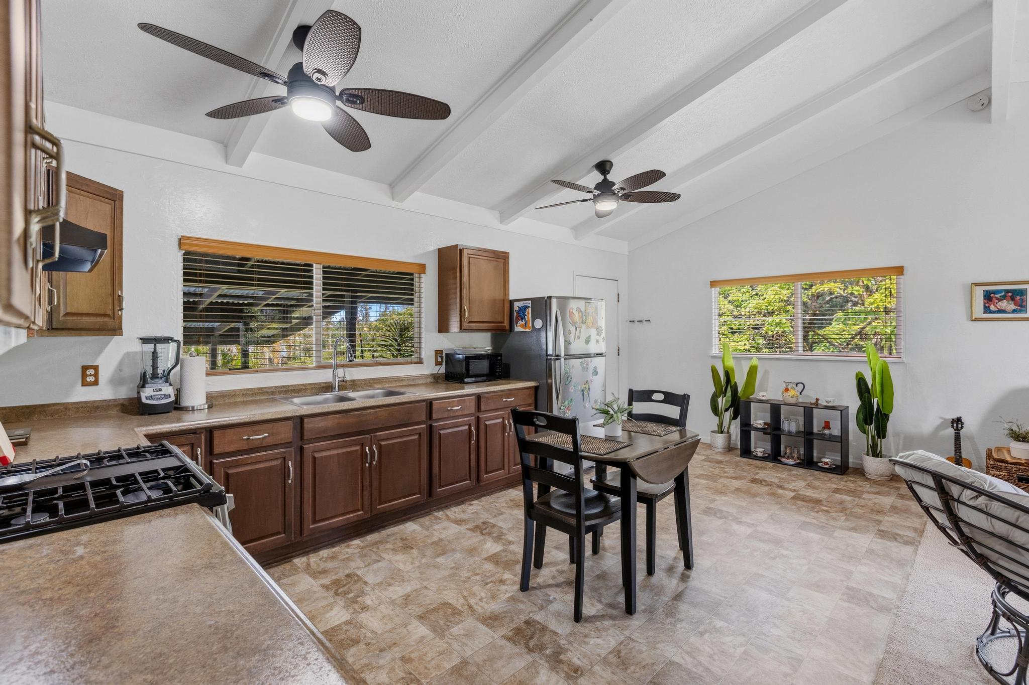 Great opportunity to own a well-proportioned two-level home in the Ainaloa community, offering flexibility, space, and a truly special island ambiance. The upper level features three bedrooms, one full bath, and an open kitchen, dining, and living area with vaulted ceilings that create a bright and inviting atmosphere. A covered lanai extends the living space, providing a peaceful place to relax and take in distant ocean views and cooling breezes. The lower level offers additional living space with a bathroom and multiple rooms, ideal for extended family, guests, or flexible use such as a home office, creative studio, or hobby area. What truly sets this property apart is the mature, thoughtfully cultivated yard–designed to be experienced as much as admired. Enjoy the fragrant blossoms of the puakenikeni tree, the beauty of anthuriums and gardenias, and the lush backdrop of hapu?u ferns that create a natural haven for orchids. Seasonal yellow ginger fills the air with a sweet summer scent, while birdsong from visiting finches and cardinals adds to the tranquil setting. The property also features productive calamansi and avocado trees, a charming rock wall accent, and a storage shed for added convenience. Whether relaxing on the front lanai on a warm day or enjoying the backyard from the rear lanai, the outdoor spaces invite you to slow down and enjoy the surroundings. Located just minutes from the popular Maku?u Farmers Market, where you’ll find fresh local produce, tropical fruits, plants, and unique artisan goods, this home offers not just a place to live–but a lifestyle to enjoy. With its flexible layout, income potential, and inviting atmosphere, this property is ready to capture interest and welcome its next owner.