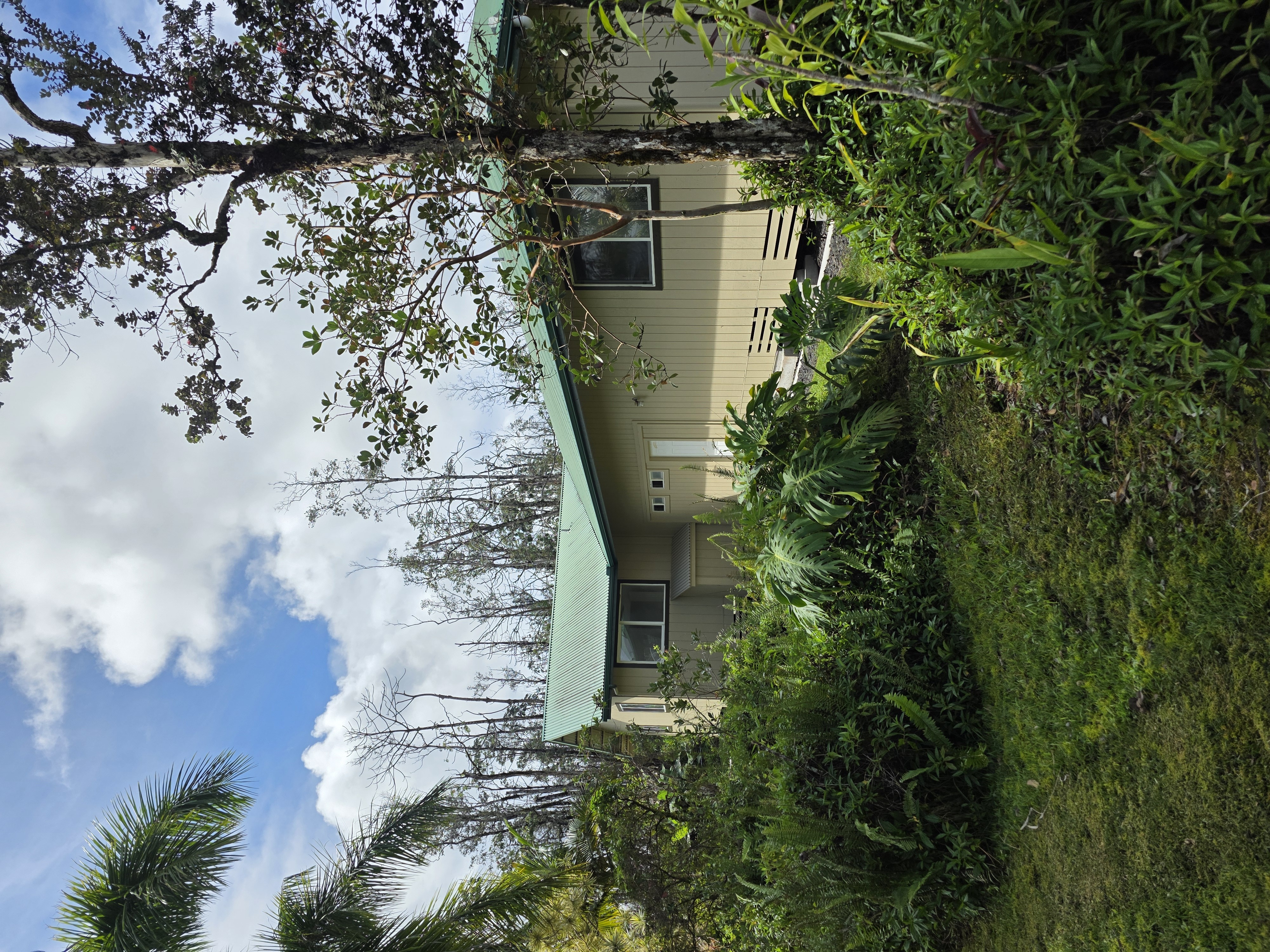 One of the best areas in Ainaloa. Great layout for the house with the master suite and its own lanai on one side of the garage. 2 bedrooms, 1 bathroom, open concept kitchen, dining, living room and another lanai on the other side. Large lot backs up to forest reserve with miles of accessible trails. 10k gallon catchment tank, UV filter for clean water.