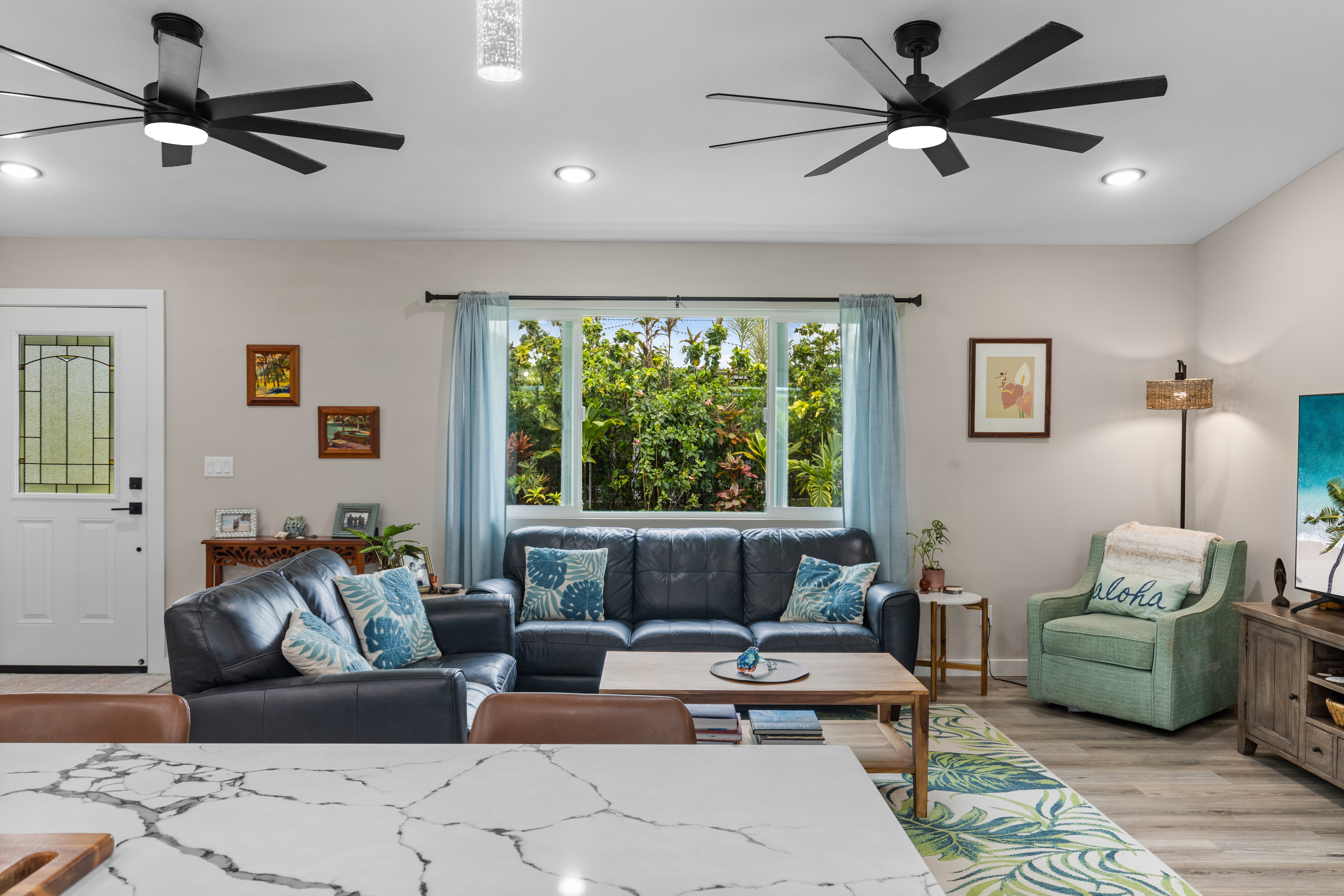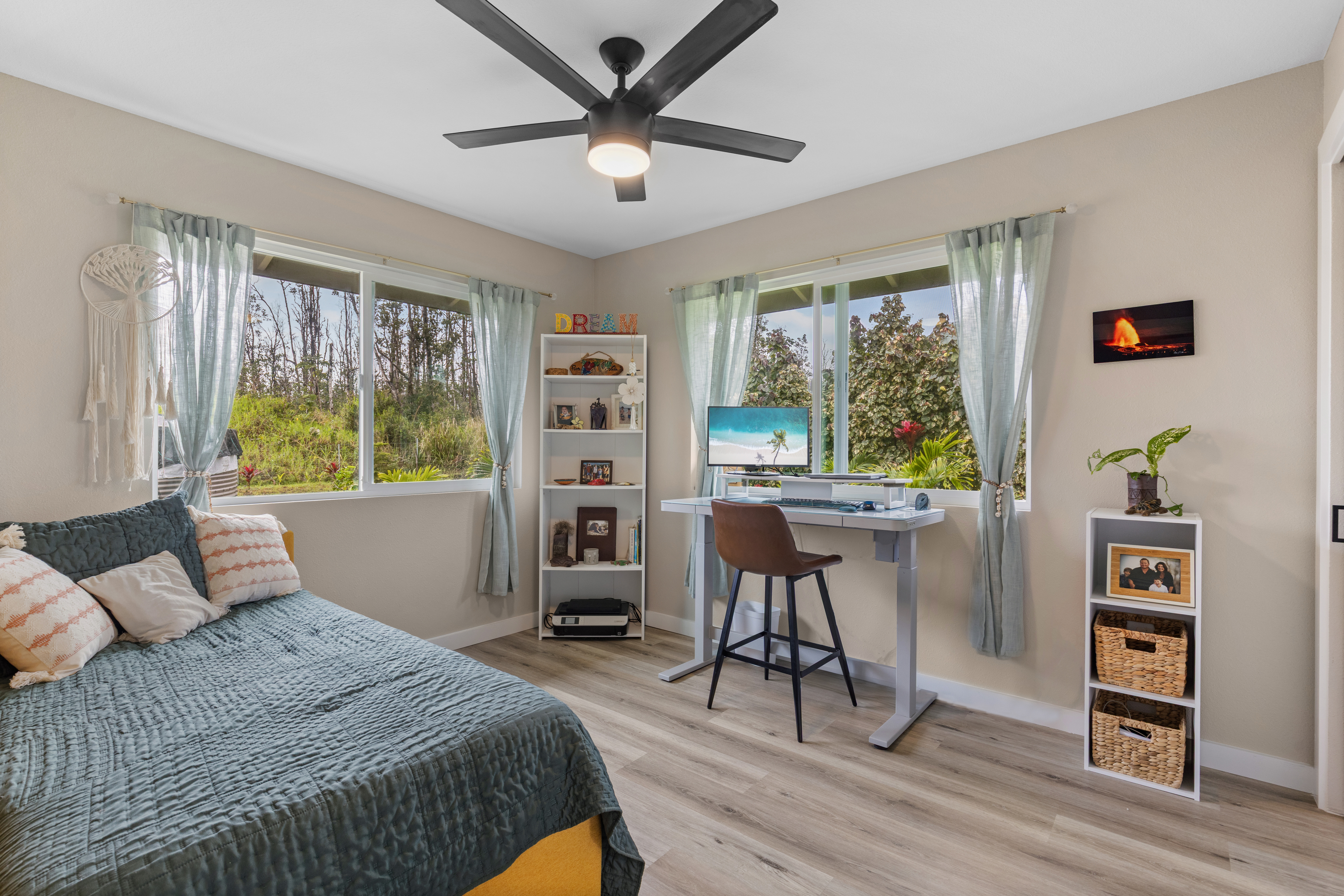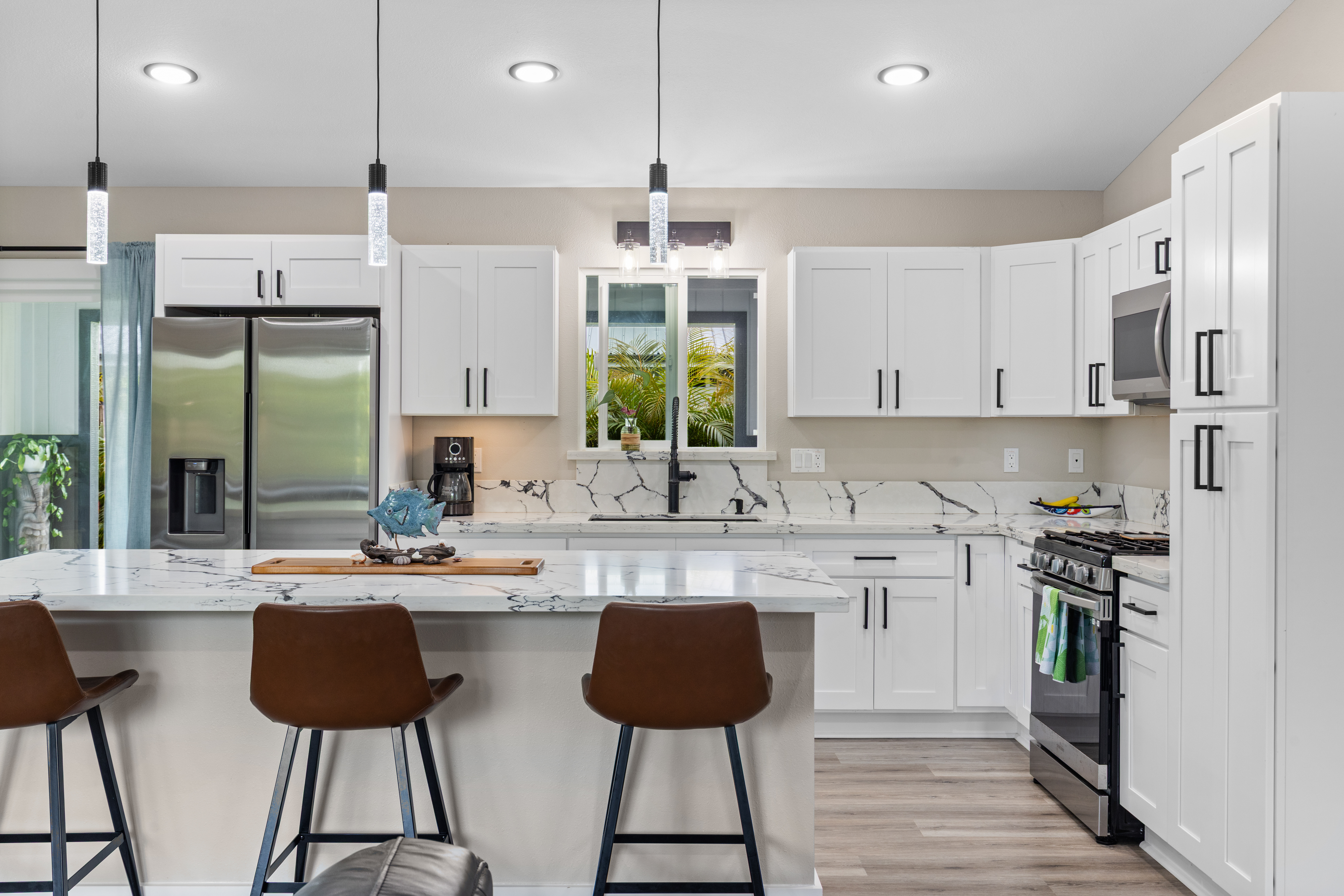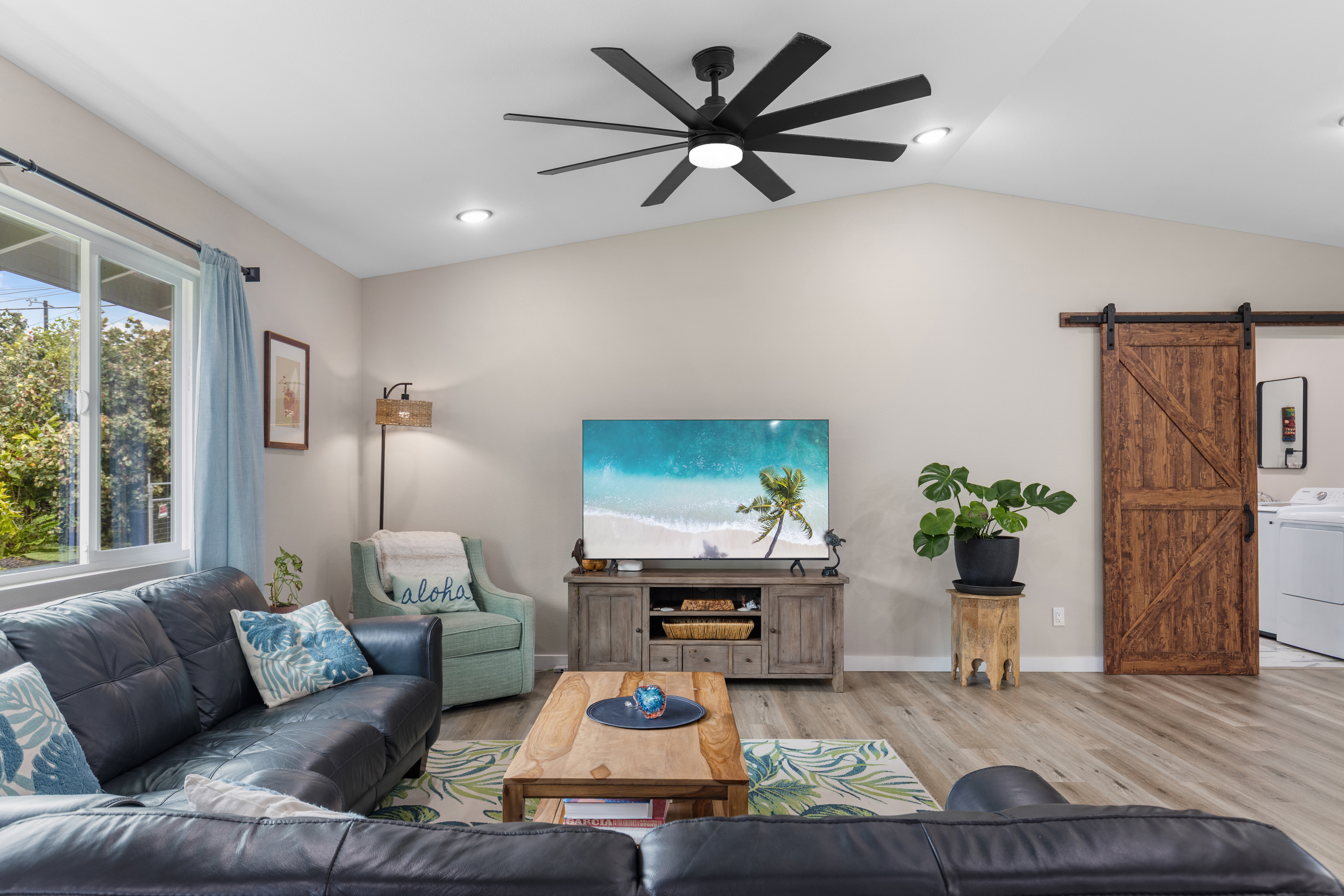 Like-new–but better–home on paved Ainaloa Drive in the desirable Ainaloa subdivision 3 bedroom / 3 full bath home, with a thoughtfully designed layout — ideal for first-time buyers or growing families Modern finishes throughout including sleek flooring and a clean, contemporary aesthetic Well-appointed kitchen featuring: Quartz countertops New cabinetry + pantry Center island for prep and gathering Stylish, modern lighting Functional floor plan with all bedrooms conveniently situated on one side Primary suite retreat with: Private bath Tiled walk-in shower with niche Decorative flooring details Guest bath with tiled tub/shower combo and updated finishes Ample hallway storage for added convenience Extra features: Indoor laundry room with utility sink Additional bath with walk-in shower Sliding barn door accent Spacious 2-car enclosed garage with extra storage Fully fenced & gated property with concrete driveway Save time and money–no need to install fencing or invest in landscaping Move right in and enjoy a finished, low-maintenance outdoor space Rare setting backing open land No rear neighbors Added privacy and a more expansive, peaceful feel A turn-key opportunity combining modern comfort, upgrades, and long-term value