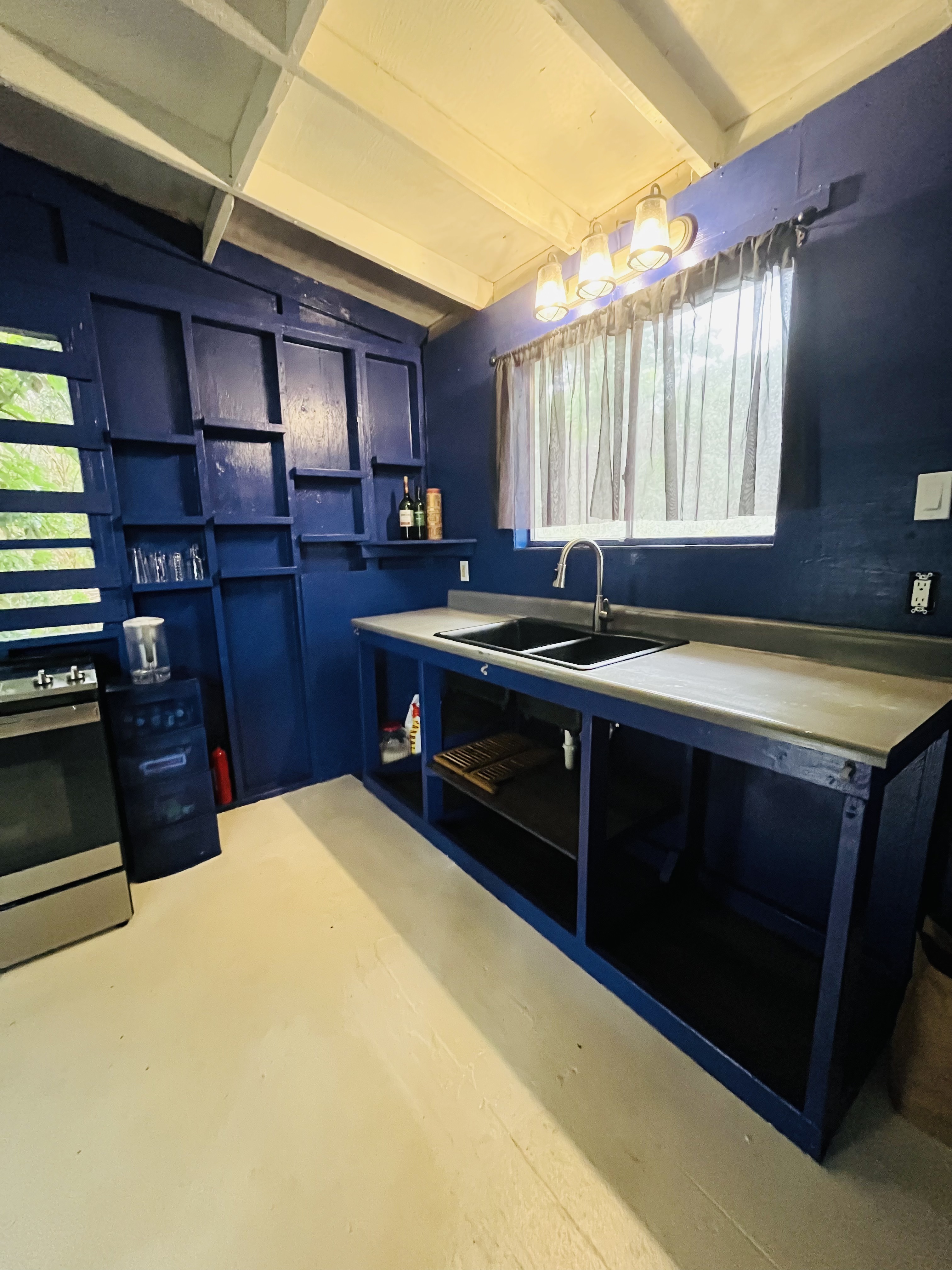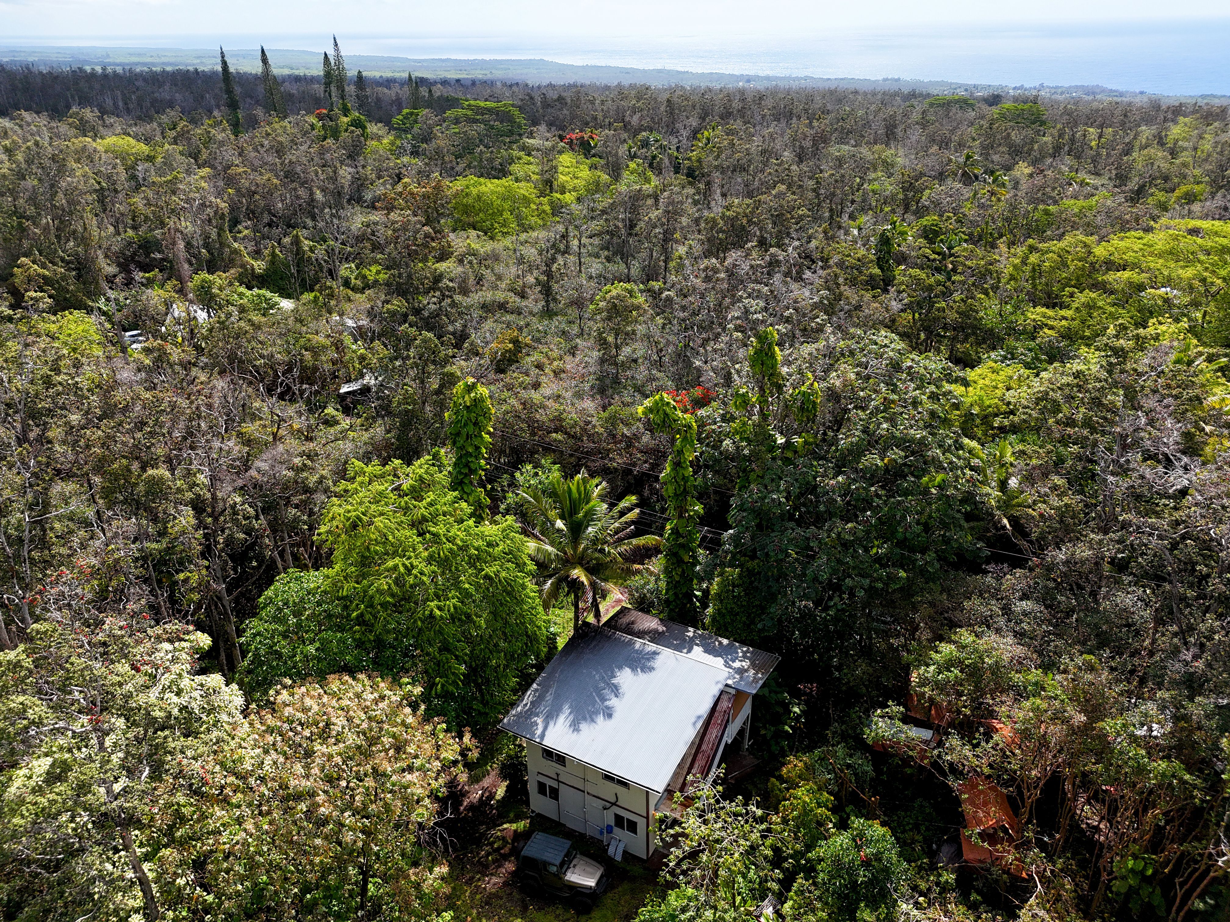 Nestled in the desirable Black Sand Beach area, this charming 1-bedroom, 2-bath home offers a peaceful island retreat surrounded by Hawaii’s natural beauty. Recent upgrades include a brand-new roof and new electrical panel, adding value and peace of mind. Inside, the open-concept living space feels bright and airy, with abundant natural light and views of the surrounding landscape. The kitchen includes a brand-new 220V plug for an electric oven, allowing flexibility for future cooking upgrades. The lower level features brand-new washer and dryer hookups along with plumbing for a utility sink, offering added functionality and potential to expand the space to suit your needs. The property is serviced by overhead electric, with the option to switch to generator power if desired. High-speed Hawaiian Telcom internet is available, making it easy to work remotely while enjoying the serenity of the area. A water catchment system supplies the home, helping eliminate costly water bills. Whether you're seeking a private retreat, full-time residence, or island getaway, this property offers a unique opportunity to enjoy comfortable living in a beautiful natural setting.