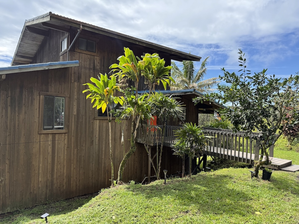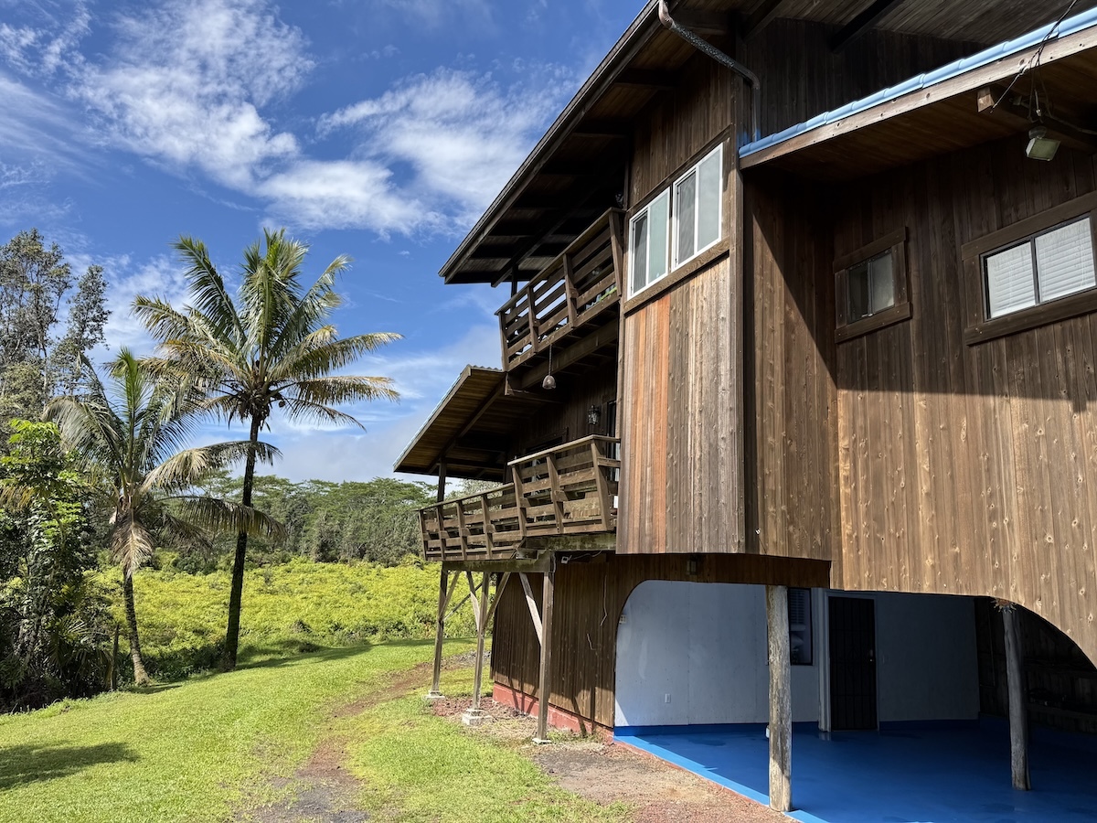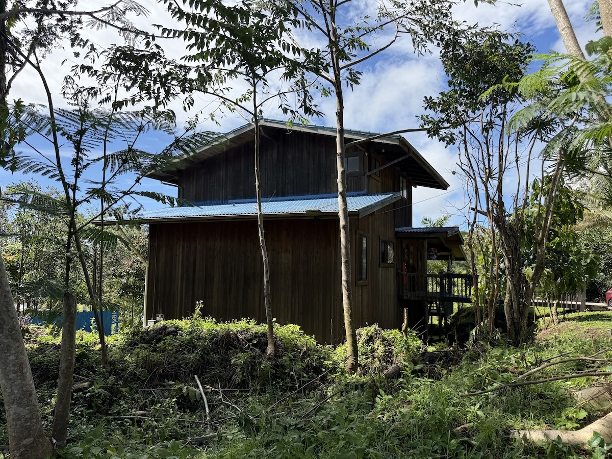 One-of-a-kind custom homes like this rarely come on the market at an affordable price point. Situated on a double lot adjacent to the Keau’ohana Forest Reserve, this unique and thoughtfully designed home is positioned to maximize views while maintaining privacy. Upon entering the home, you are welcomed by an open-concept kitchen, dining, and living area with sliding doors opening out to a wrap-around lanai. Expansive views stretch into the distance. The chef’s kitchen is built for entertaining with two, custom built-in bars with storage, and abundant counter space. Down the hall, there is a full bath and a bedroom. Upstairs, the entire top floor is a massive primary bedroom with ensuite bath and its own lanai with filtered ocean views. Facing the forest reserve, the primary suite offers an incredible amount of privacy while still feeling open and airy. The top story lanai with custom built in benches is the perfect place to enjoy your morning coffee or wind down after a long day. On the ground floor, you will find an enclosed laundry room and bonus room that could be used for guests, office space, storage or any number of creative uses. The neighboring two-car garage has abundant space for storage or even a workshop. Don’t miss the weekly farmers market and incredible local music just down the road in Kalapana, the birthplace of many of Hawaii’s masters of slack-key guitar. Keep driving a little further down the “Red Road” to experience one of the most beautiful coastal drives on the Big Island. This picturesque road winds through dense old growth jungle and massive mango trees to Issac Hale Beach Park (Pohoiki) where you will find hot ponds and a newly formed black sand beach.This truly unique and important part of East Hawaii is not to be missed.