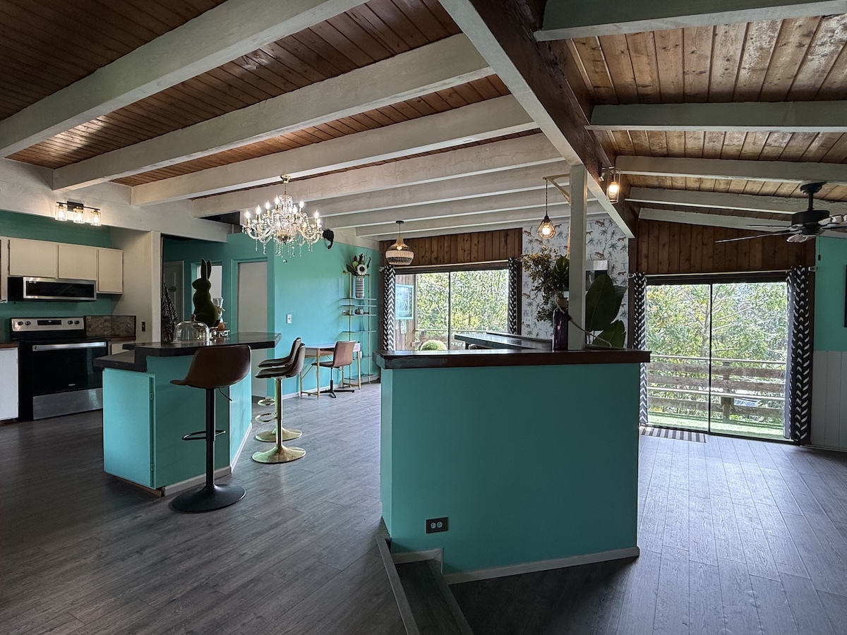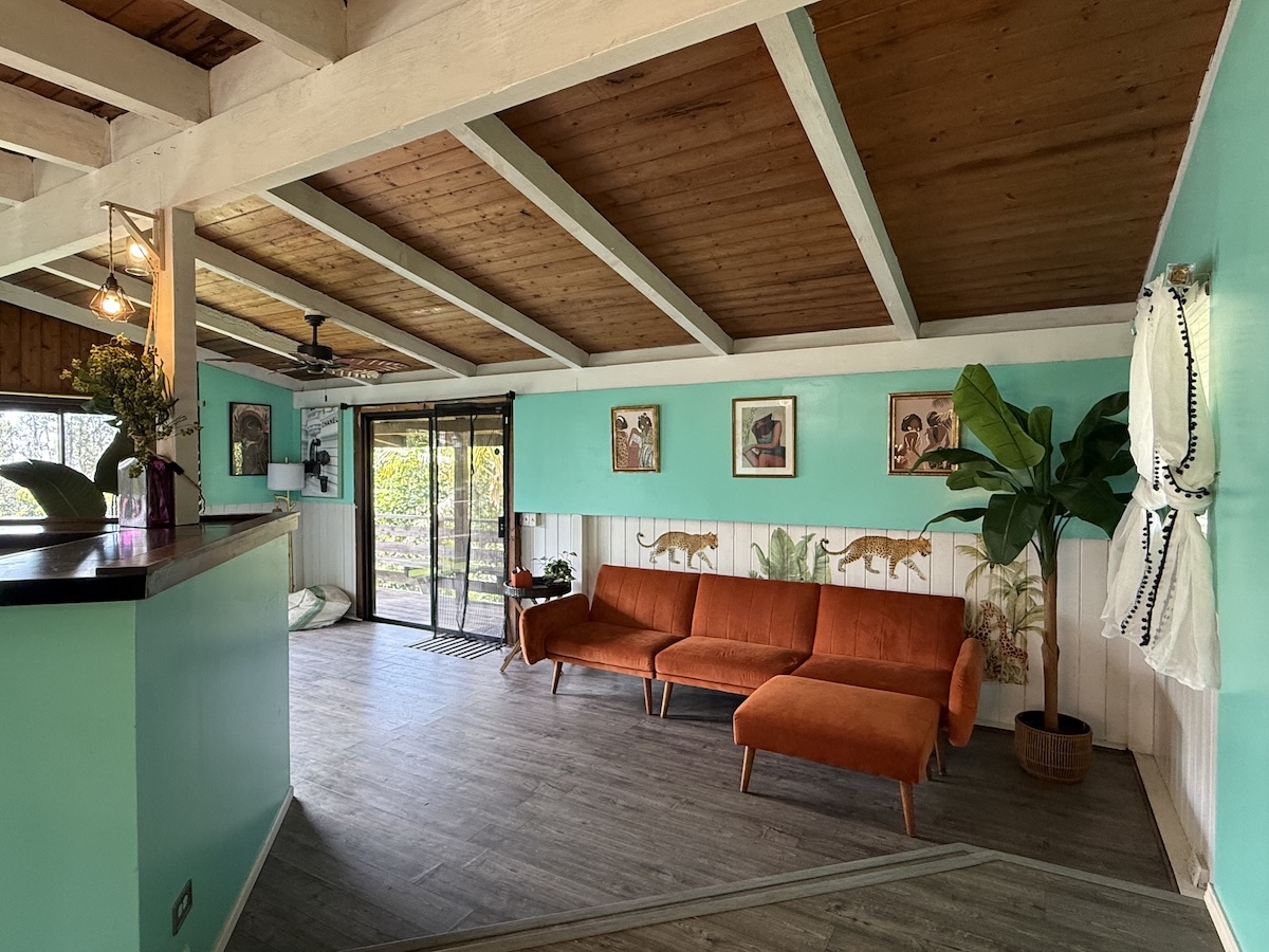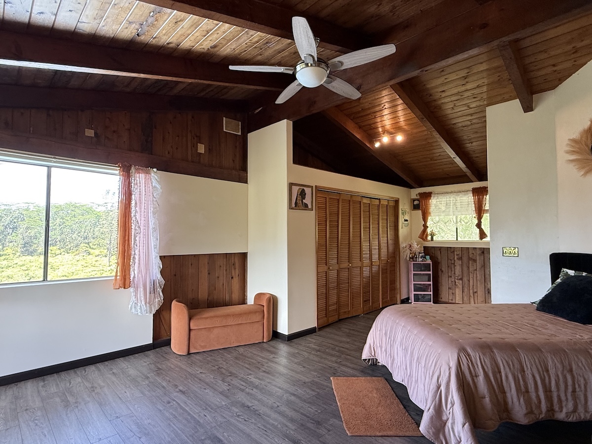 One-of-a-kind custom homes like this rarely come on the market at an affordable price point. Situated on a double lot adjacent to the Keau’ohana Forest Reserve, this unique and thoughtfully designed home is positioned to maximize views while maintaining privacy. Upon entering the home, you are welcomed by an open-concept kitchen, dining, and living area with sliding doors opening out to a wrap-around lanai. Expansive views stretch into the distance. The chef’s kitchen is built for entertaining with two, custom built-in bars with storage, and abundant counter space. Down the hall, there is a full bath and a bedroom. Upstairs, the entire top floor is a massive primary bedroom with ensuite bath and its own lanai with filtered ocean views. Facing the forest reserve, the primary suite offers an incredible amount of privacy while still feeling open and airy. The top story lanai with custom built in benches is the perfect place to enjoy your morning coffee or wind down after a long day. On the ground floor, you will find an enclosed laundry room and bonus room that could be used for guests, office space, storage or any number of creative uses. The neighboring two-car garage has abundant space for storage or even a workshop. Don’t miss the weekly farmers market and incredible local music just down the road in Kalapana, the birthplace of many of Hawaii’s masters of slack-key guitar. Keep driving a little further down the “Red Road” to experience one of the most beautiful coastal drives on the Big Island. This picturesque road winds through dense old growth jungle and massive mango trees to Issac Hale Beach Park (Pohoiki) where you will find hot ponds and a newly formed black sand beach.This truly unique and important part of East Hawaii is not to be missed.