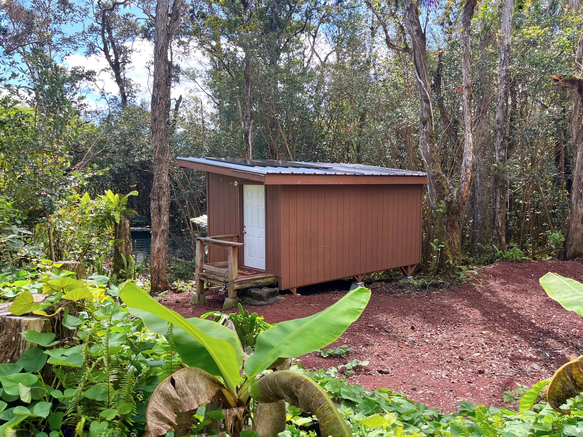 Discover a rare opportunity to own a larger-than-average parcel tucked away in one of East Hawai‘i’s most peaceful and private forest settings. This solidly built cabin sits at the quiet edge of Black Sand Subdivision. Across the paved road are thousands of acres of pristine Hawaiian forest, offering an oasis of quiet and natural beauty.