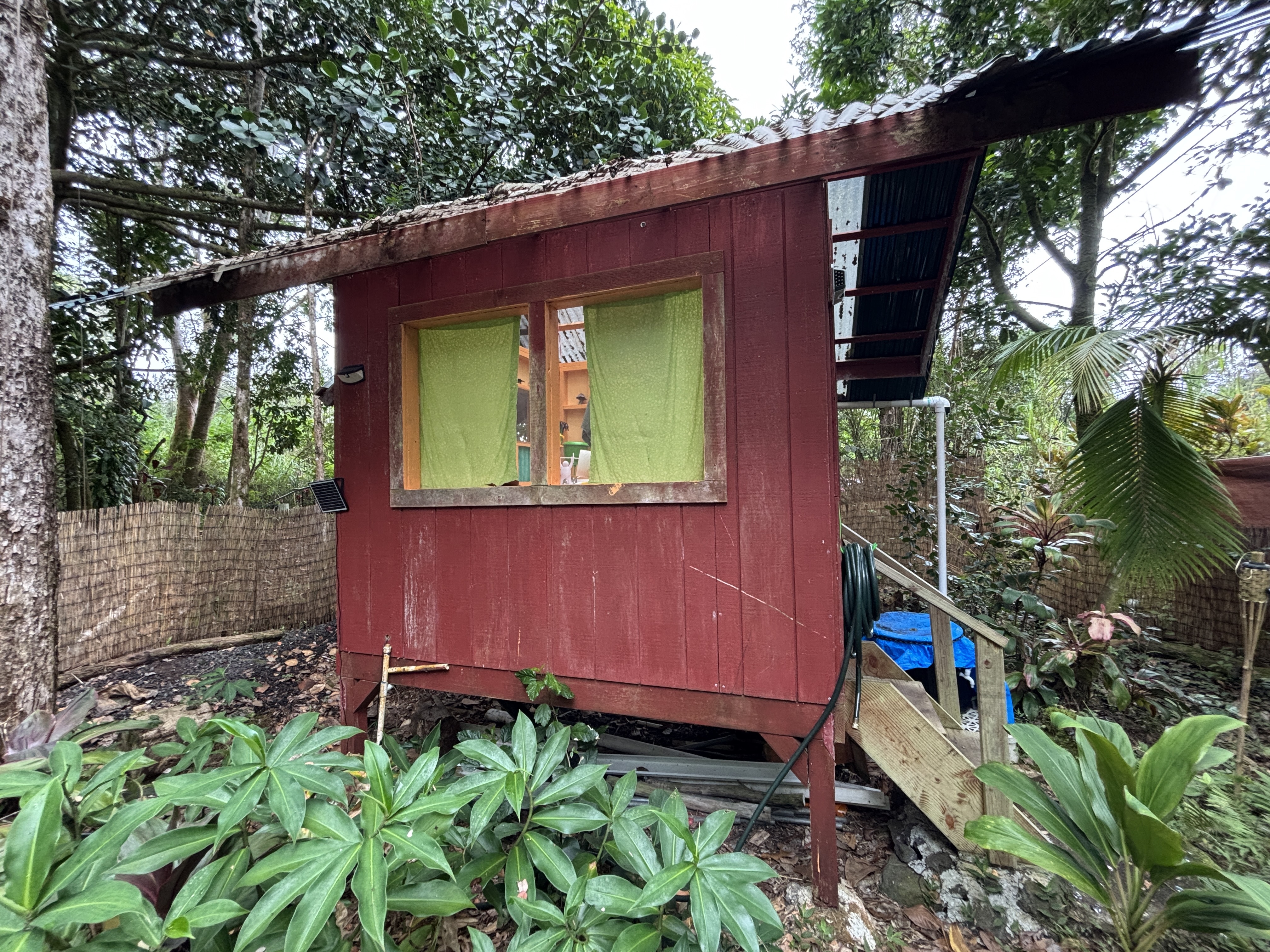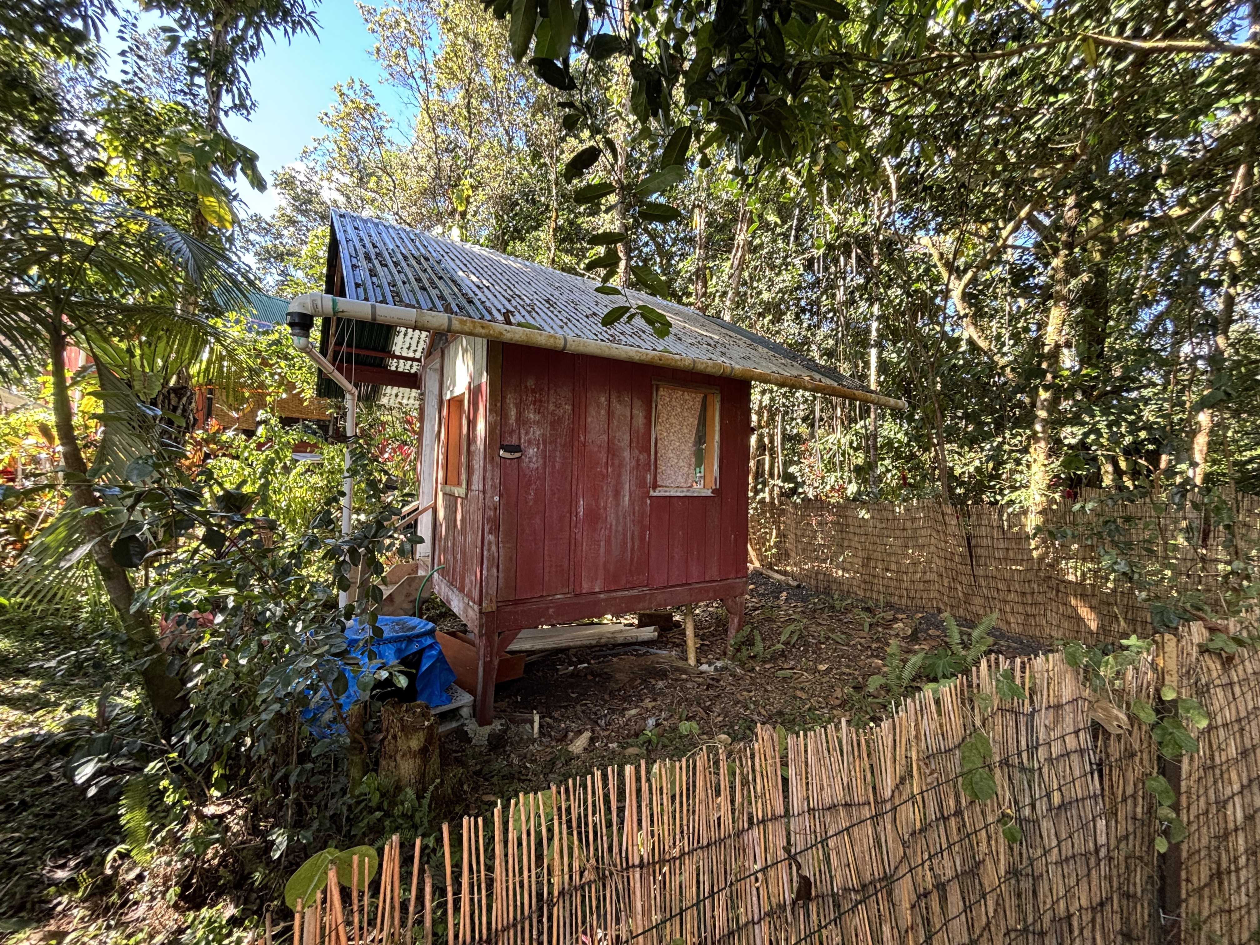 Welcome to Black Sand Beach Subdivision! This charming, un-permitted cabin offers a rare opportunity to enjoy Hawaii living at an affordable price. Sale includes both parcels totaling ~16,824 sq. ft., including the corner lot (TMK 3-1-2-21-81) with an eccentric bathroom/washroom (plumbing not connected) and a tool shed. The primary lot (TMK 3-1-2-21-80) provides exceptional privacy, with the seller’s care preserving native Hawaiian vegetation while cultivating fruit and flowering plants.