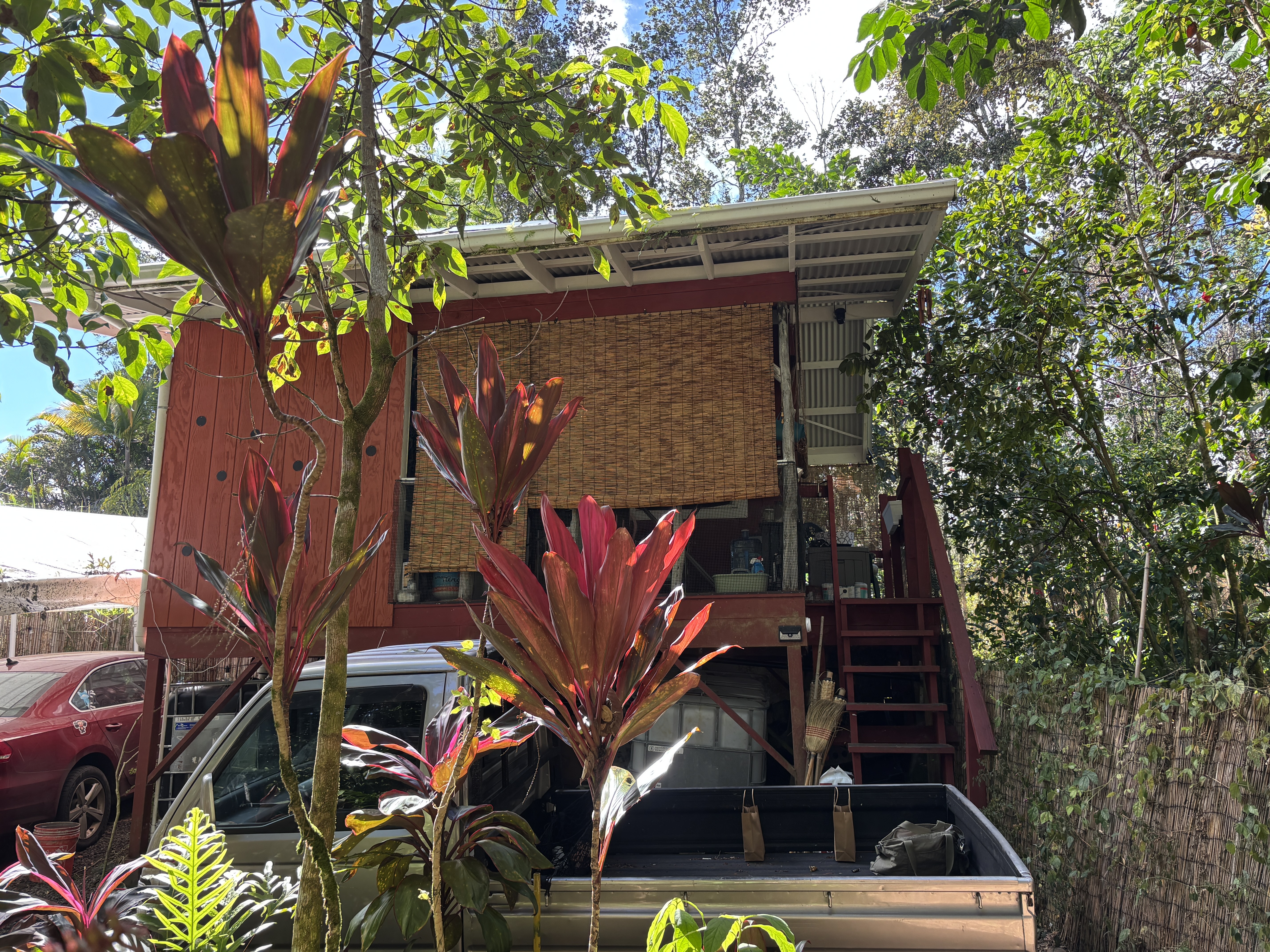 Enjoy lush landscaping featuring mature fruit trees (citrus, passion fruit, cocoa), young trees (mango, papaya, avocado), and native Hawaiian plants such as ‘ohia, ti leaf, and hau. Colorful flowering plants and gingers create a private, tropical oasis.