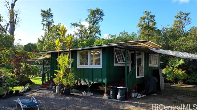 Welcome to your charming home in Hawaii’s lush Fern Acres! This off-grid, one-bedroom home is set on a beautifully landscaped 2-acre parcel, offering privacy and tropical living. The property is accessible via a long, paved driveway, ensuring peace and quiet while remaining convenient. The spacious bedroom provides a serene escape, while the cozy living room offers relaxing views of the lush yard. The bathroom features a soaking tub with the property also having an outdoor shower, letting you connect with the beauty of the tropics. This home, full of potential, needs a little TLC, giving you the perfect opportunity to customize and make it your own. The home is powered by six owned solar panels and eight lithium batteries, with a 3,500-gallon catchment tank and a new water heater. Hawaiian Tel High-Speed Internet makes remote work a breeze. The property’s landscaping is a tropical paradise, featuring lemon, grapefruit, and avocado trees, along with plumeria, orchids, ti leaf, ha?upu?u ferns, and a 14-foot fiddle-leaf fig. Natural lava rock formations add to its charm. Additional amenities include a 30’ x 30’ carport and two storage sheds. Enjoy sustainable living!