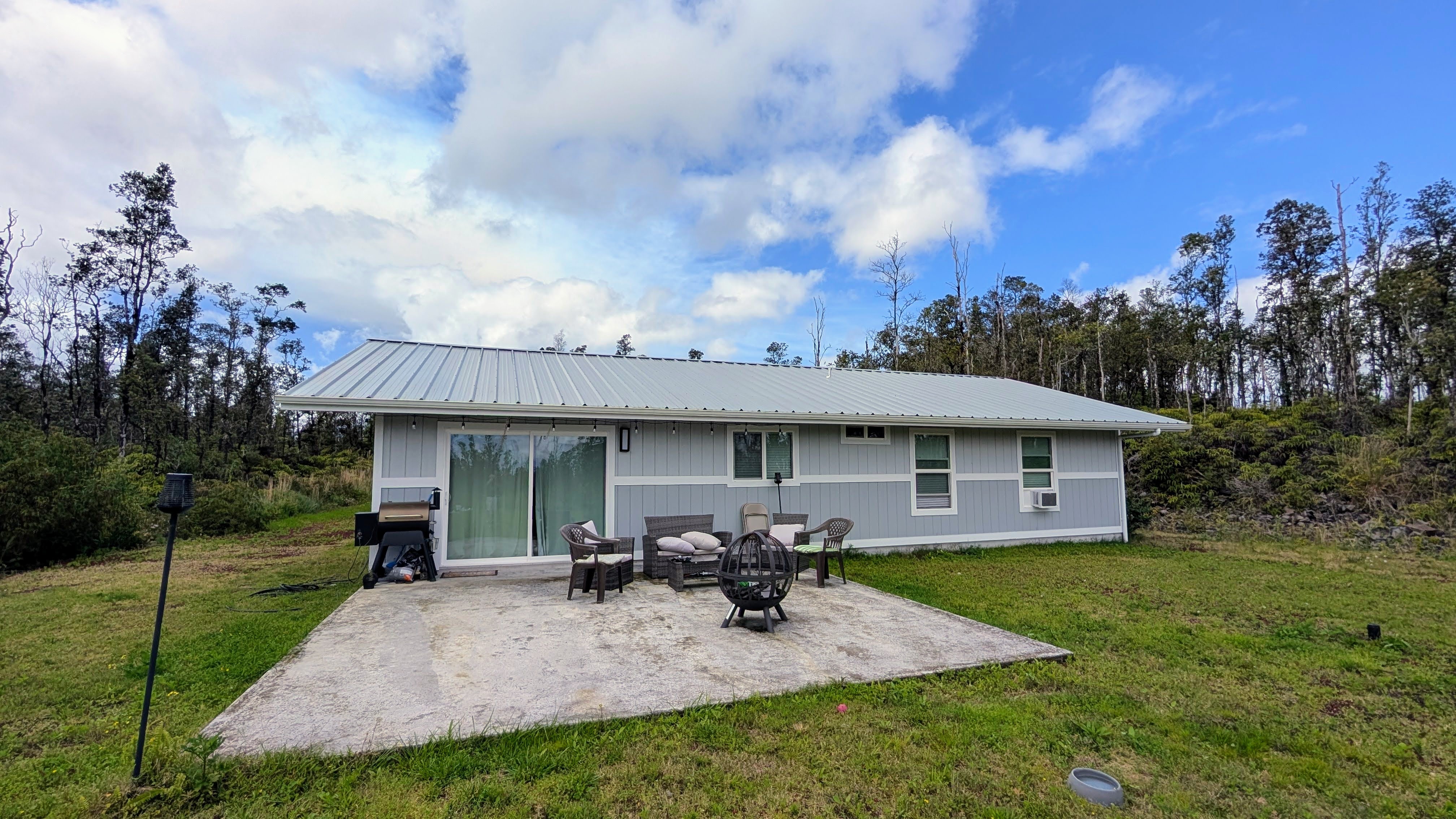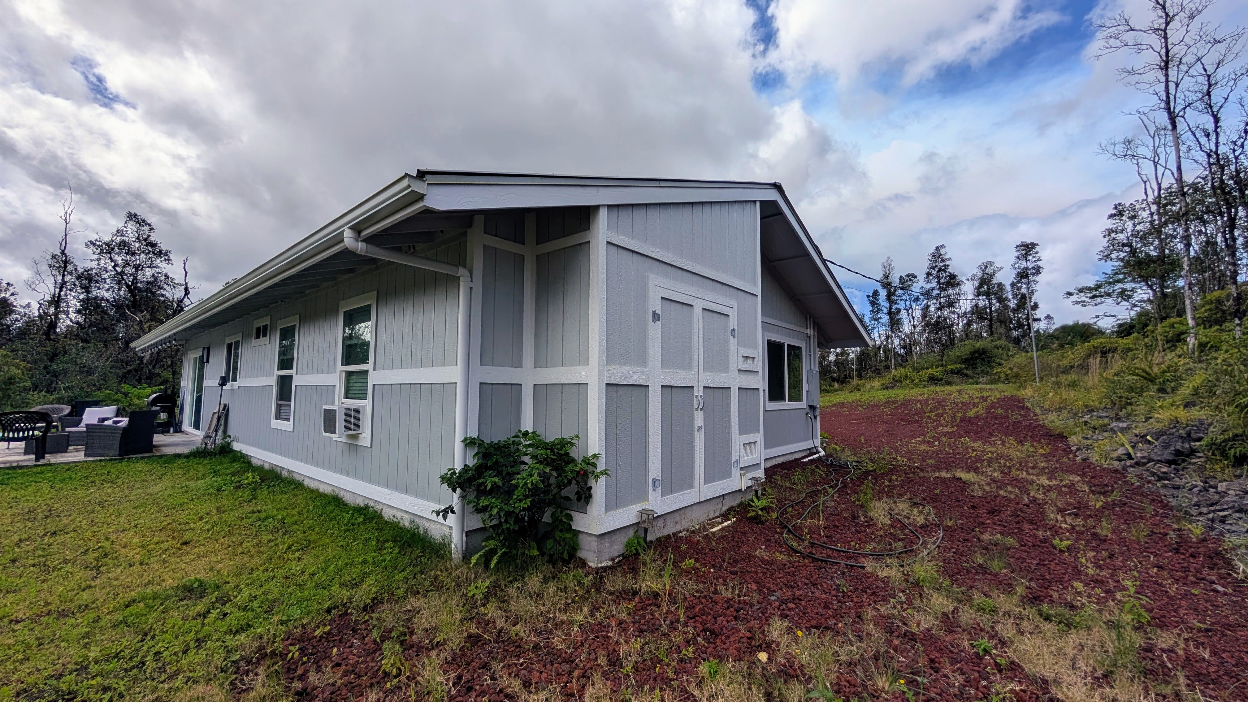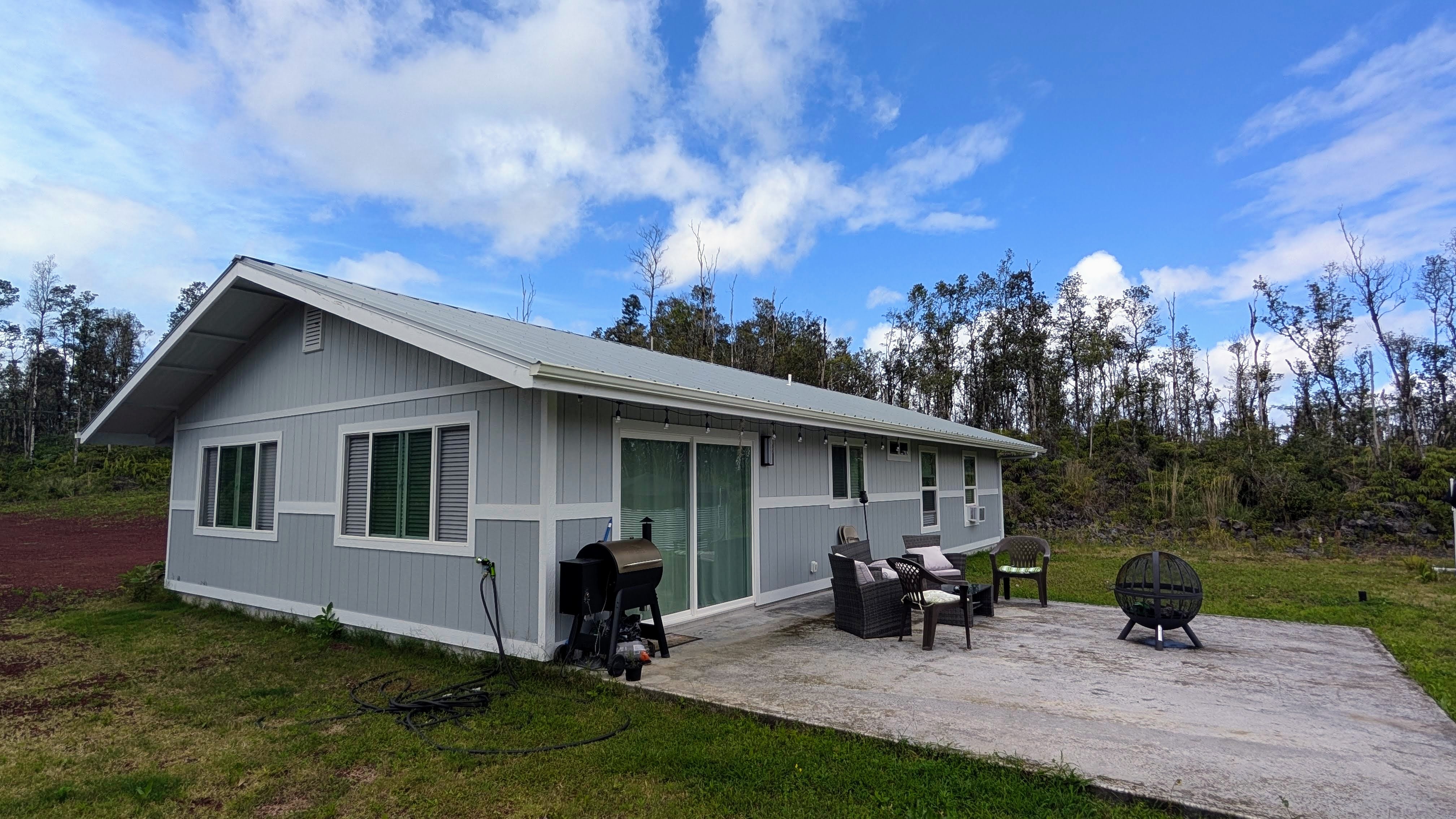 Discover this beautifully crafted newer home, offering 3 bedrooms, 2 bathrooms, and 1,372 sq. ft. of thoughtfully designed living space with modern upgrades throughout. A 400-ft private driveway welcomes you in, providing the privacy and space buyers are looking for. Inside, the sleek contemporary kitchen features stainless steel Samsung appliances, along with natural quartzite countertops and backsplash, creating a stunning, durable, and high-end cooking space. The home is also equipped for modern living with CAT6 outlets in every room and a 200-amp electrical service, ideal for remote work and today’s technology needs. All windows include custom blinds for style, comfort, and energy efficiency. A whole-home water filtration system with UV purifier ensures clean, high-quality water year-round. Outdoor living is ready to enjoy with a 20' x 20' lanai pad, perfect for entertaining, relaxing, or expanding your outdoor living space. An attached 10' x 3' locking exterior storage closet offers secure space for tools and essentials. Located at approximately 1,500 ft elevation, Fern Acres near Mountain View enjoys comfortable temperatures year-round and offers a refreshing country feel. Residents also benefit from community-maintained private paved roads. Move-in ready and thoughtfully designed, this home offers privacy, modern finishes, and lasting value. This one is a must-see! *Listing information and public records are deemed to be reliable but not guaranteed. Buyers should independently verify any information relevant to their purchase. HOA website: FernAcres.org