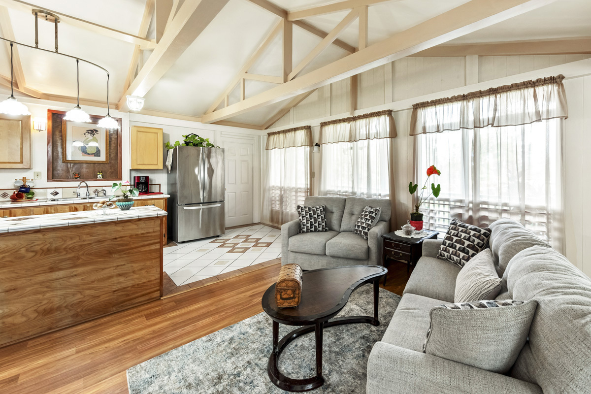 This single level home was once a 2/1 and now a 3/2, with a comfortable, open living layout. The interior has been almost completely repainted, as well as the lanai, catchment tank and laundry patio. The third room has access from the large lanai as well as from the interior, making it ideal for guests to come and go on their schedule. A shower stall was added to the original half bath, making the full bath a private bathroom for the primary bedroom.