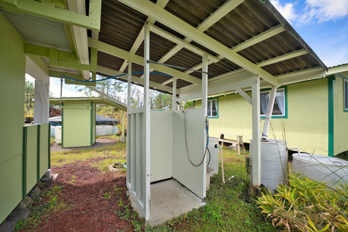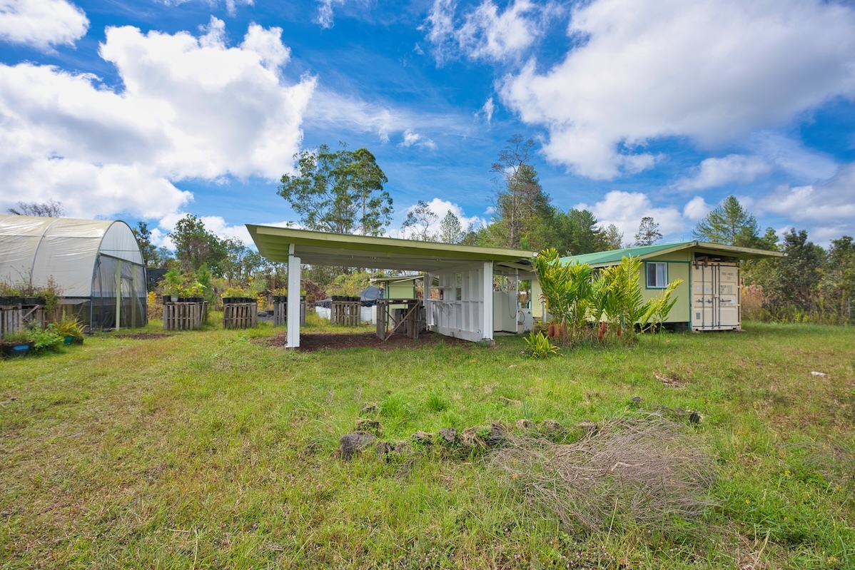 Tucked away in the lush greenery of Fern Forest, this cozy 1-bed, ¼-bath offers a peaceful retreat surrounded by native plants, fruit trees, & herbs. Designed for simple, sustainable living, the property combines off-grid functionality with the beauty of Hawai‘i’s landscape. Enjoy energy independence with a solar system featuring 4 panels & 4 batteries, plus a brand-new water catchment tank to keep your home running efficiently year-round. Rinse off beneath the stars in your outdoor shower, or spend your afternoons tending to plants inside the hoop-style greenhouse, where warmth and light nurture your favorite tropicals and herbs. With 3 acres of fertile volcanic soil, there’s plenty of space to expand, cultivate, or simply relax and listen to the forest come alive around you. On a clear day, take in a beautiful view of Mauna Kea, standing proudly in the distance as a reminder of the island’s majestic energy. Wake up to the sound of native birds, enjoy cool breezes through the ohia trees, and end your day under a canopy of stars. The land has been thoughtfully planted with an impressive collection of tropical and edible species – including mountain apple, jackfruit, white guava, coconut palm, pink veregated lemon, yard-long ice cream bean, noni, mamaki, fig, breadfruit (‘ulu), green tea, raspberry hibiscus, black and white sapote, avocado, rainbow eucalyptus, Santa Rosa plum, shampoo ginger, curry tree, apple tree, grass tree, finger lime, tropical apricot, and tithonia sunflowers. A gardener’s dream and a forager’s paradise, this lush landscape invites you to harvest, explore, and grow your vision of island living. Fern Forest has a mandatory road maintenance fee of $200.45 per year. More info at www.fernforestcommunityassociation.com. Whether you are seeking a peaceful getaway, a creative retreat, or a self-sufficient lifestyle surrounded by nature, this property radiates warmth, possibility, and aloha.
