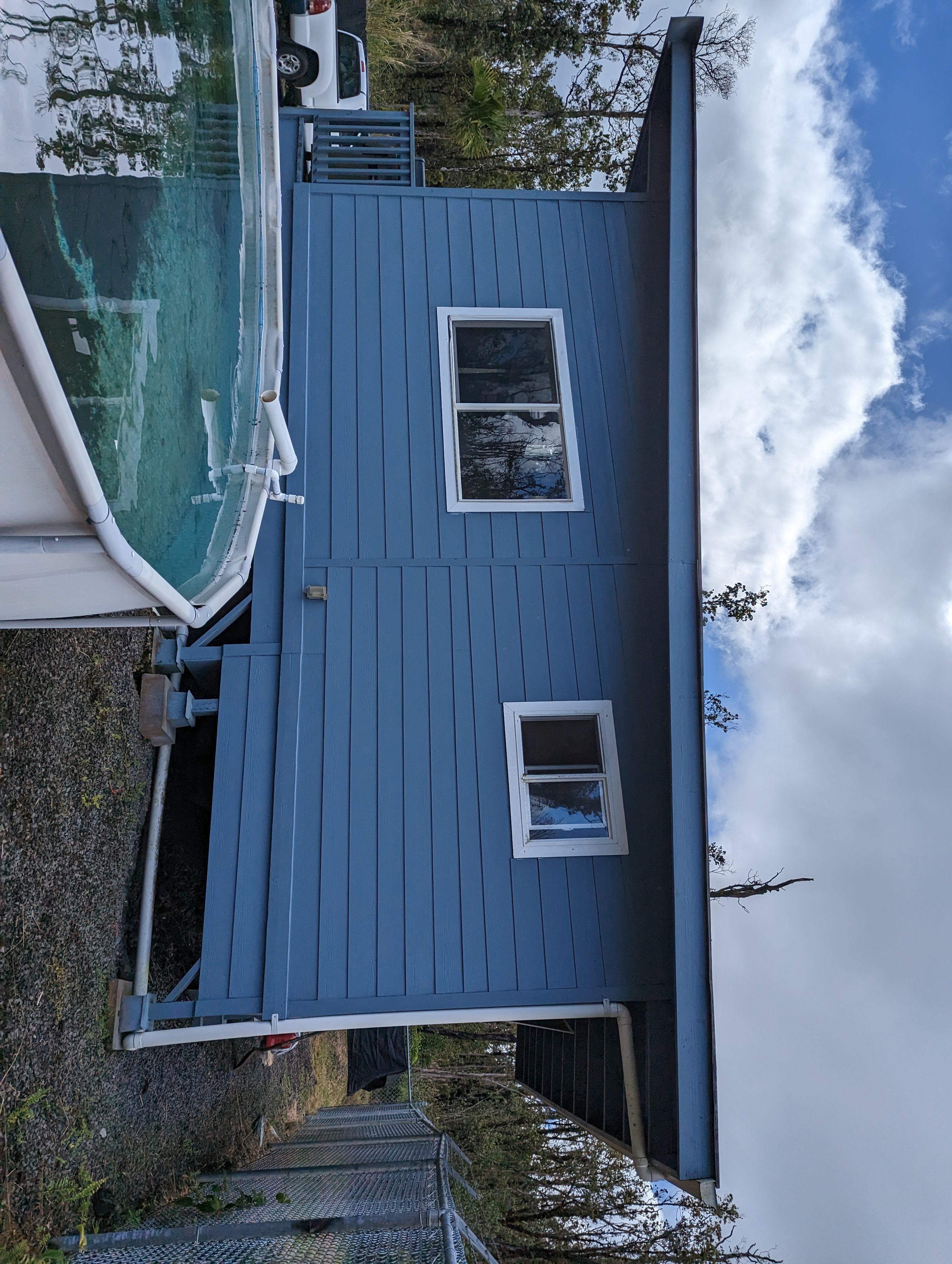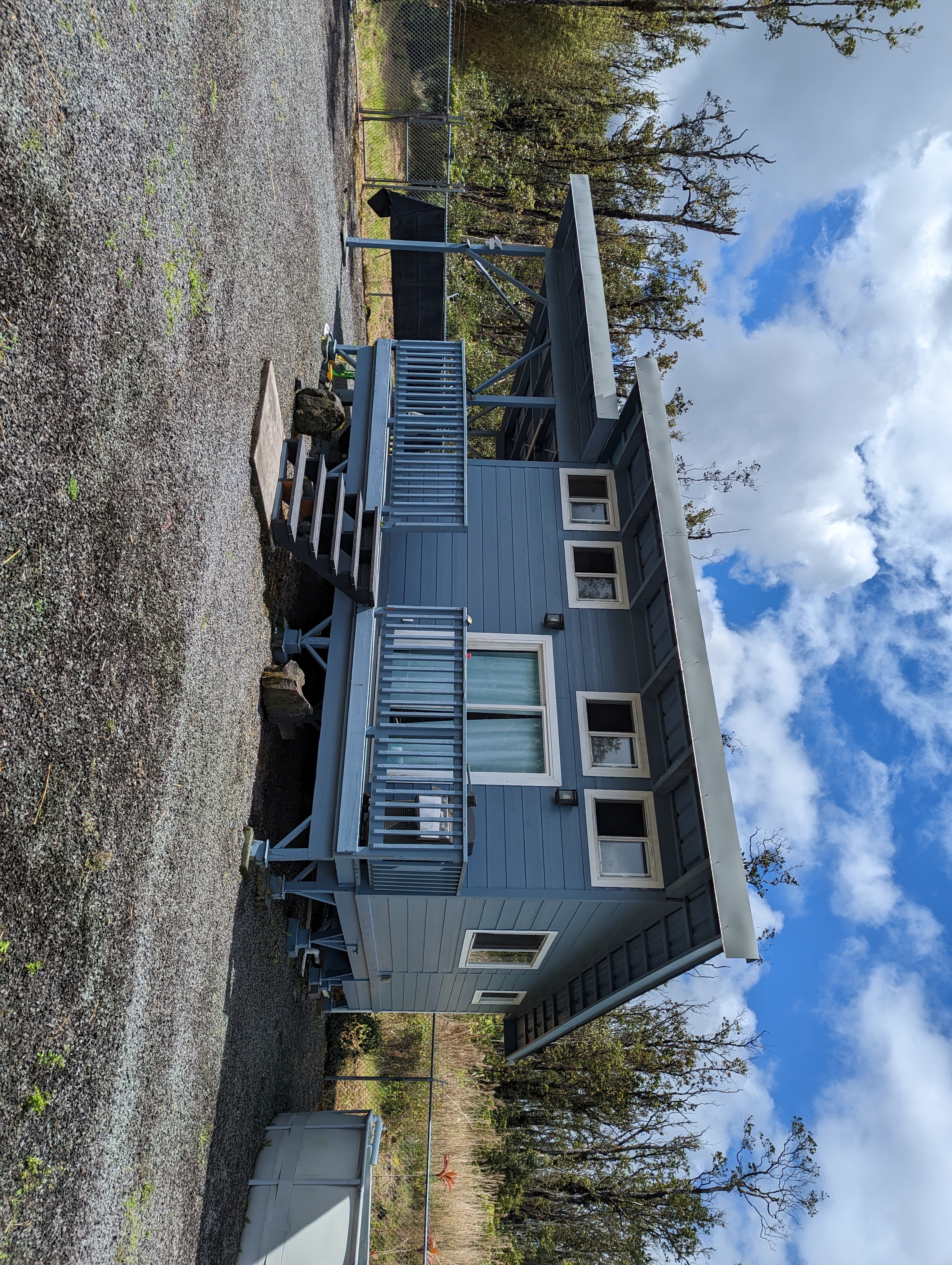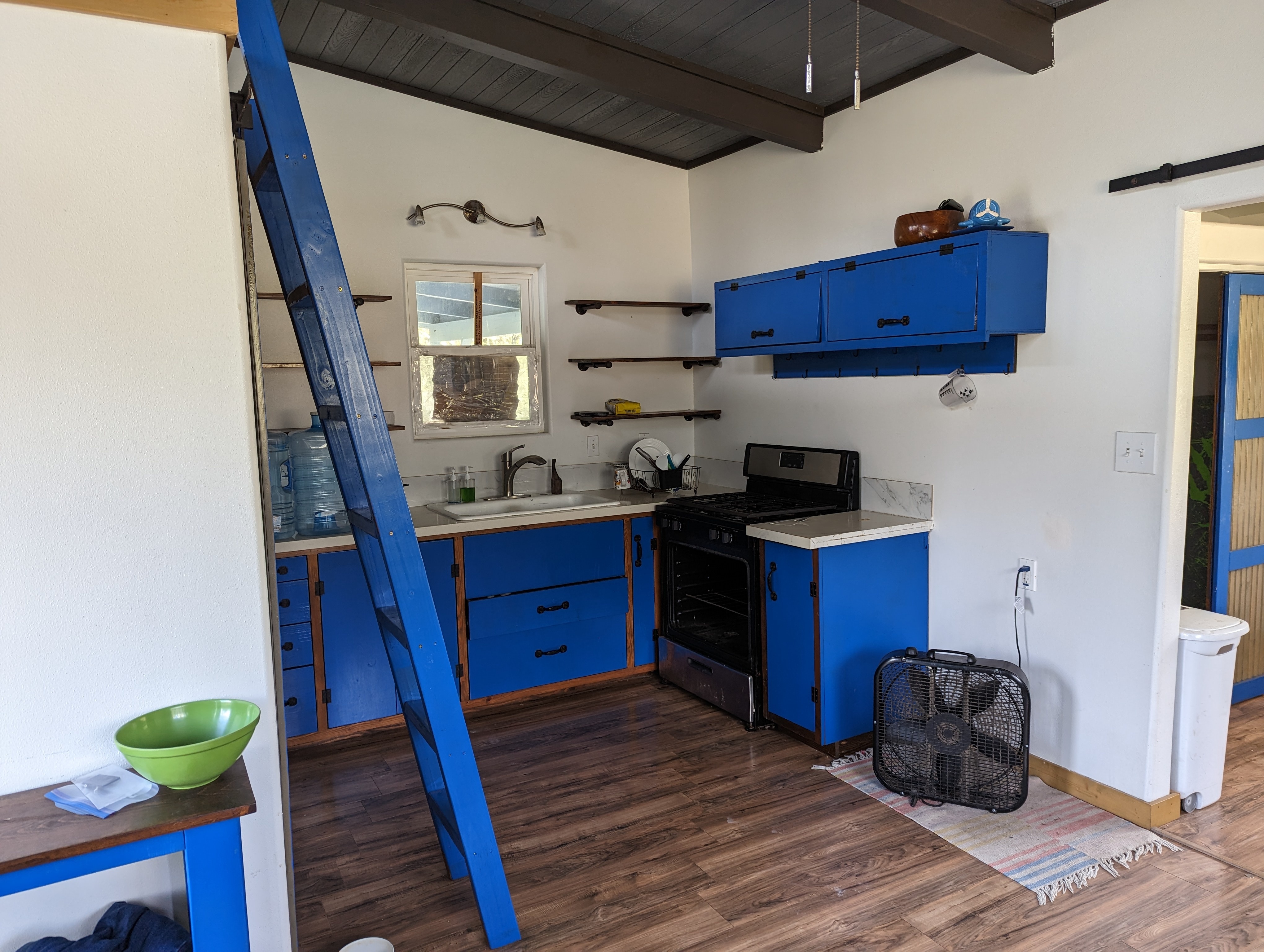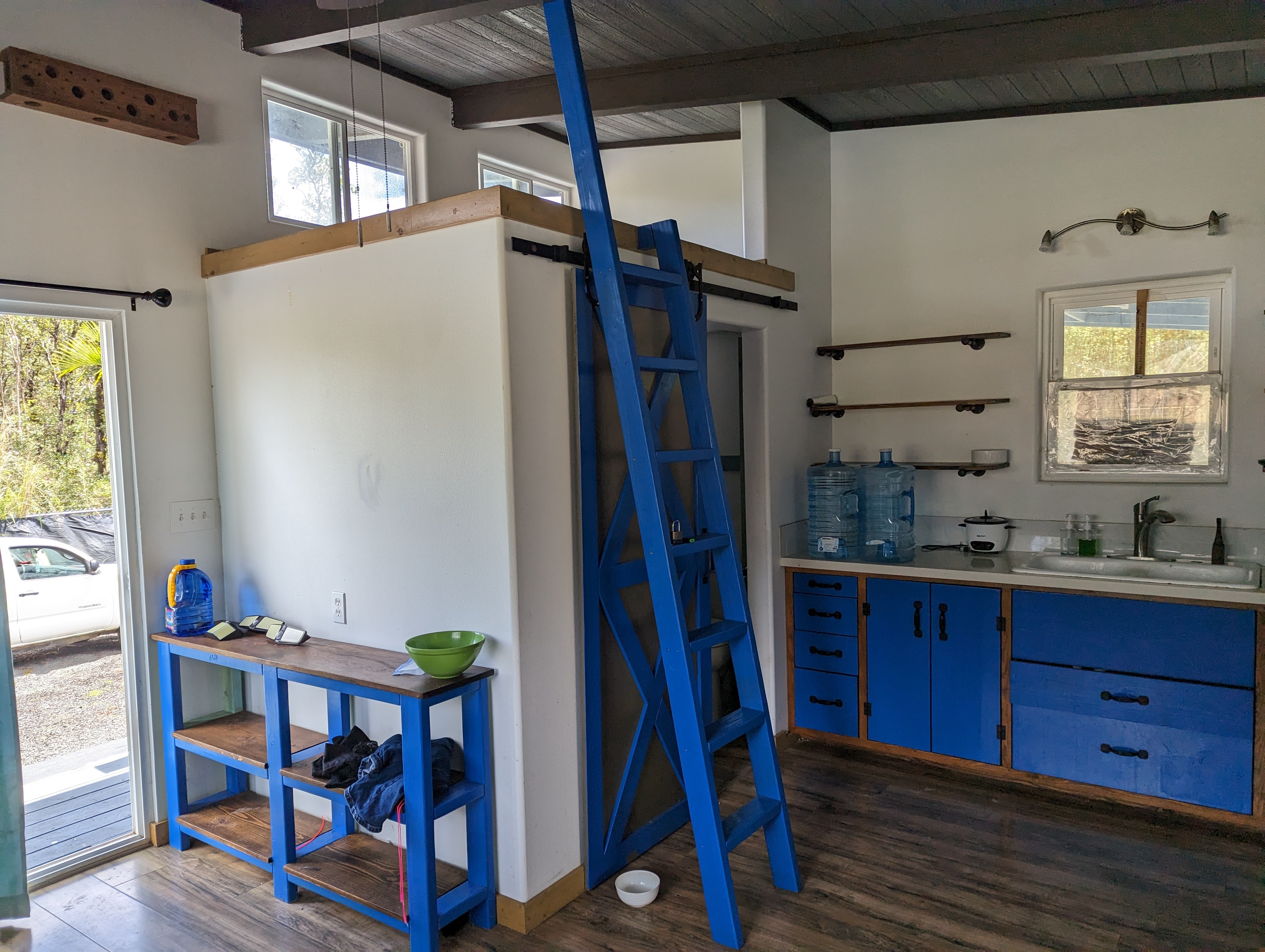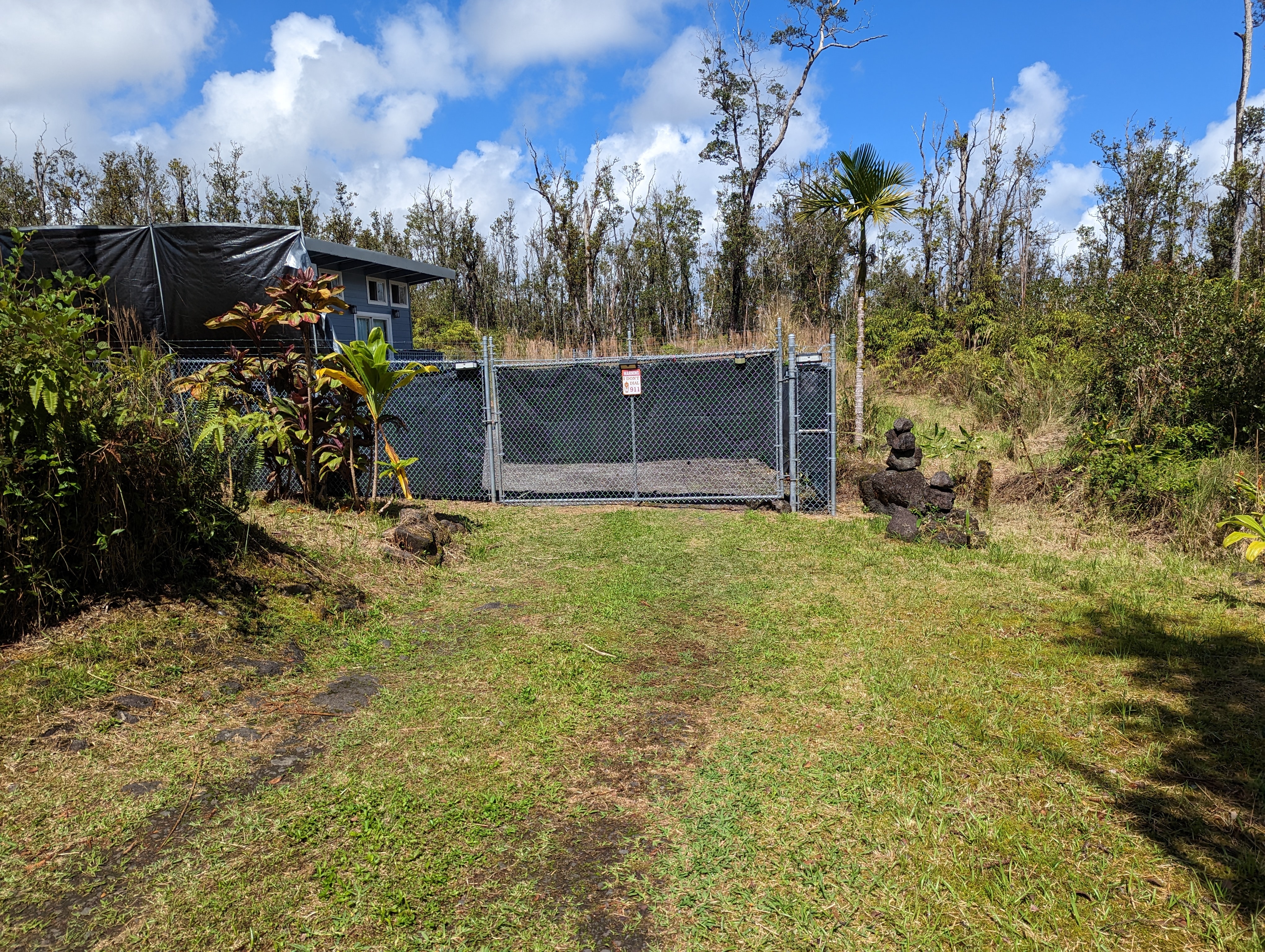 Well Built off grid tiny home with fenced in yard, great for kids and pets. Private driveway with 2 gates. 1 Bedroom, 1 bath, kitchen, living room and a loft for sleeping or storage. 2 car carport. There are (4) 100 watt solar panels with deep cycle batteries and a Xantrex inverter. Also a propane on demand hot water heater. and a water pump and catchment system. 3 acres of tropical paradise. Plenty of room for expansion. Very private location near the end of the road.