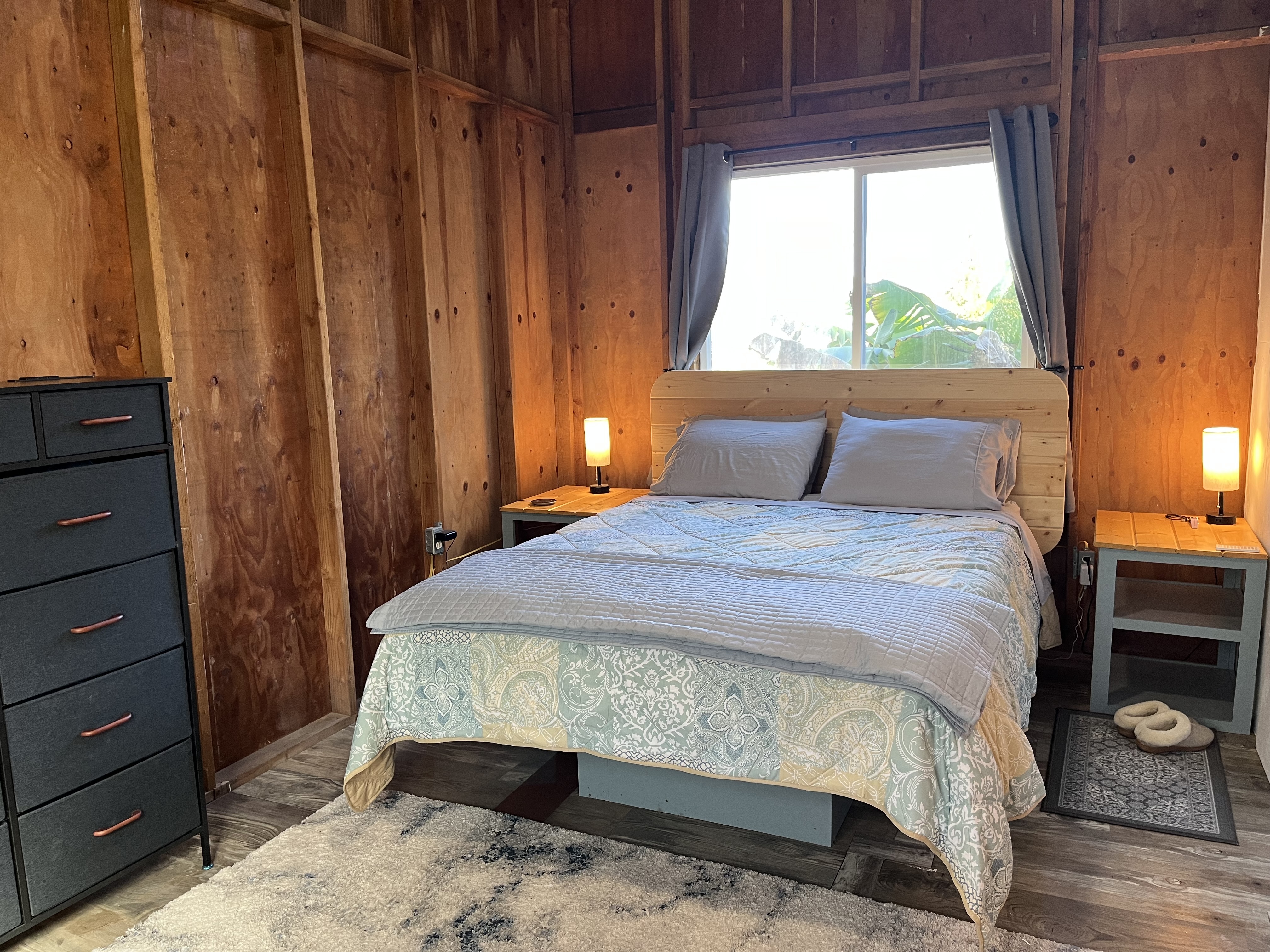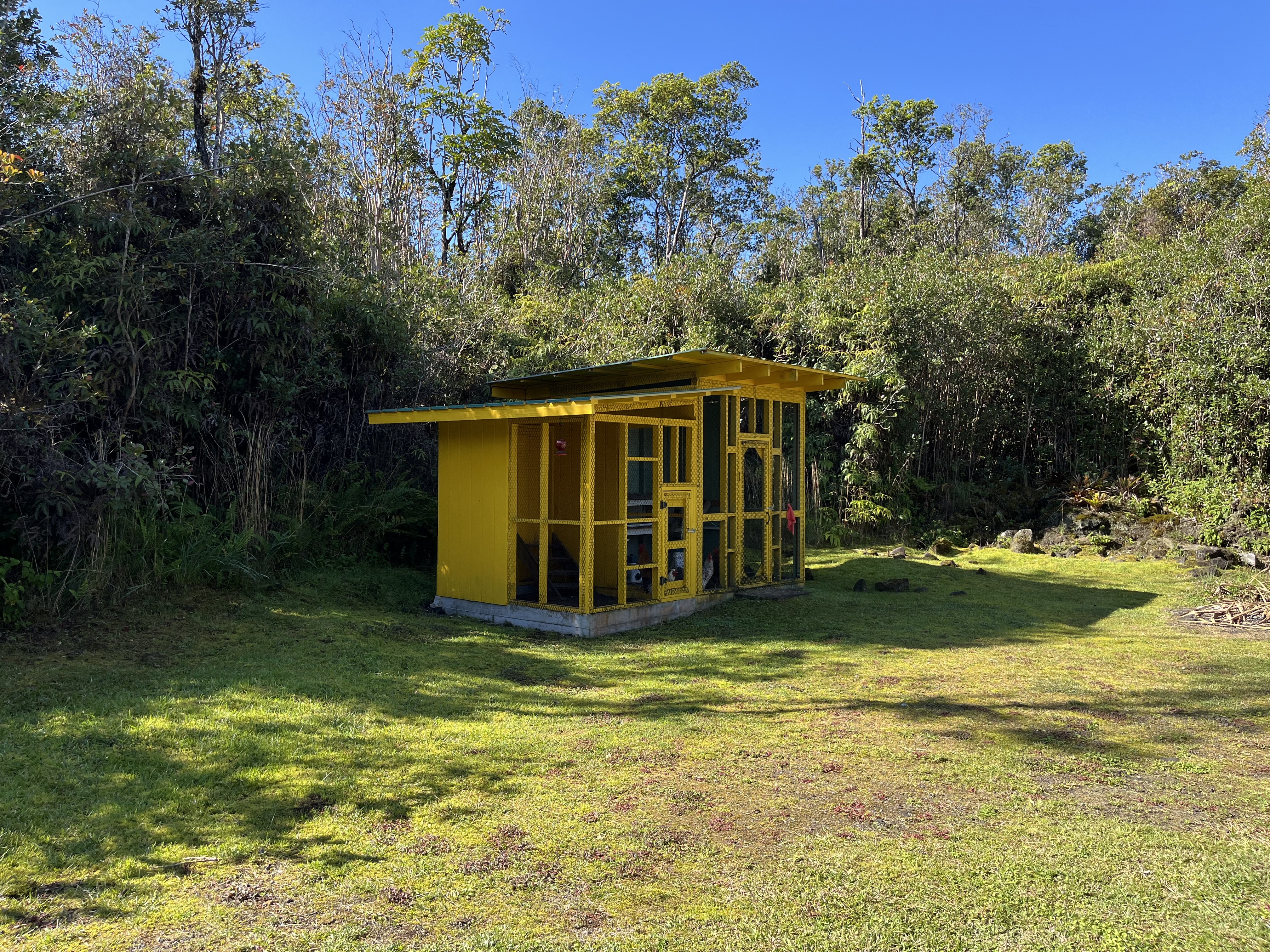 Dream of living off grid in Hawaii with Solar Panels, Batteries and your own 10,000 gallon brand new water catchment and propane on demand hot water on 3 beautiful acres. Fully Furnished and Move In Ready 2 BR/1 BA Home on Post & Pier. Home has been lovingly renovated with a beautiful new custom kitchen including custom made wood cabinets, new bathroom and new flooring throughout. The primary suite has an attached bathroom and walk in closet. Gorgeous covered spacious lanai for indoor/outdoor living. An installed solar gate leads to an arching long driveway perfect for privacy. In the back of the home is a large open field ready for an orchard. Established Landscaping includes Bananas, Golden & Black Sugarcane, Fig, Anthuriums, Bromeliads, Ohia Lehua & Strawberry Guava just to name a few. There is a huge painted chicken coop including roosters and installed raised beds perfect for homesteading. Enjoy the celestial views of the nighttime sky. Enjoy the deep country feeling while still being minutes from Mtn. View Bakery, Post Office, Gas Station & Convenience Store. Volcano National Park is also approx. 20 minutes away. Hilo is approx. 30 miles away. The Fern Forest Community is a growing neighborhood. visit FernForestCommunityAssociation.com for more information.