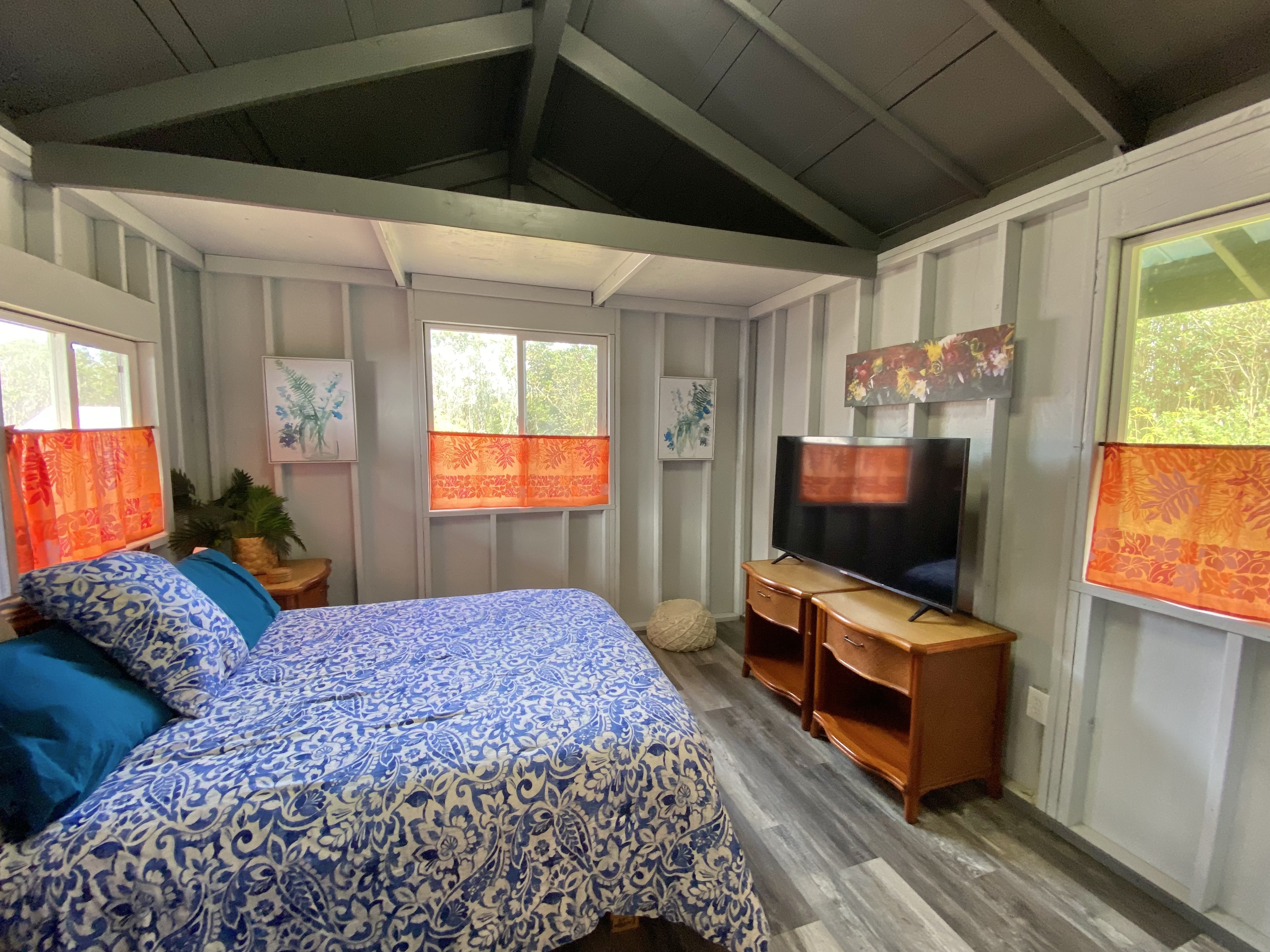 Rarely available beautiful turnkey off grid 3-acre property located at the very front of the Fern Forest Vacation Estates subdivision on paved Ala Kapena (no need to drive 15 minutes on unpaved roads to get home!). With a recently renovated cabin offering approximately 528 sq ft of living space, this cozy retreat features 2 comfortable bedrooms (each with its own half bath), an inviting entry/living area with a functional kitchen space, and a full bathroom (with separate shower). The home comes with its own new compact and sufficient solar system with panels and inverter; a complete water catchment system with water pump, pressure tank and filtration; and an efficient on demand propane water heater. Another bedroom was recently ingeniously built near the home, under a tent on top of a solid wooden platform, and tastefully furnished. This guest suite also boasts its own solar system for all its electrical needs. Nearby is a large nursery recently used to grow tomatoes and a very large tent cover in front of the house, ideal for parking or multiple projects. There is an incredible cave entrance in the back of the property with lava tubes! Most of the 3 acres is forest with ohia trees, ferns, and orchids, with several mature fruit trees (citrus, avocado).The property front entrance is landscaped, with an entry gate and fencing for added privacy, and a winding road, surrounded by lush vegetation, accessing the house. Should you need to connect to the grid, electricity is available through Hawaiian Electric Special Subdivision Project Provision (SSPP), with an estimated fee of $2,844. Fern Forest Volcano Estates is located higher up the mountain with cooler temperatures, between quaint Volcano and convenient Keaau. For complete subdivision details and documents, visit htttps://fernforestcommunityassociation.com.