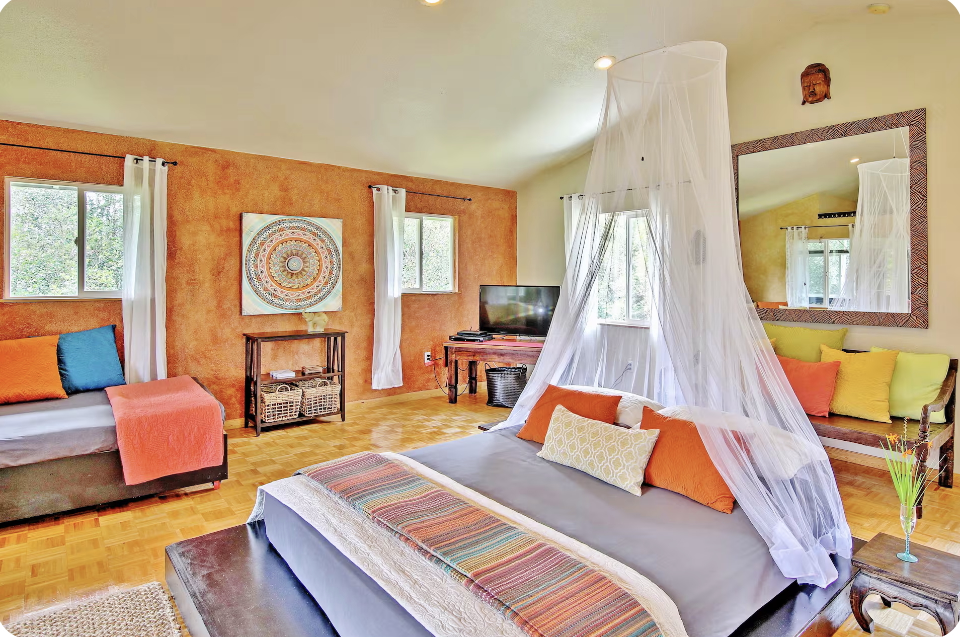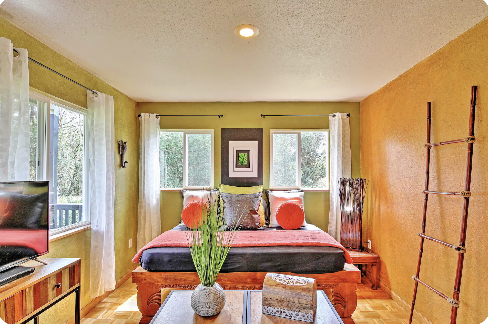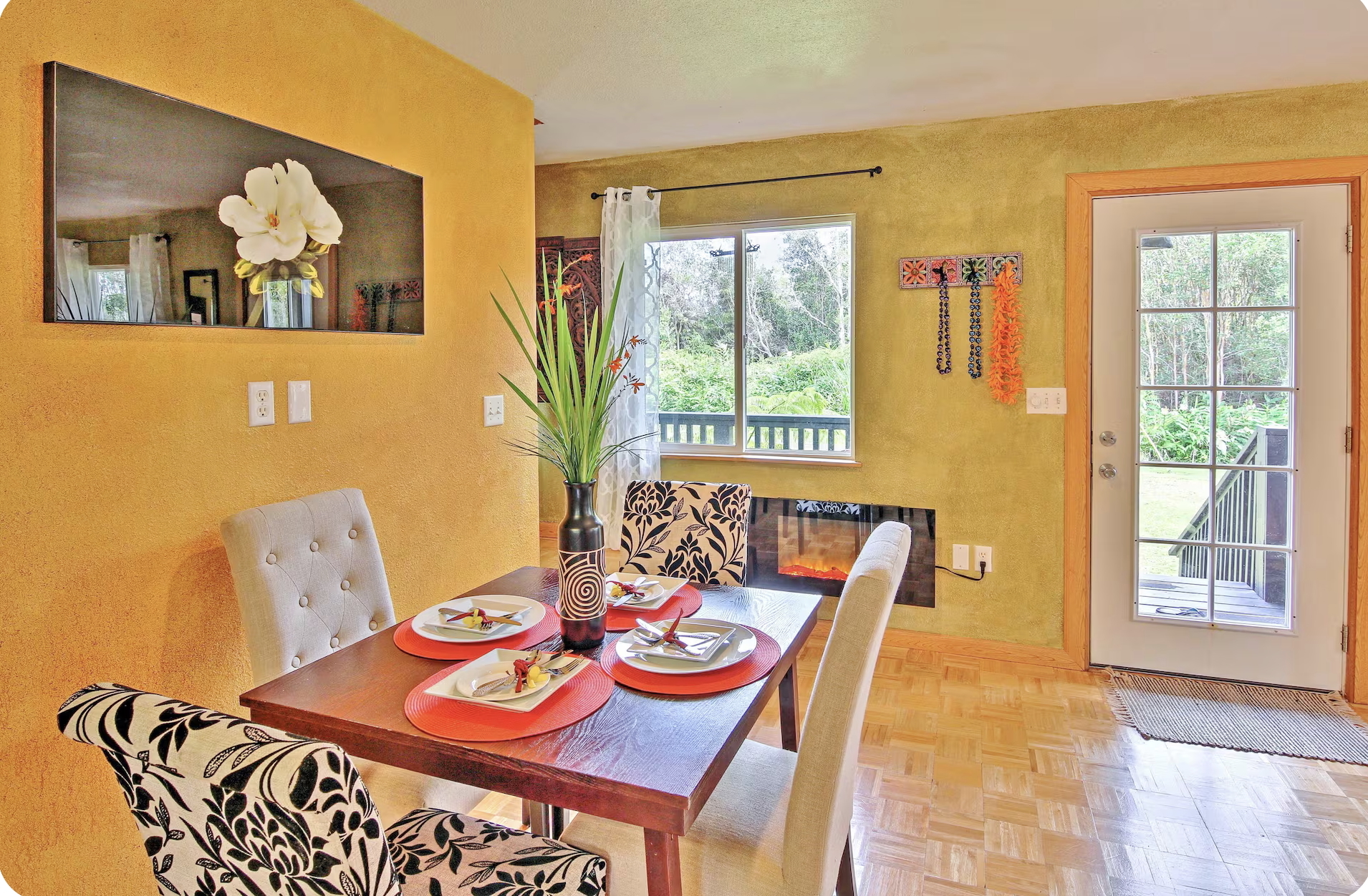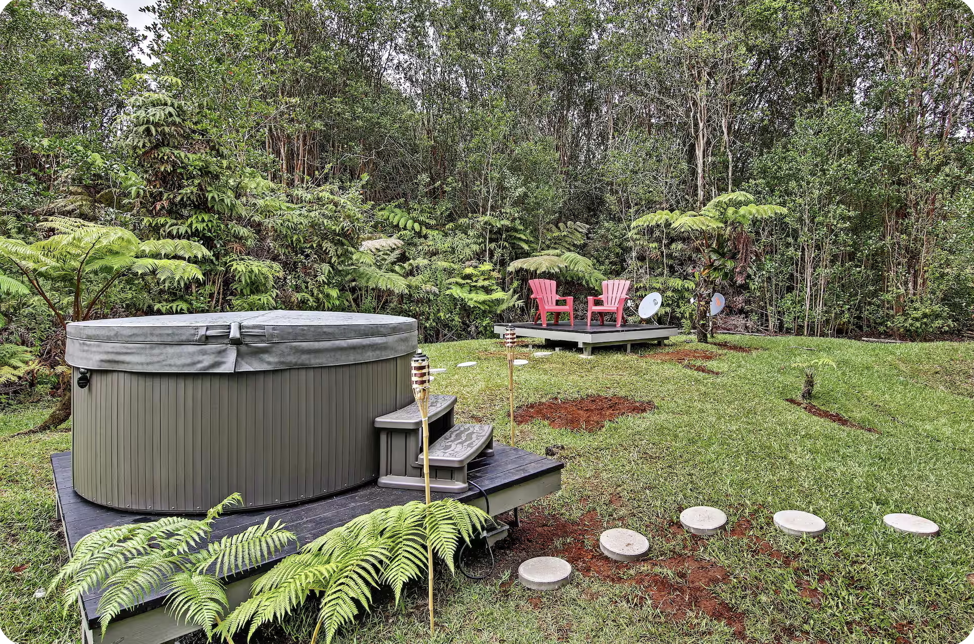 *Fully Transferrable STVR Permit *$70K gross revenue annually *95% occupancy year round A guest favorite and one of the most loved homes on Airbnb, this secluded rainforest retreat in Volcano offers a rare opportunity to own a legal, established short-term rental with proven income potential and future business already booked! Tucked away on a private road & surrounded by lush jungle, the home features 360° rainforest views & unmatched privacy, while still being just minutes to Volcano Village, Volcanoes National Park, & a short drive to Hilo. This beautifully designed home showcases Bali-inspired finishes, bamboo flooring, & a fully equipped kitchen w/stainless steel appliances. The spacious layout includes a primary suite with king bed, additional sleeping areas, and a bright, airy living space filled with natural light & tropical breezes. Enjoy indoor-outdoor living w/a screened lanai, front porch, & private upstairs lanai with hammock, perfect for relaxing in nature. After a day of exploring, unwind in your private hot tub surrounded by the rainforest. Turnkey & ready to operate–this is the lowest priced Permitted Vacation rental home on the market on the Big Island now