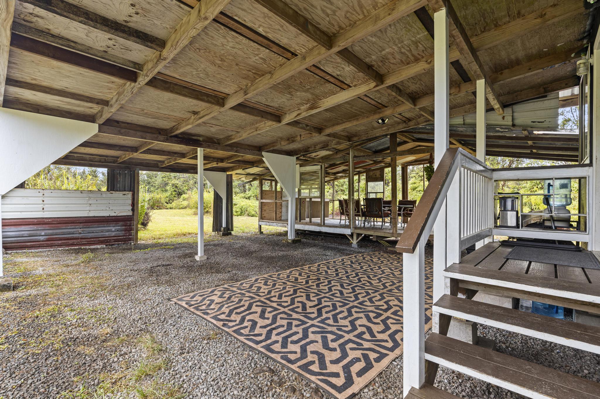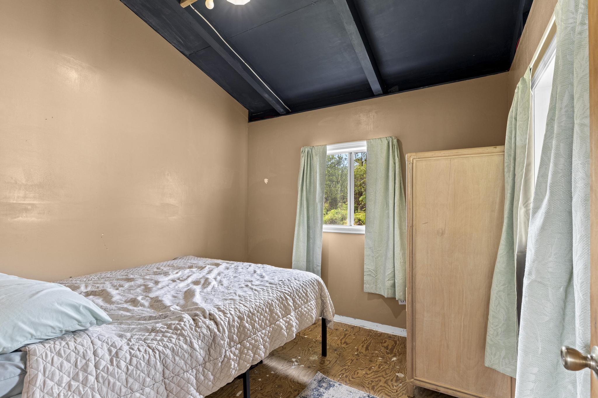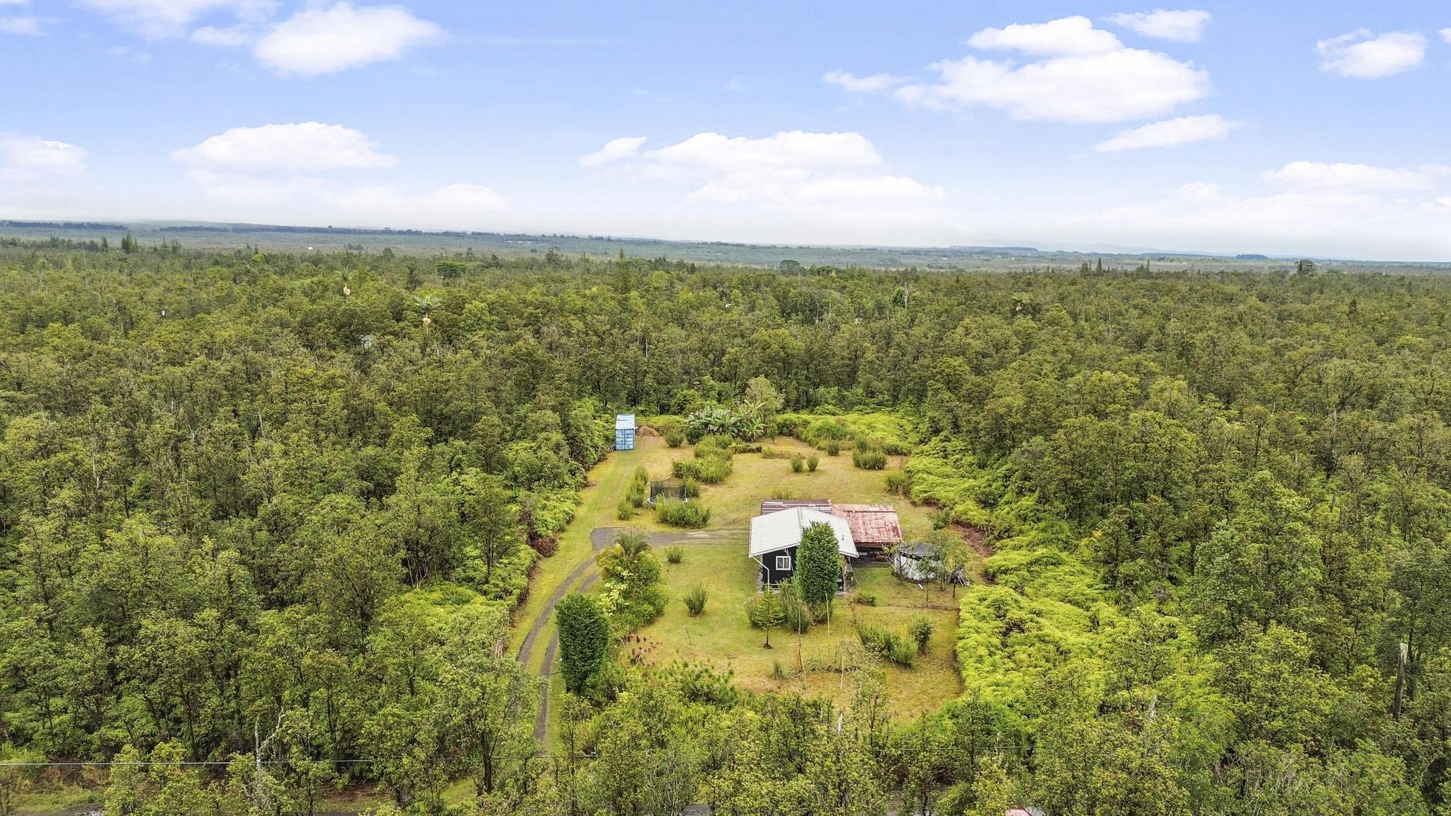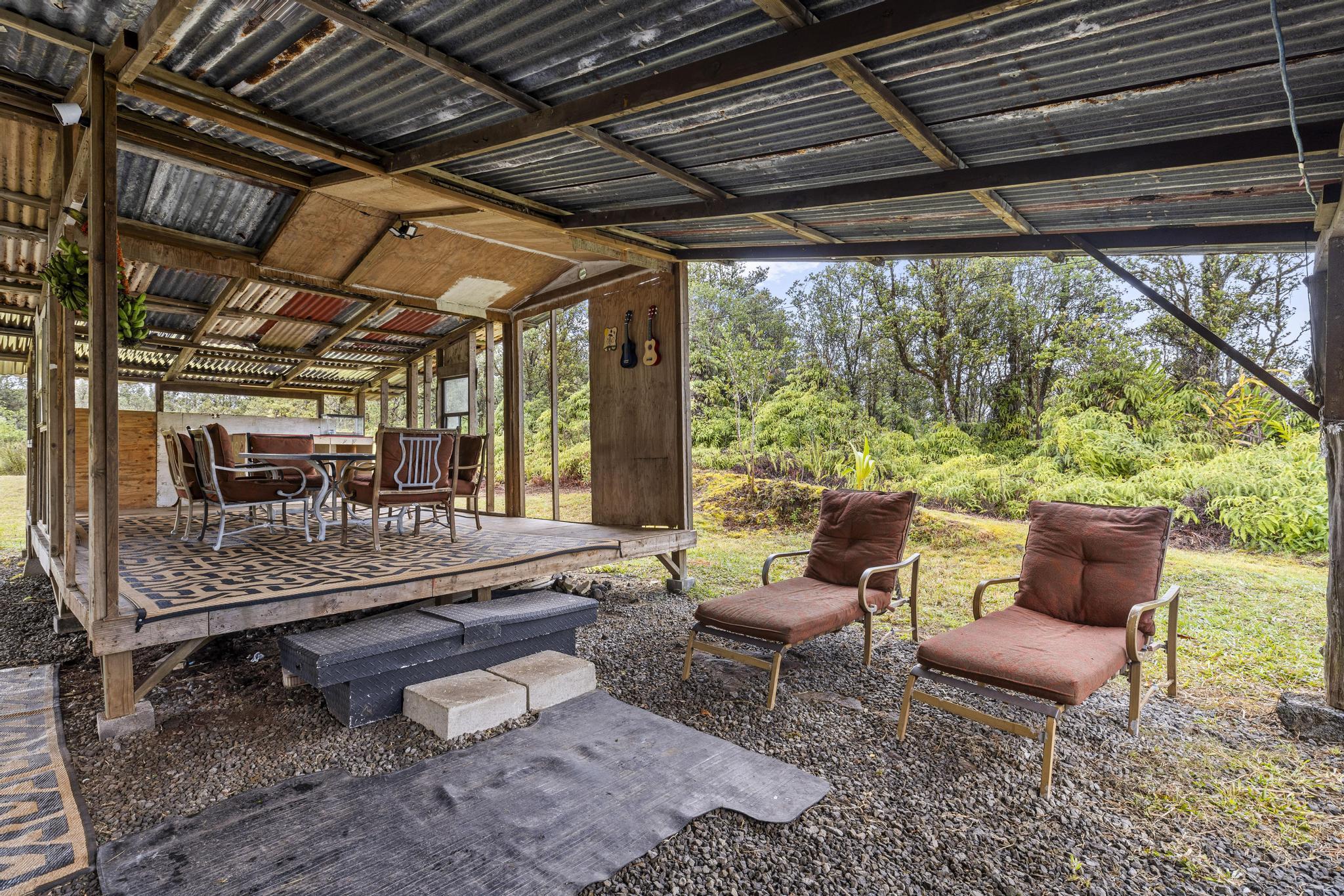 Once a blank canvas, this 2 bedroom, 1 bath off-grid home in Eden Roc Estates has been carefully reimagined into a welcoming retreat. Built for comfort and sustainability, the property features solar PV panels, a generator, and a newly installed catchment tank. Outdoor living is easy with an additional 450 sq ft of open lanai space and a 650+ sq ft covered carport, while a 40 foot storage container ensures plenty of room for organization. The property also comes with 2 brand new PV panels, ready for future connection, and the lush acre is home to an array of fruiting plants, including bananas, mangoes, avocado, lilikoi, and more. Sold as-is, this property is ready for you to make it your own!