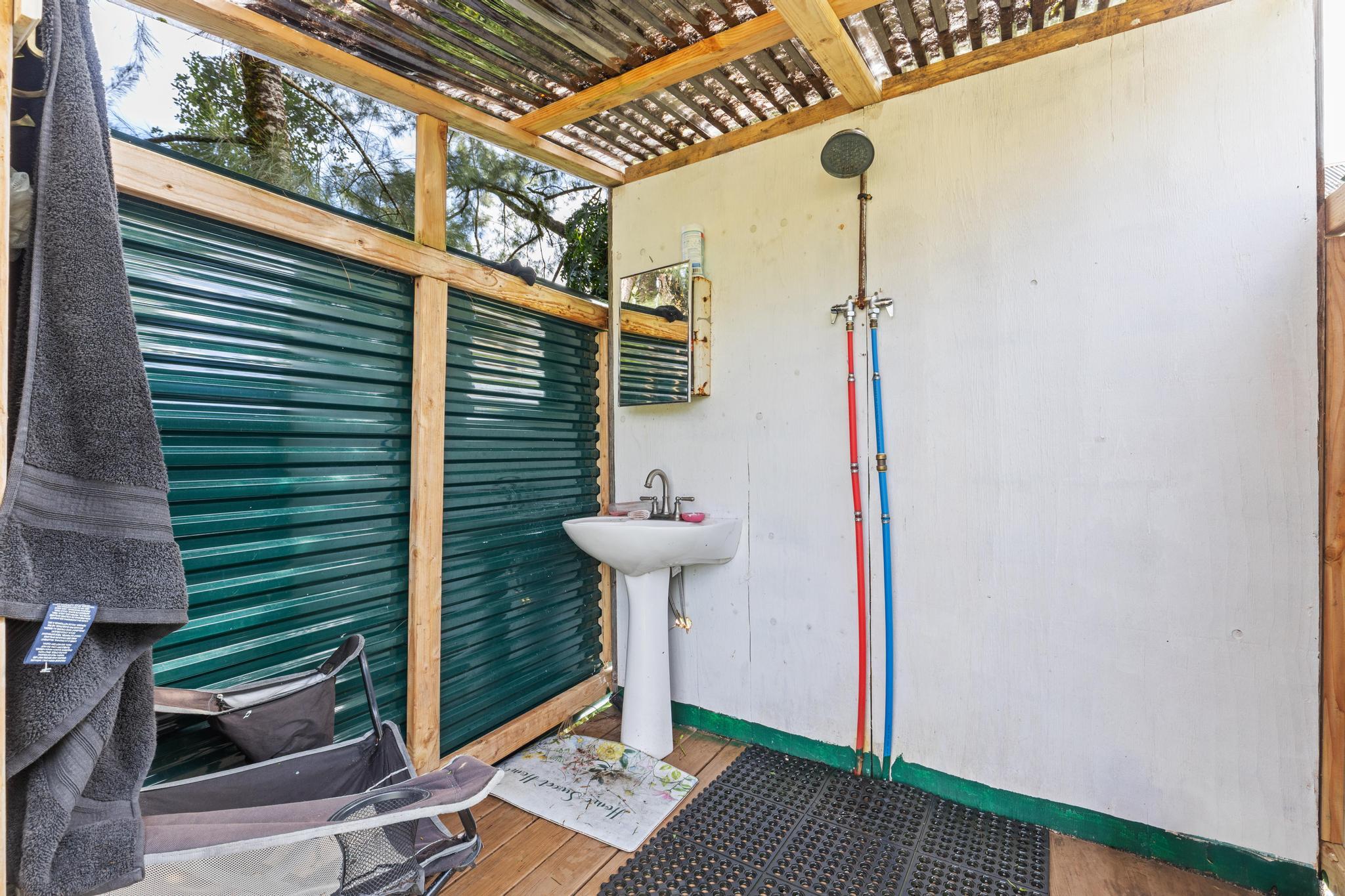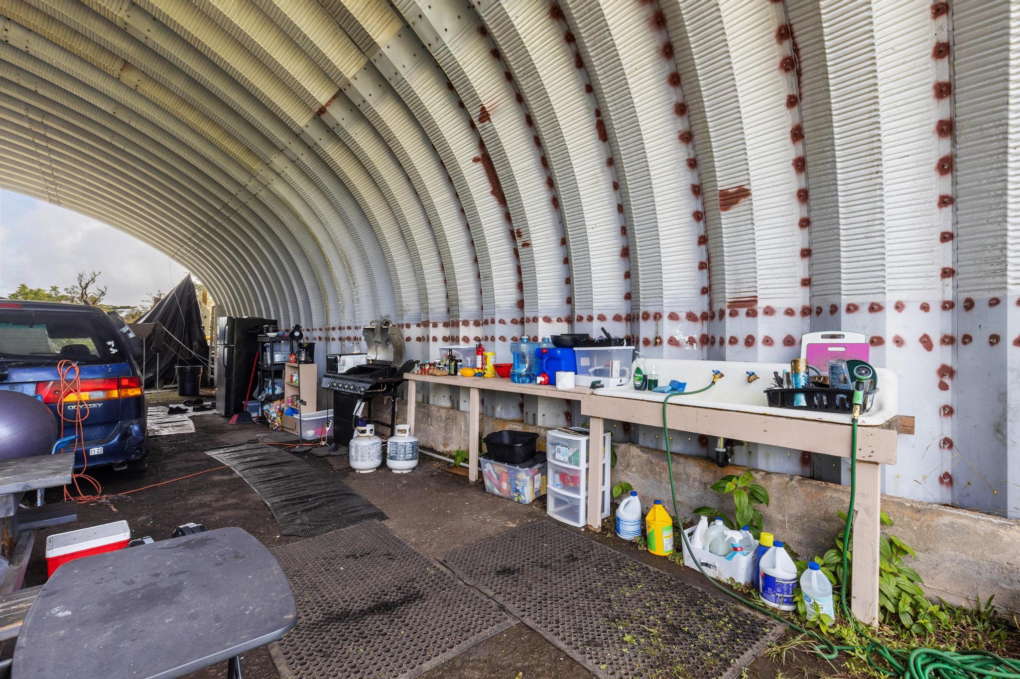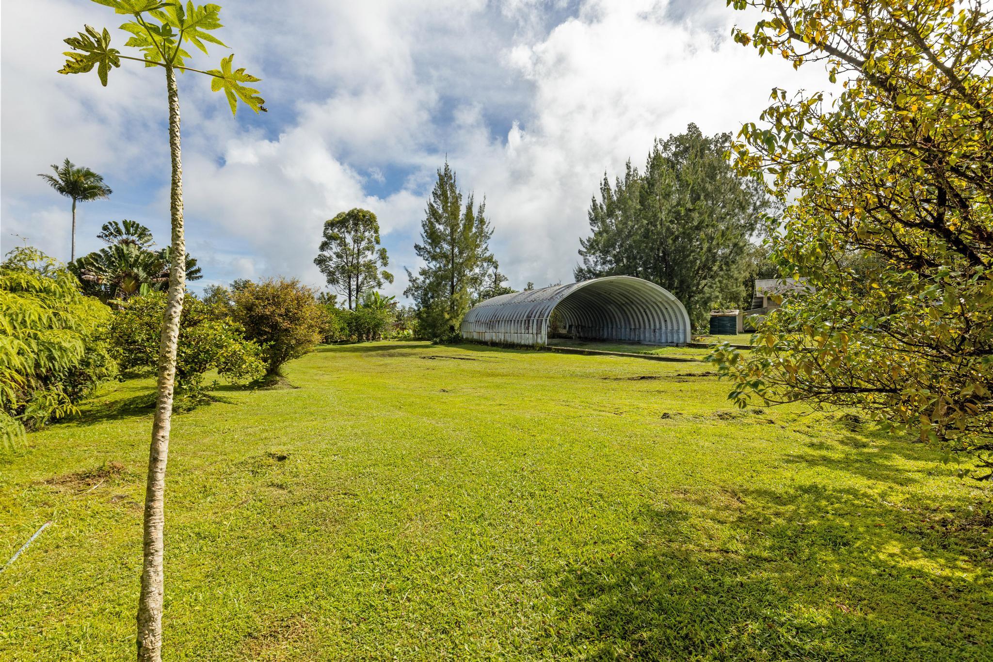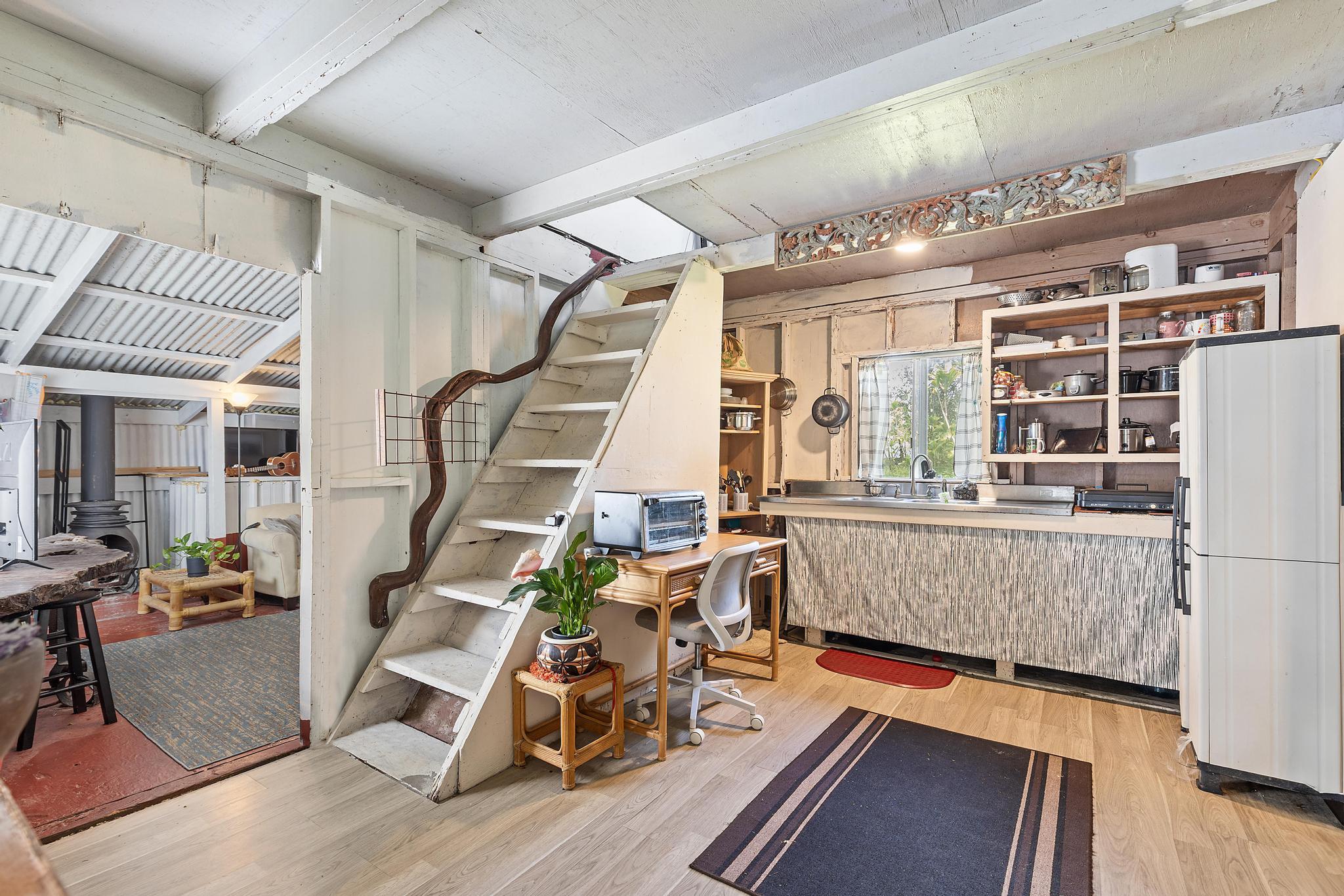 This East Hawai‘i property offers privacy, space, and a self-sufficient layout on an approximately square-shaped 2-acre parcel formed by consolidating two one-acre lots. The land is fenced with 2 Gates and features mature fruit trees, tropical plantings, and natural greenery. A natural tree buffer provides separation from the road. Underground power is in place and connects to an approximately 60-foot Quonset workshop. High-speed fiber internet is available. The main cabin includes two approx 500-gallon poly water catchment tanks, a full bathroom, propane on-demand hot water with a backup heater, one bedroom on the main level, and a loft-style bedroom upstairs. Three additional cabin sheds and 3 outdoor common bathroom setups are located on the property, along with an additional larger water catchment tank. An outdoor kitchenette is positioned in the Quonset hut as a shared common area for the cabin sheds. The landscaping includes a wide variety of producing fruit trees and ornamentals, such as bananas, star apple, ice cream bean, allspice, mountain apple, avocados, jaboticaba, tangerines, Tahitian lime, Meyer lemon, oranges, guava, coffee, Surinam cherry, Brazilian cherry, palms, anthuriums, torch ginger, heliconia, and more. This property offers a private setting with multiple structures, mature plantings, and the convenience of available high-speed internet. 11-1860 Mahina St, Mountain View HI 96771 ~ MLS 725924