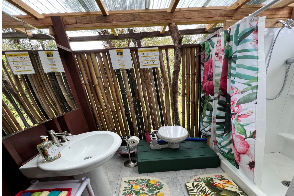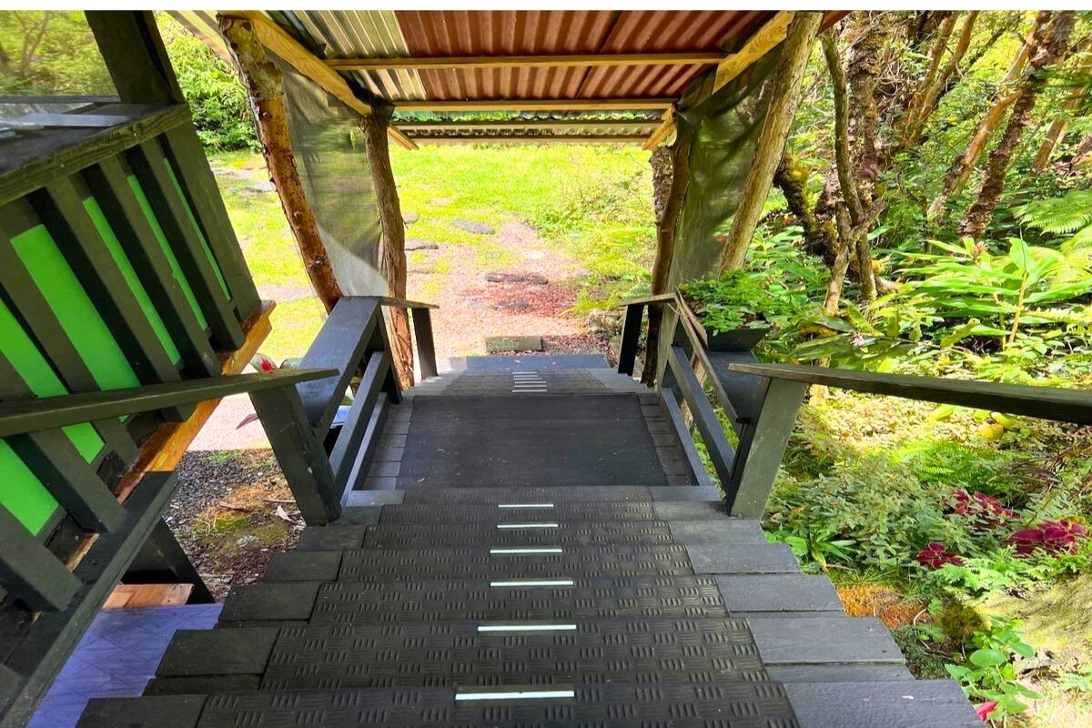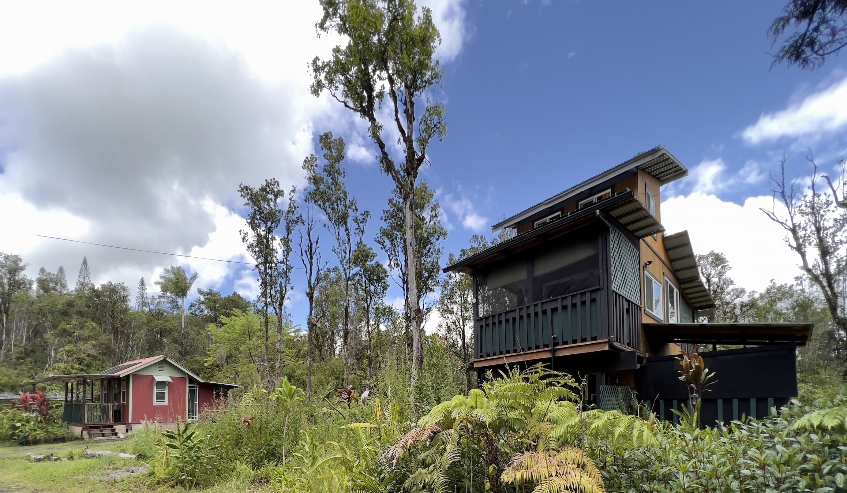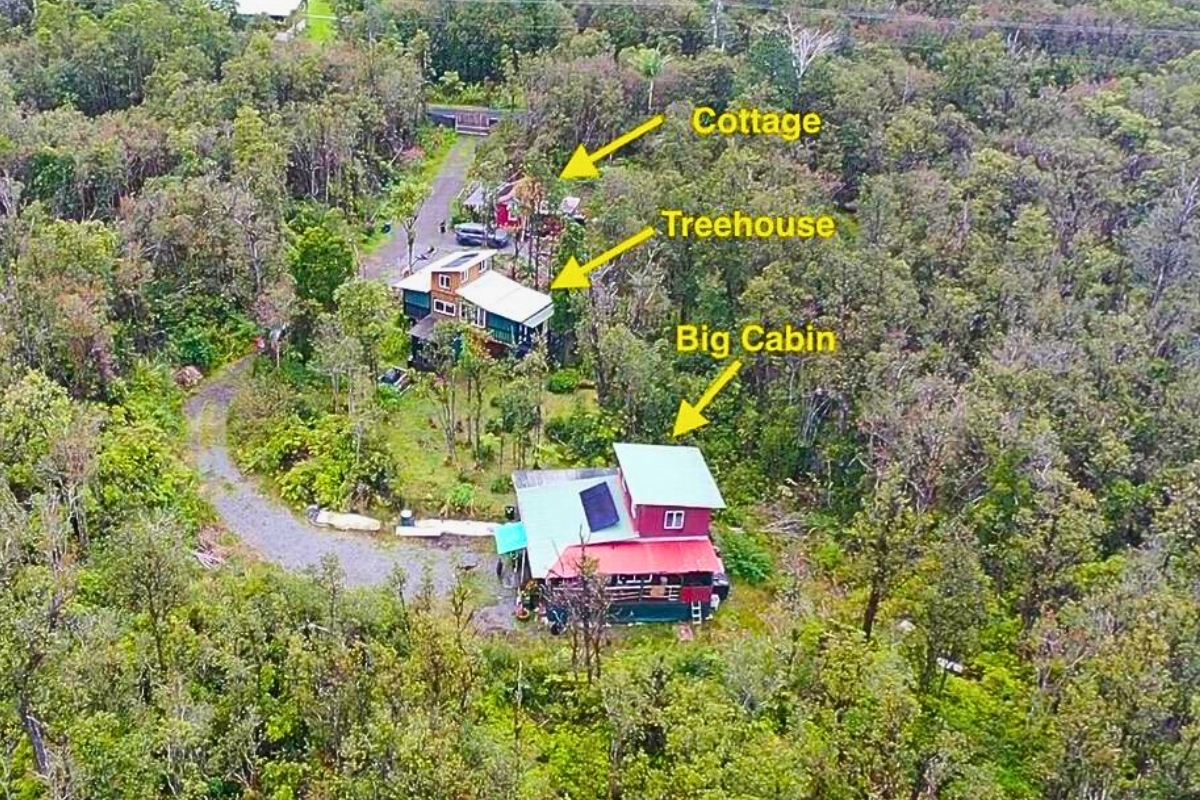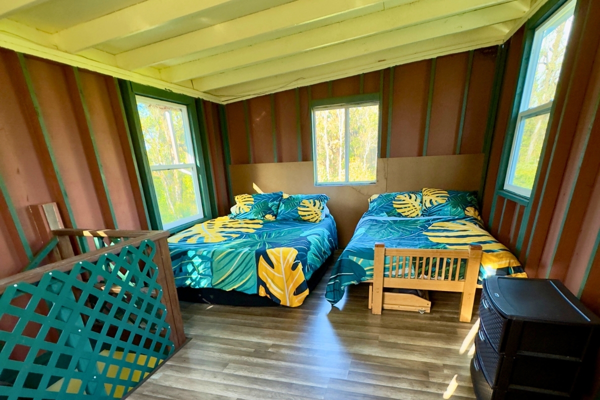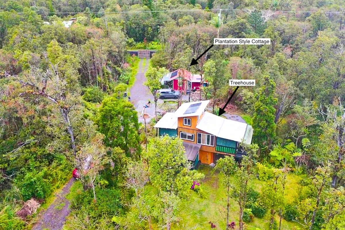 Cabin 2-Multi-Level Treehouse (updated 2019): A guest favorite with a bedroom, flexible loft space, two showers, full kitchen, utility storage, and lanai–ideal for visitors or rental use.