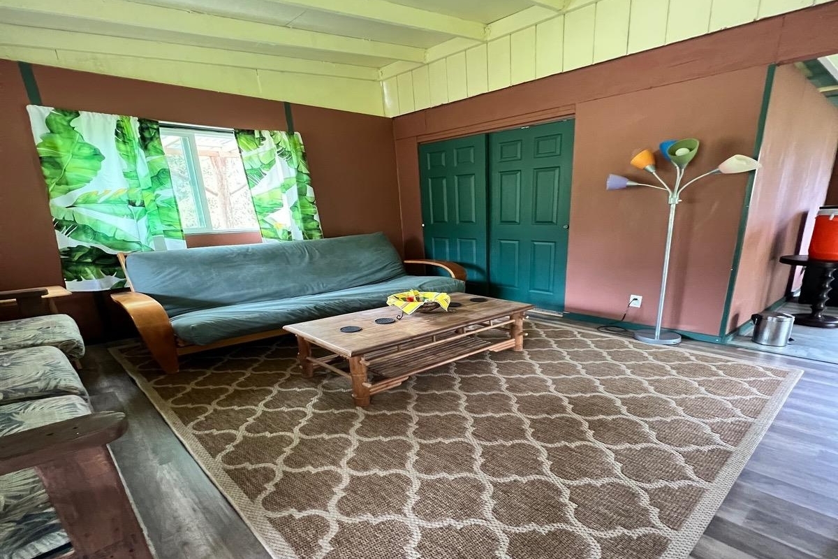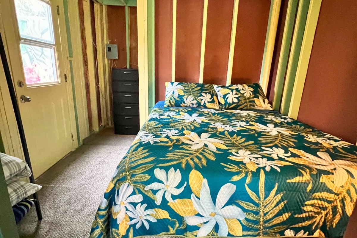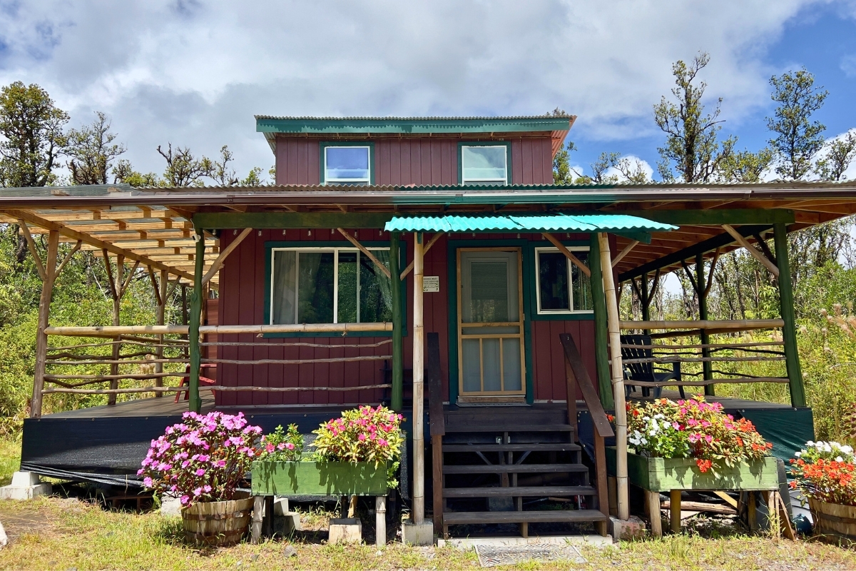 Cabin 1-Plantation-Style Cottage (2020): Bright and inviting with high ceilings, covered lanai, and two entrances, including direct kitchen access–perfect as a full-time residence or caretaker suite.
