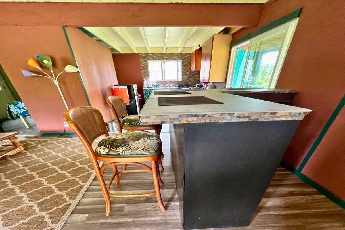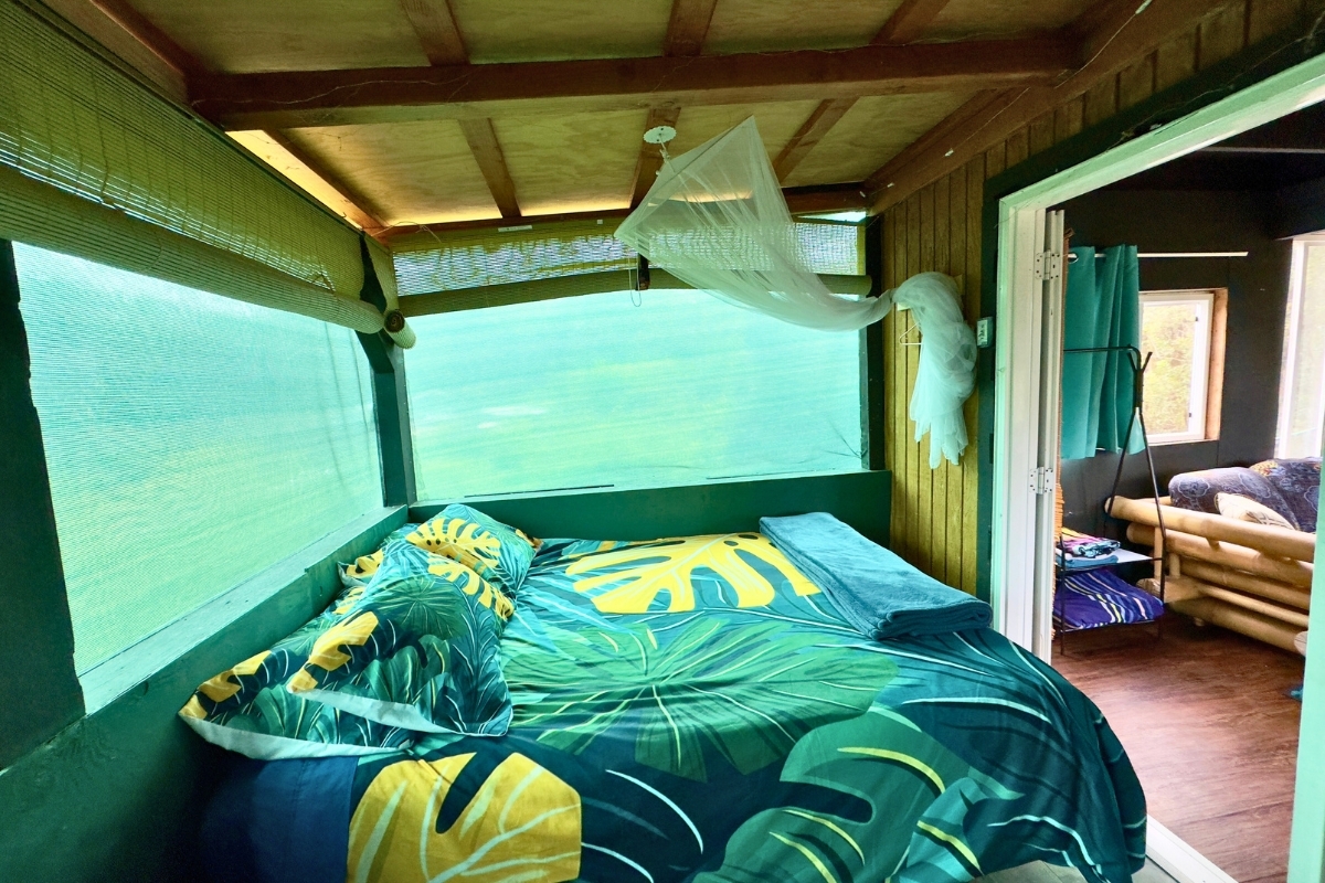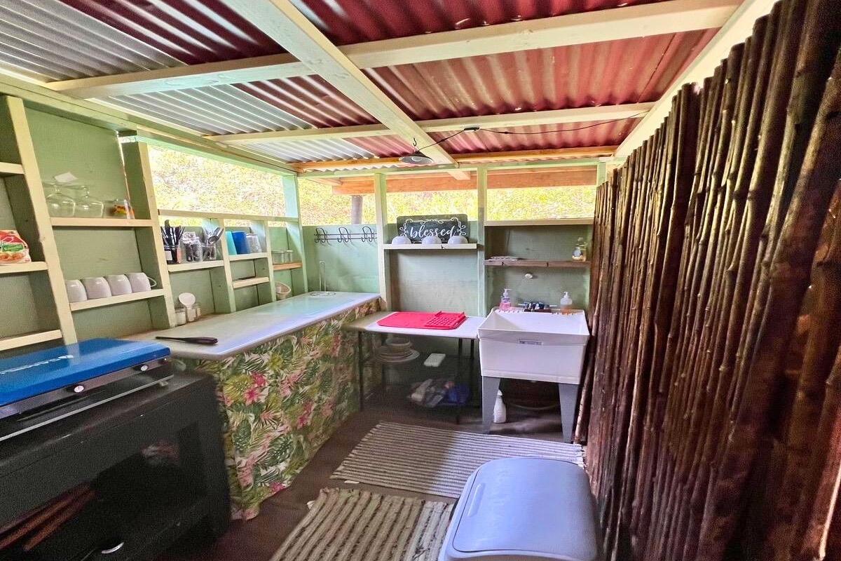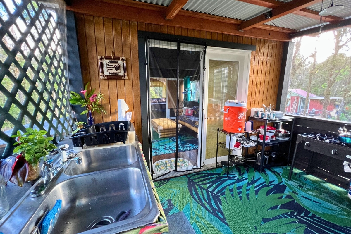 Cabin 1-Plantation-Style Cottage (2020): Bright and inviting with high ceilings, covered lanai, and two entrances, including direct kitchen access–perfect as a full-time residence or caretaker suite.