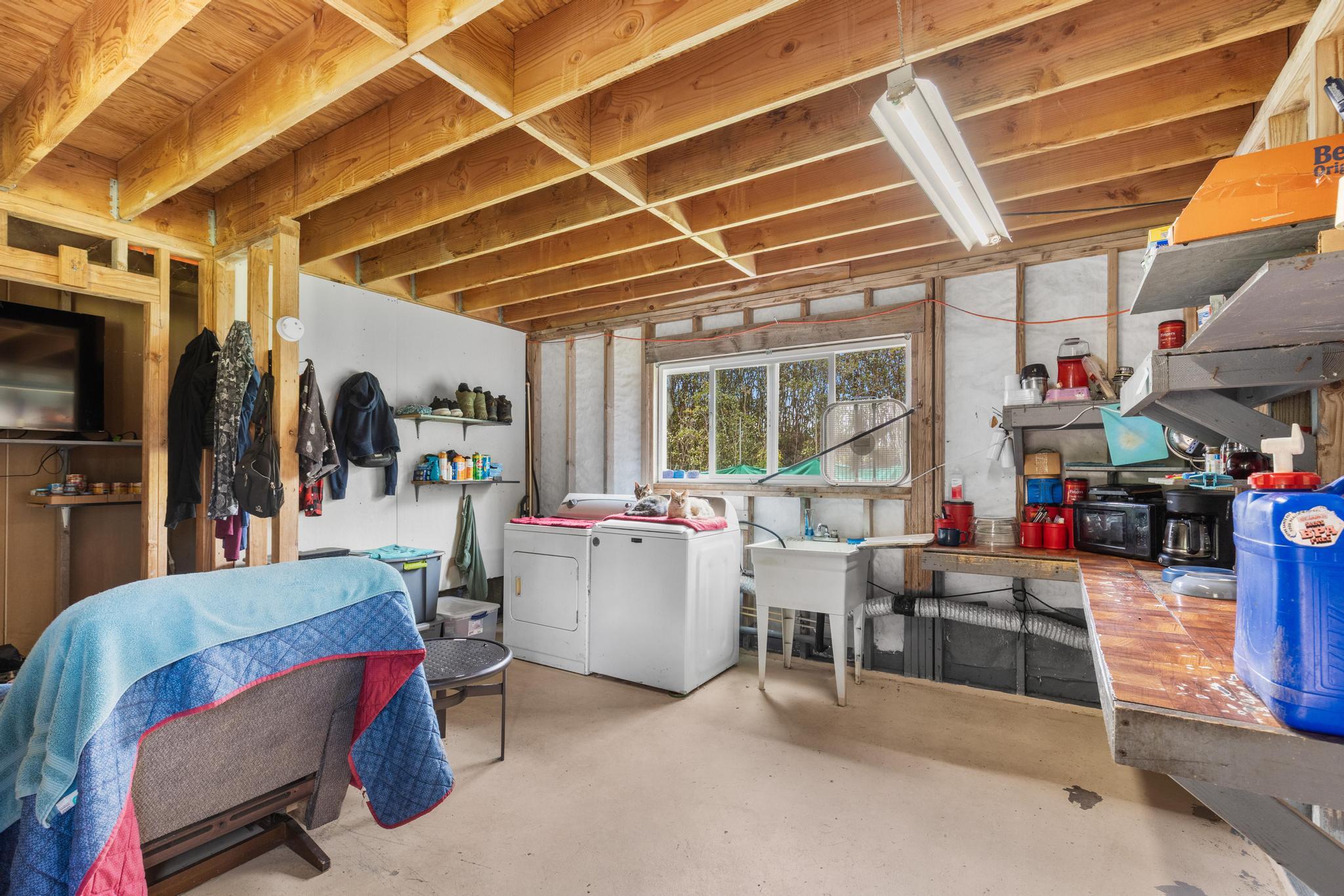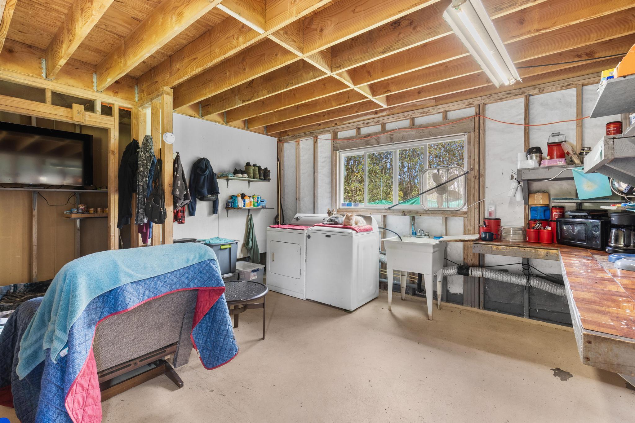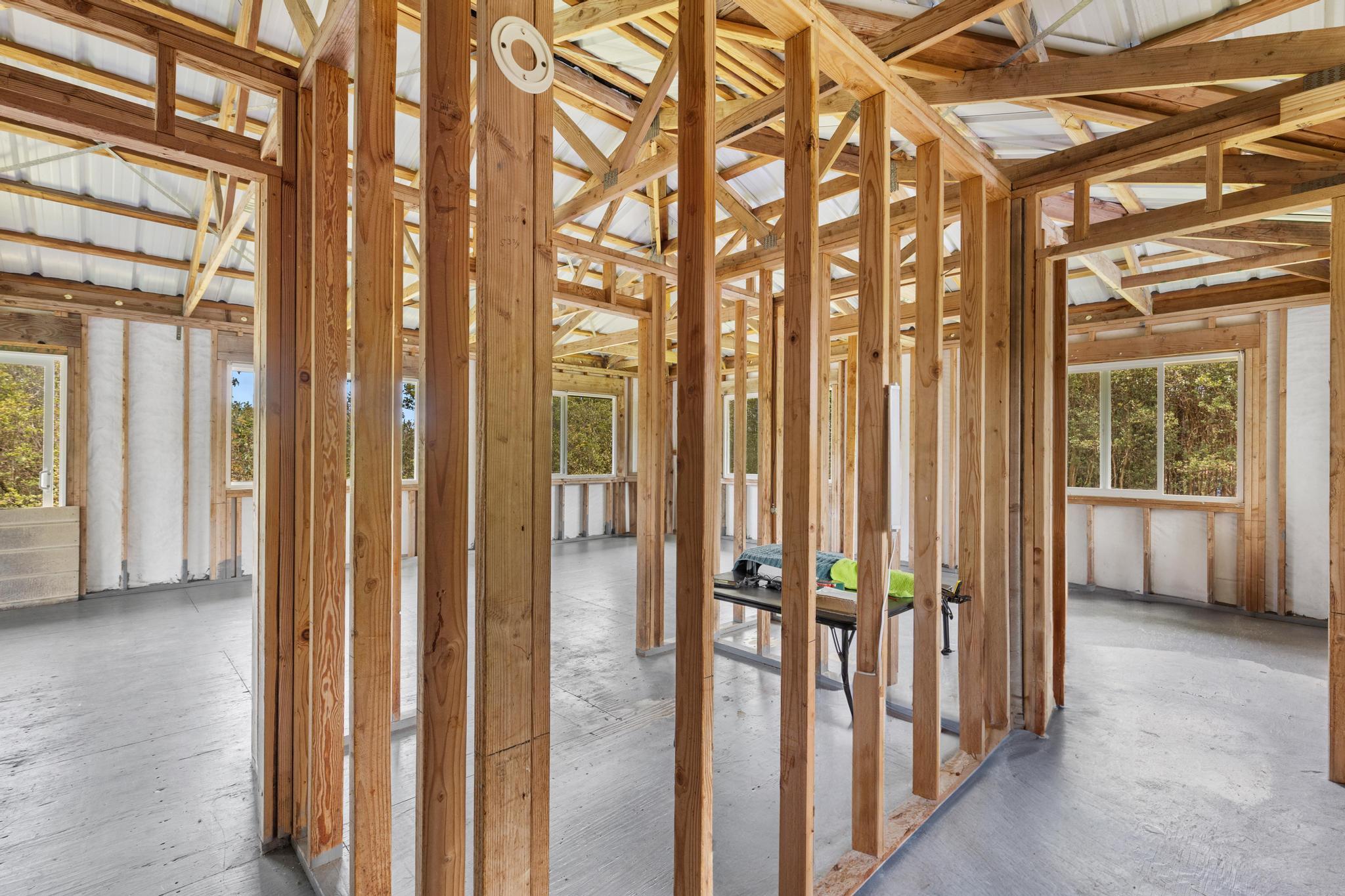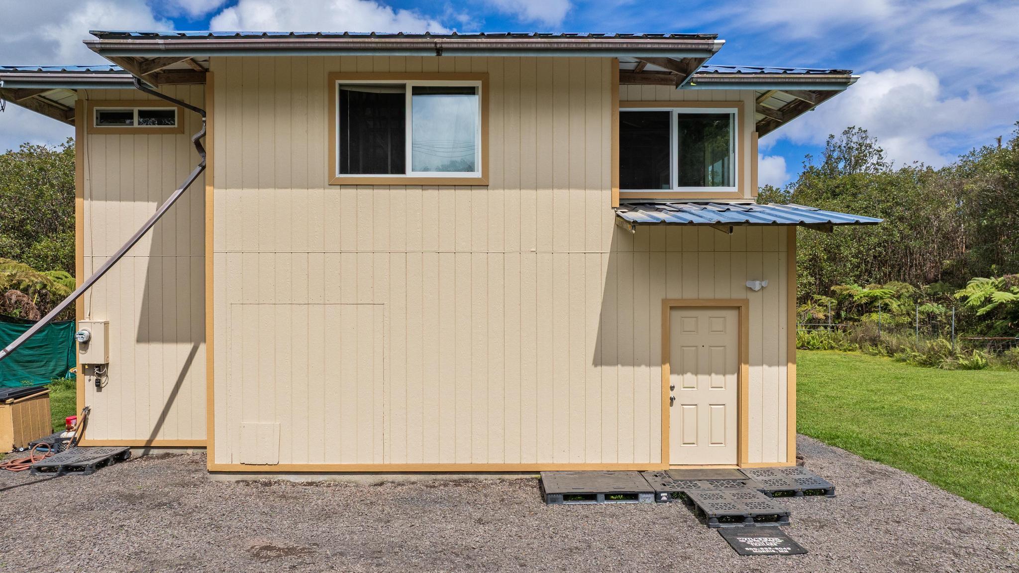 Opportunity awaits with this diamond in the rough located on paved Ohia Avenue in the Eden Roc Estates subdivision. The property features a cleared and fully fenced grassy yard with a front gate, creating a private and pet friendly space perfect for enjoying the outdoors. Construction was previously started with permits that expired in 2022. Existing plans are available and the new owner will need to obtain updated permits through the County to continue the project. The home is connected to HELCO electric, through the interiors electrical wiring has not yet been installed. The lower level includes a functioning bathroom laundry area and kitchen area, with drain lines already installed in the concrete floor. This level offers an additional 832 square feet of unfinished living space ready for customization. The second floor is currently framed with open studs, offering a blank canvas to finish the space as designed or modify the layout to suit your vision. Two sliding doors open from the large upstairs room, planned for access to a future wrap around lanai. With its fenced yard, spacious layout potential and available plans for completion, this property presents a unique opportunity to finish and personalize a home in a peaceful setting. Plans for the completed project will be provided to the new owner.