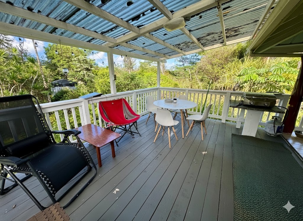 The residence features a comfortable 2-bedroom, 2-bath layout designed for island living. Enjoy the self-sufficiency of water catchment and the tranquility of the rainforest. whether you are looking to create a sustainable homestead or a private retreat, this Kurtistown gem offers the space and location to make it happen. Enjoy your coffee on the mountain view deck outside your master bedroom and the efficent 2/2 home. Views of the forest and flowering landscape as well. Fresh exterior paint, clean and bright, tiled bathrooms AND a permitted cabin!
