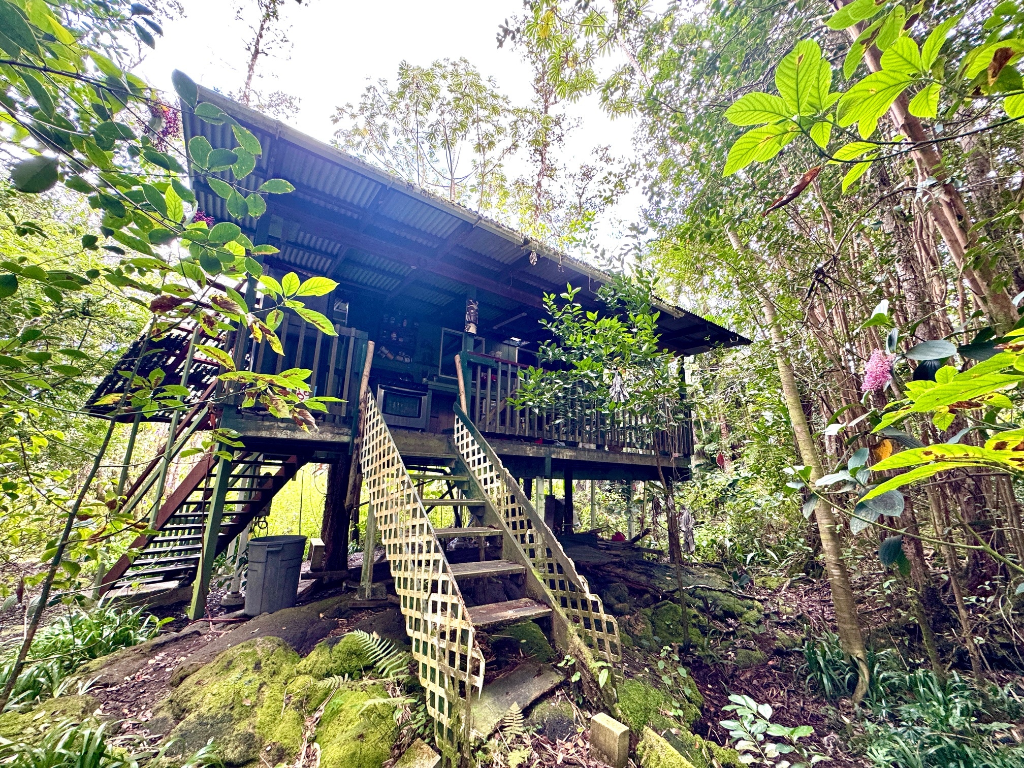 Tucked away from all the hustle and bustle, this cabin in the trees provides the perfect retreat for off-grid living, or a great head start to build you Hawaii dream home. Located near the end of dead end Pulelehua Road(RD 11), accessed by recently improved D Road, your drive to and from the highway is as smooth as it gets. This lush parcel has been hand cleared to leave the natural jungle beauty intact, and includes a storage shed, covered dog pen, outhouse/storage structure, and an enclosed area for the solar setup. Don't miss out on this opportunity to own your piece of paradise.
