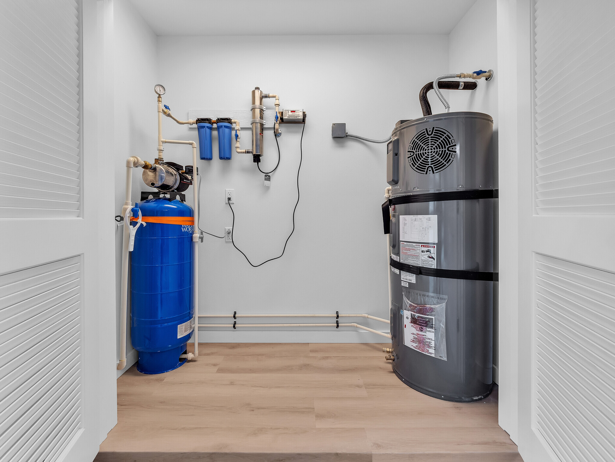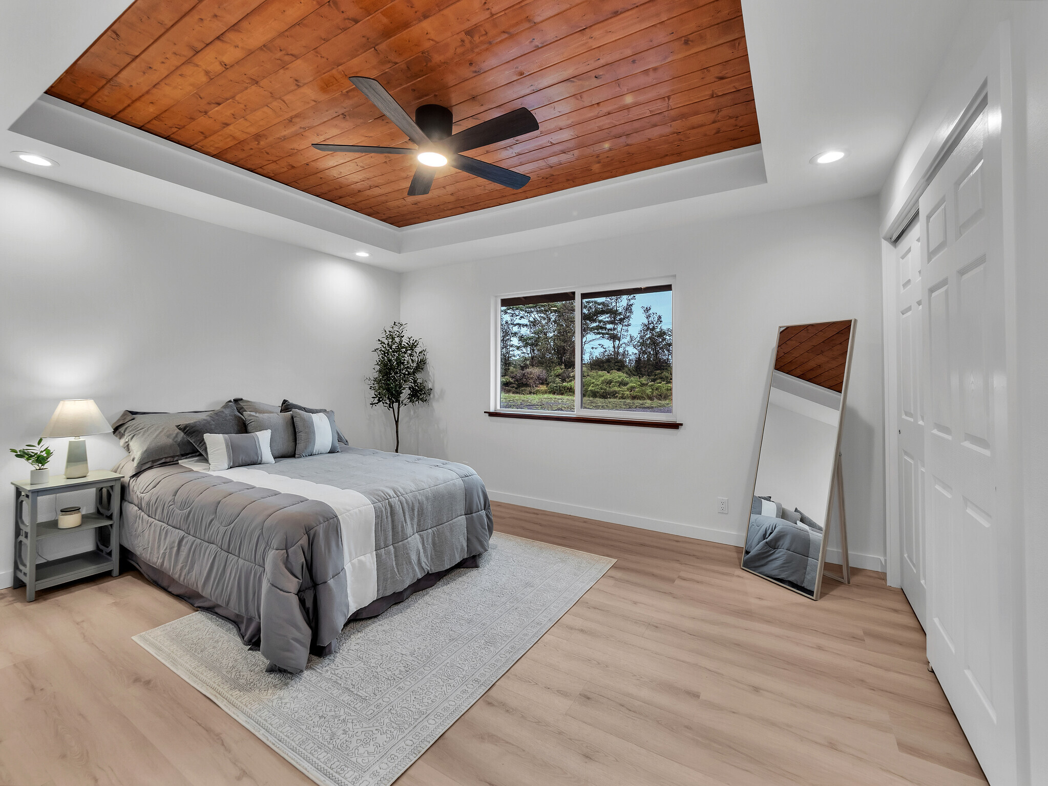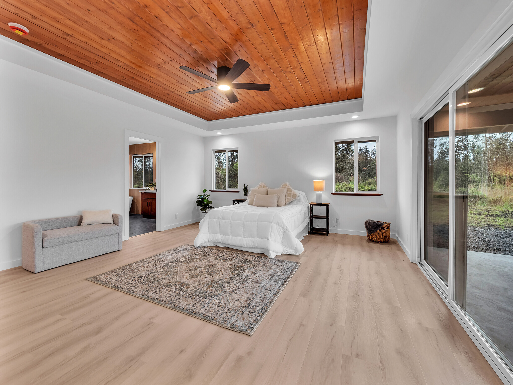 The spacious primary bedroom has its own custom outfitted closet and an ensuite bathroom. Offering both a soaker tub & a separate shower, this bathroom will have you feeling like you left the spa. The primary bedroom also has private access to the outdoor back lanai.