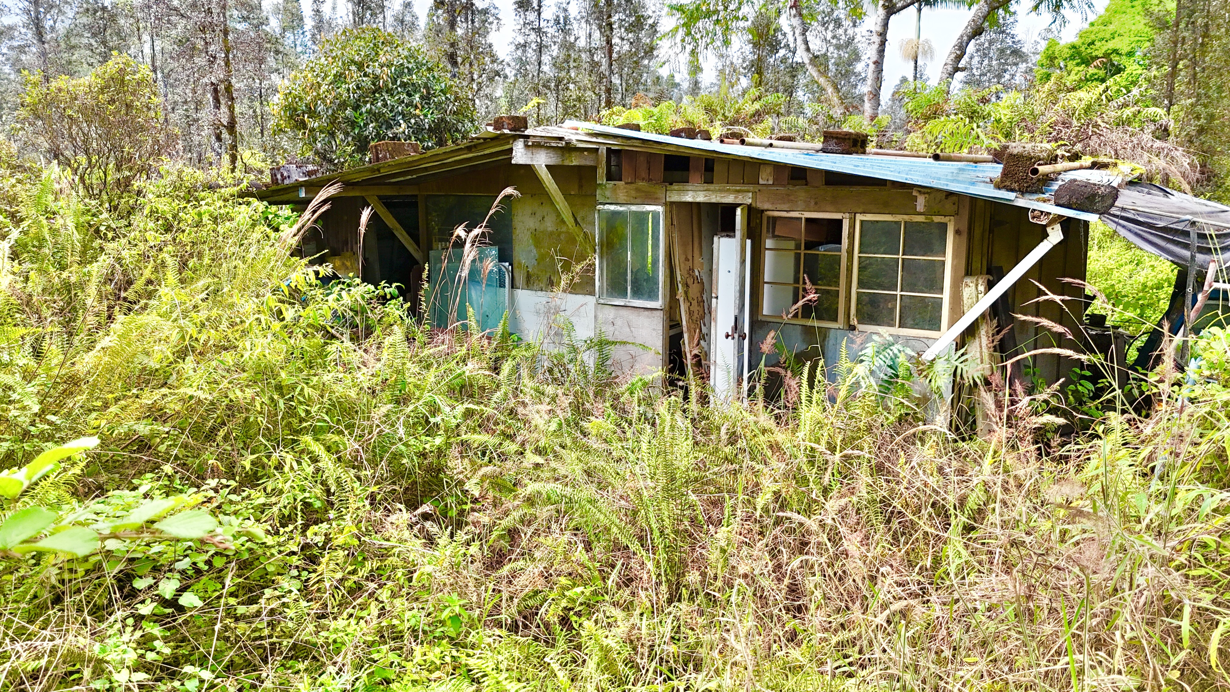Off-Grid Sanctuary & Permaculture Opportunity in Hawaiian Acres This once much loved secluded homestead in the uplands of Hawaiian Acres, Mountain View–where privacy, fertile land, and intentional living come together. This property invites those seeking an off-grid lifestyle, regenerative agriculture, or a peaceful retreat far from the pace of modern life. Located in Hawaiian Acres, a large-parcel agricultural subdivision known for rural living, privacy, off-grid and low-impact homesteads. At the intersection of road F to Keaau and Pahoa, and Road 1 to Mountain View and Volcano. Approximately 1,200 ft elevation, offering: Cooler temperatures than the coast, Abundant rainfall ideal for permaculture farming. Property Features: - Partially fenced lot - Graded land with amended soil, well-suited for gardens and food forests - Cleared driveway extending to the rear of the property, - 2 uninhabitable cabins on level building pads * Renovation suitability to be confirmed by Buyer and Buyer’s Agent Cabins are nestled within a planned grove of mature trees, creating natural shade, wind protection, and privacy: Rainbow Eucalyptus, Paper Bark, Ironwood, Podocarpus allee, Norfolk Pine, Avocado trees Former coffee orchard, currently fallow with some bushes remaining–ready to be revived or integrated into a diversified permaculture system Mature plantings provide an excellent foundation for: Food forests, Regenerative farming, Sustainable, off-grid homesteading. * Electricity available via SSPP (Special Subdivision Power Provision): $2,206 * The first ¼ mile of Uhini Ana Road has been newly repaved, improving access while preserving rural character This is a property for visionaries–those who value self-sufficiency, solitude, and stewardship of the land. A place to grow food and live intentionally within Hawai?i’s rich natural environment