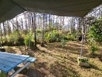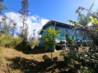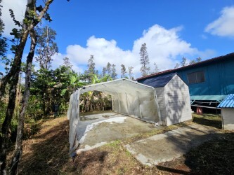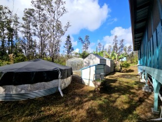 Tranquil off-grid space in the Ohia forest. This well-built, 1 bedroom/1 bath sustainable dwelling with 4 additional rooms is located on 3 acres in the lower half of Hawaiian Acres subdivision. This private homestead has an abundance of producing food crops and edible landscaping including multiple varieties of Bananas, White Pineapple, Papaya, Bajool Tree, several varieties of Citrus and Figs, Sweet Potato, Breadfruit, Coffee, Soursop, multiple types of Ginger including Torch Ginger, Turmeric, Guava, Lilikoi, Cassava, Sugarcane, Coconut Palms, Rollenia, Tongan Spinach, Poha, Popolo, Hala, Cranberry Hibiscus, Hono Hono and so much more! Owners brought in 5-10 pick-up loads of soil, mulch, and manure every month! This is a farmer's paradise with room to expand! Inside the main living structure is 1 bedroom with walk-in closet and 3 additional rooms, one full bath, and a bright and spacious kitchen and living/dining space. The laundry and another half bath are located in a separate structure. There is another 10'x12' structure behind the main living space that has electricity (no running water) perfect for a guest room, storage or art studio. There is a greenhouse on a concrete slab as well as 2 additional plastic sheds for garden tools and storage. There is a 15’ (5000 gallon) swimming pool used as back-up water catchment that could be re-converted back into a recreational use pool with some TLC. A lot of love and hard work went into making this homestead a bountiful place to live. Some of the features include: -UV water filtration system -5000 gallon galvanized water catchment -2 water pumps -On demand ECOTEMP water heater -New glass jalousie windows throughout -2500W Outback Inverter (Wired for additional 2500W Outback Inverter) -4 lithium batteries (Total of 18KWH) -2 charge controllers -4000W of solar panels on the roof -Large DC freezer and chest refrigerator -2 worm farm compost containers