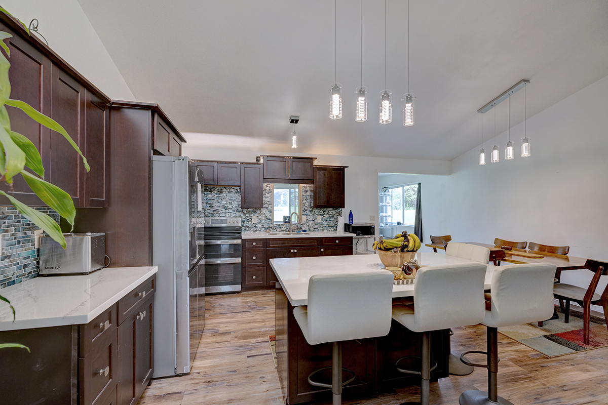 Beautifully remodeled and upgraded, large 5 bedroom 3 bath with an office on a tropical lush including 3 acres of land. Nice open floor plan with vinyl flooring through out, open kitchen with soft closing cabinets, stainless steel appliances and island. Multiple pantry closest with a extra walk in. Large indoor laundry room that leads to the back yard.