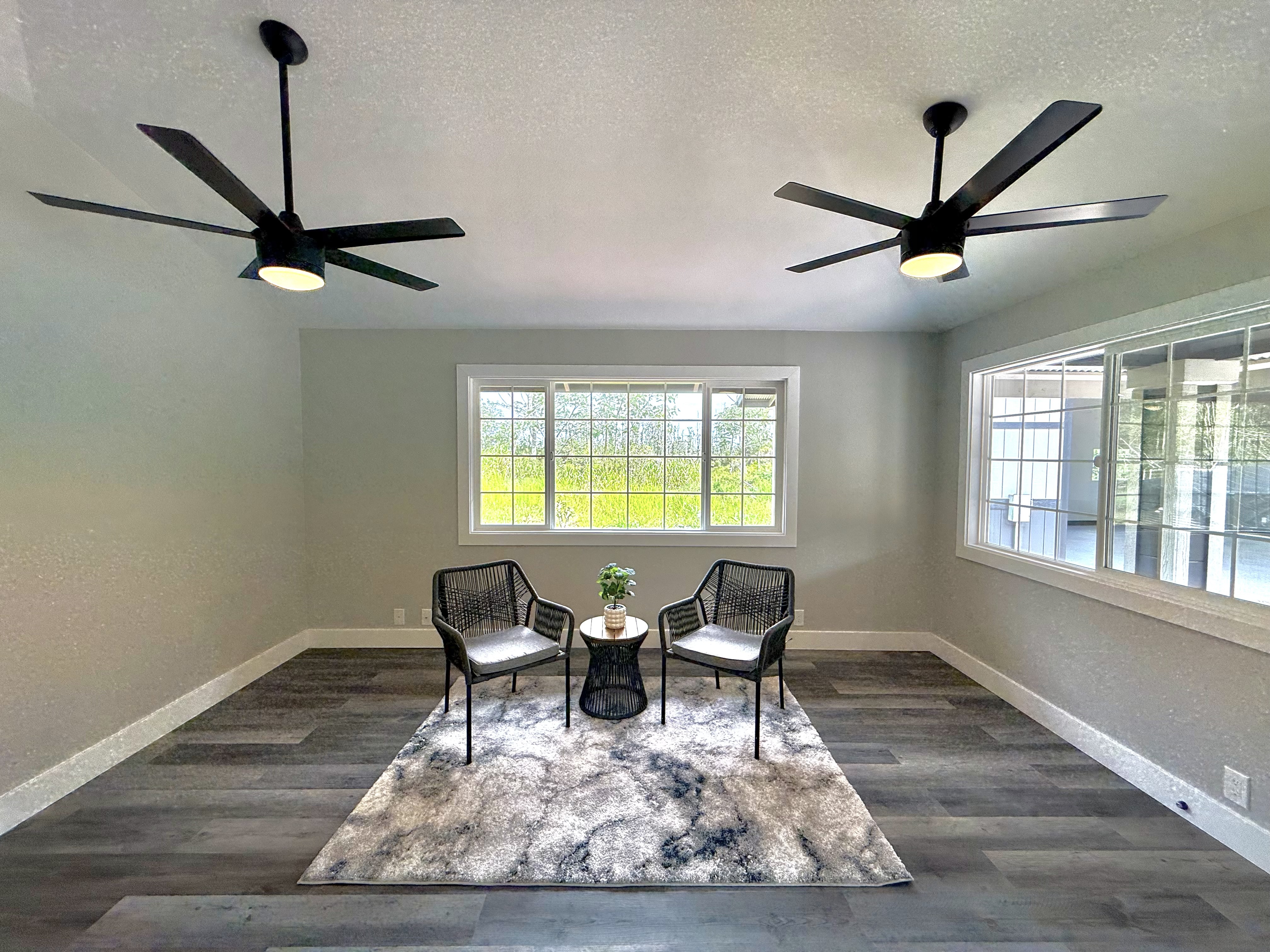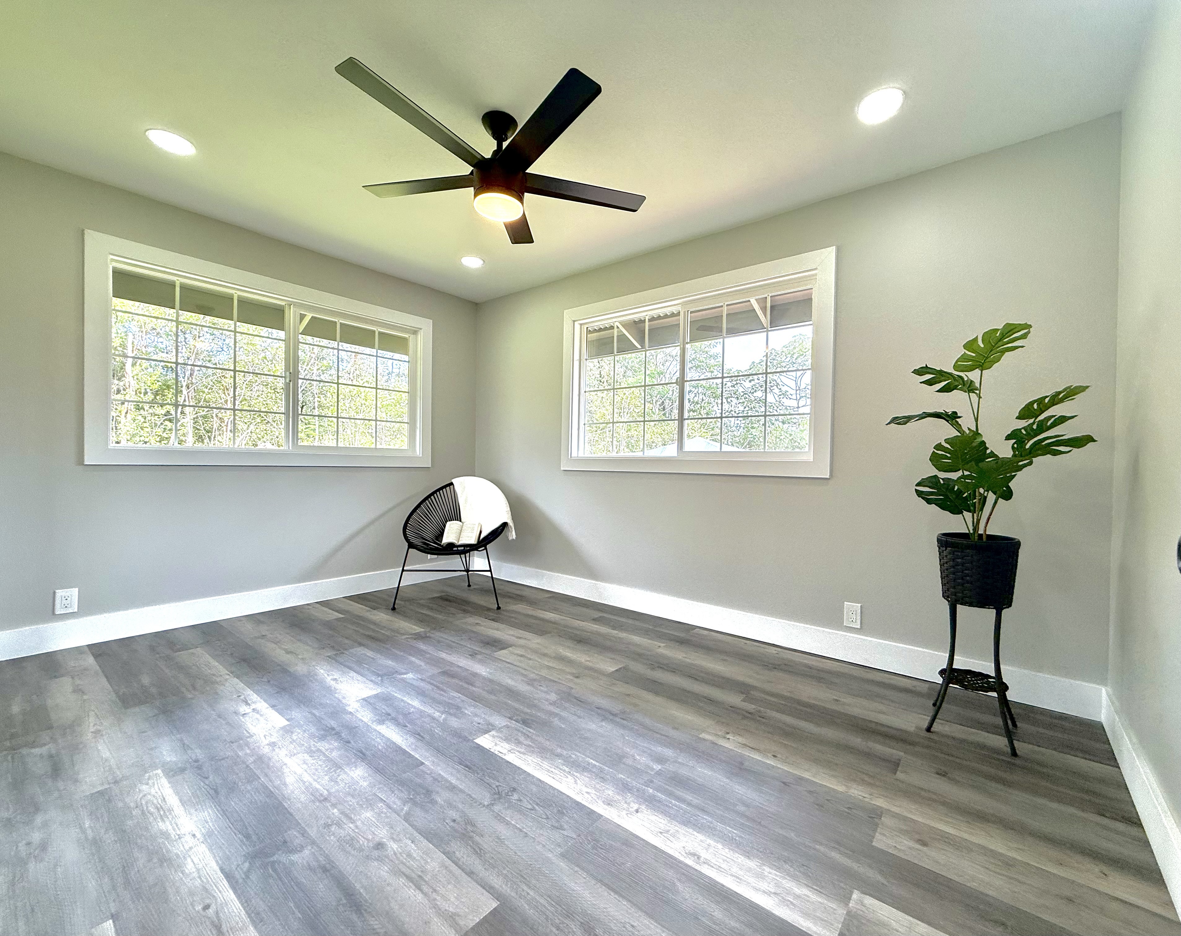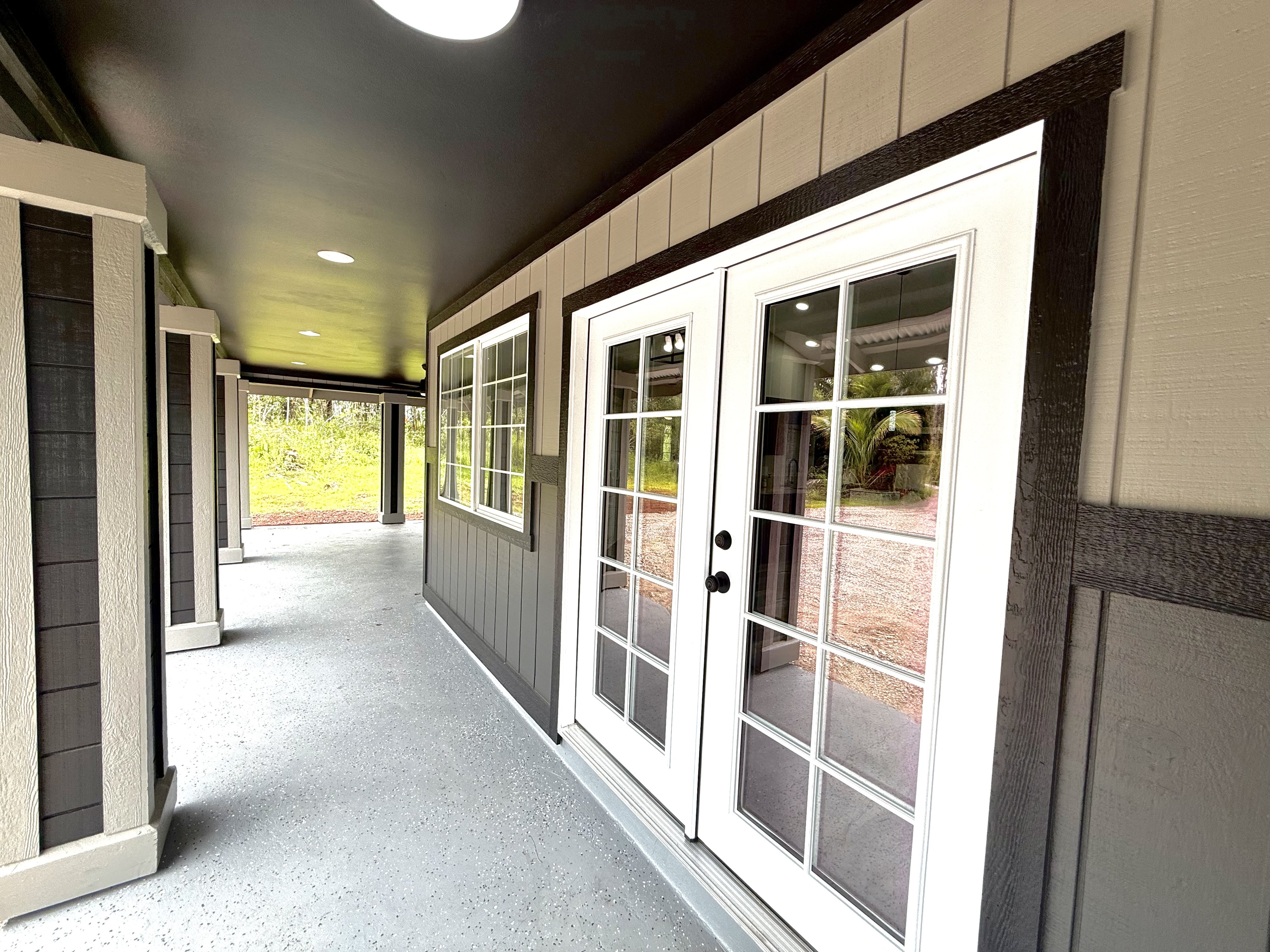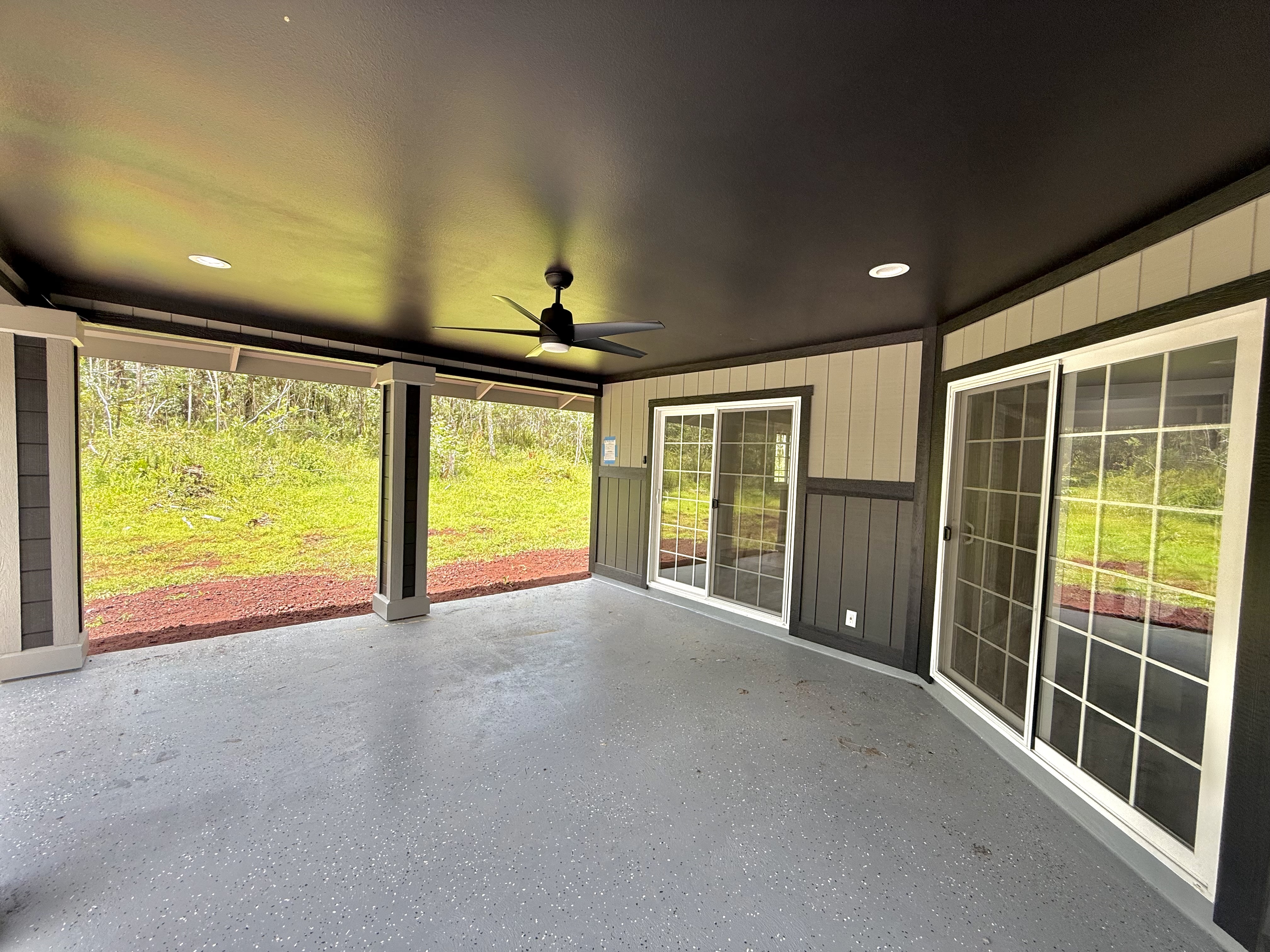 Lush vegetation helps secure peaceful privacy while allowing for cool country breezes to make their way through. Inside you will find an open concept kitchen, living room, and dining area. Perfect for hosting family gatherings or weekend entertainments. Each bedroom is thoughtfully positioned away from the gathering area to ensure quiet reservations on downtime. Two bedrooms are positioned behind the kitchen hallway while the primary suite is tucked in the far west of the home with its own lanai access, walk in closest, and en-suite bath.