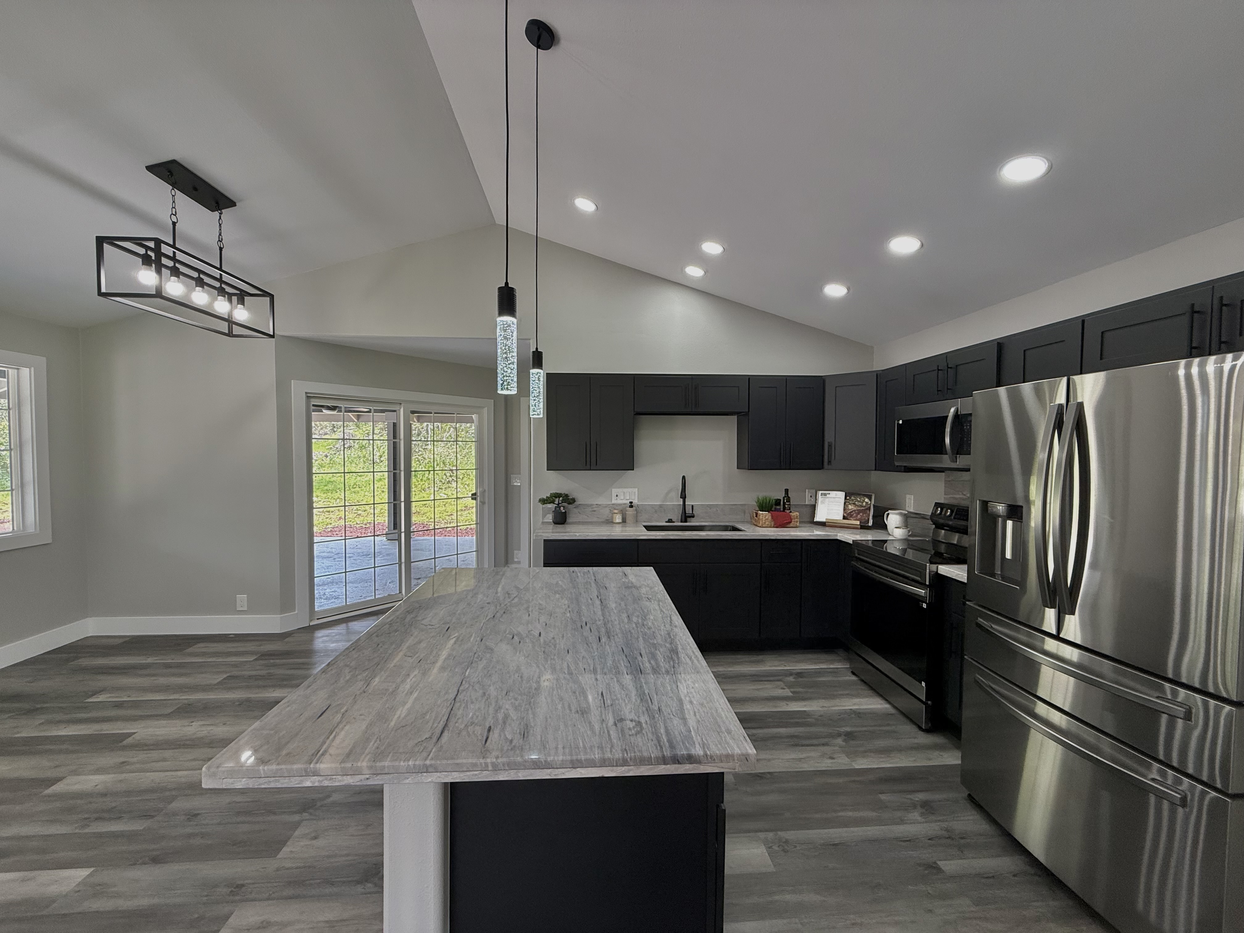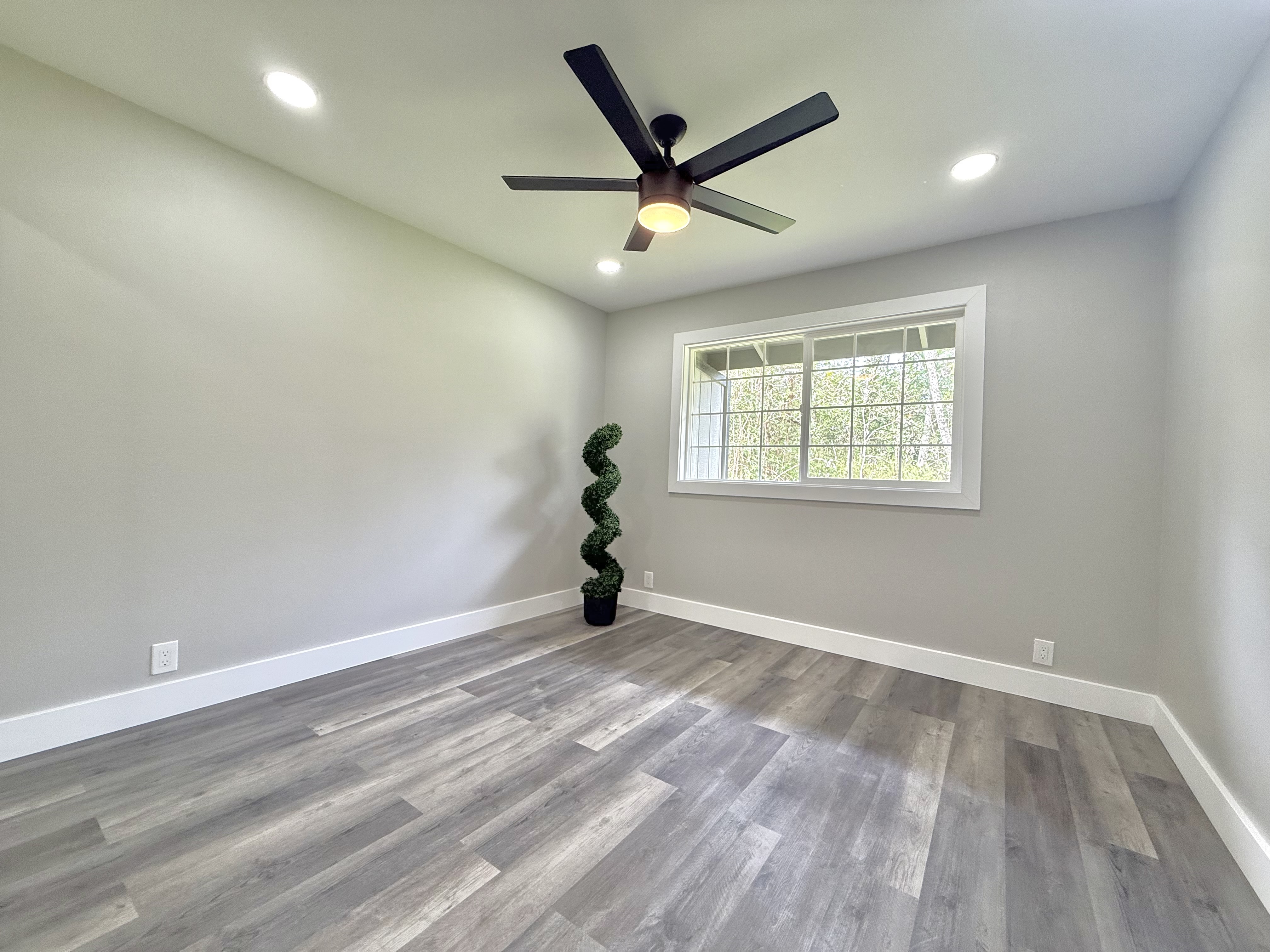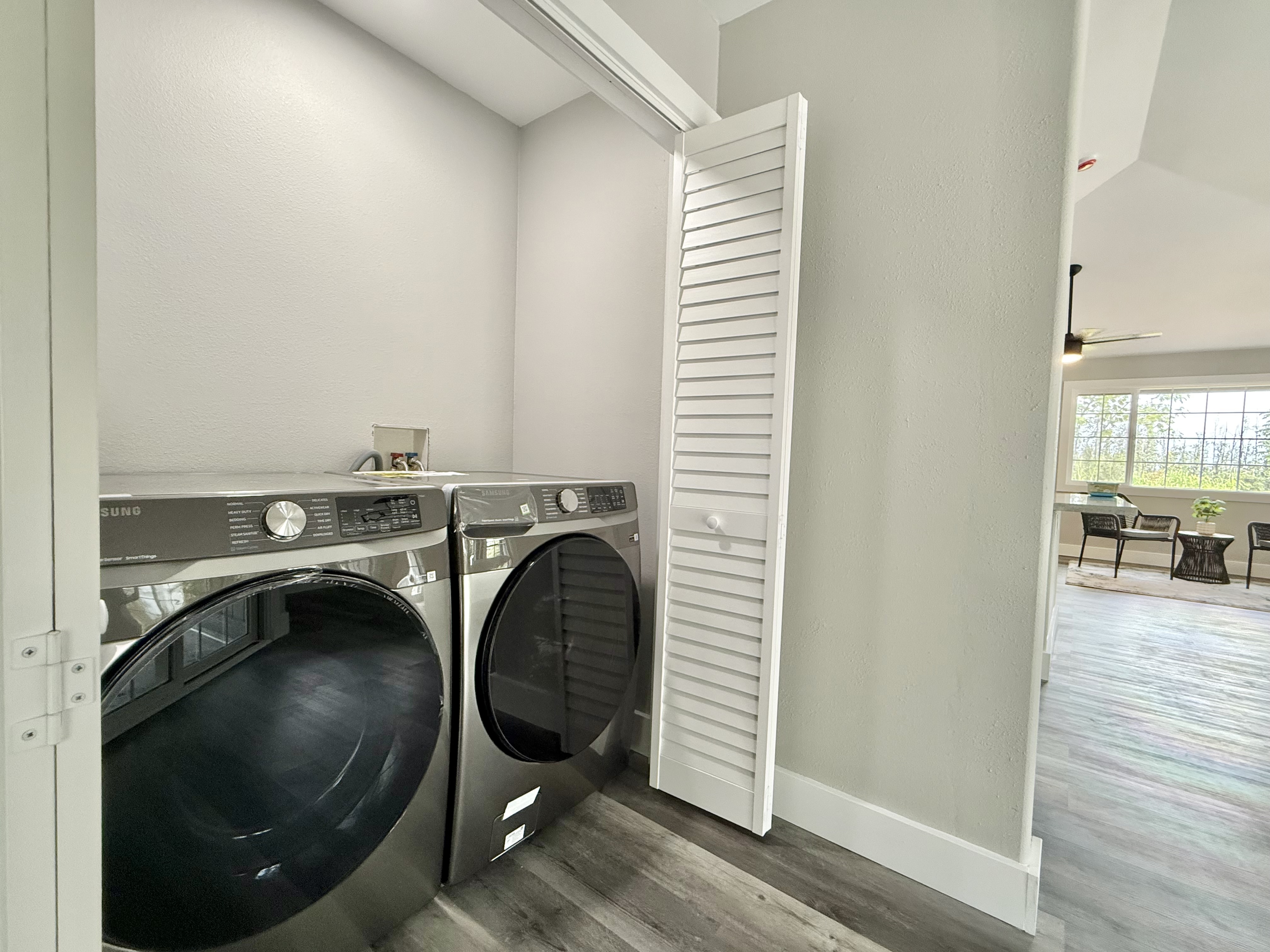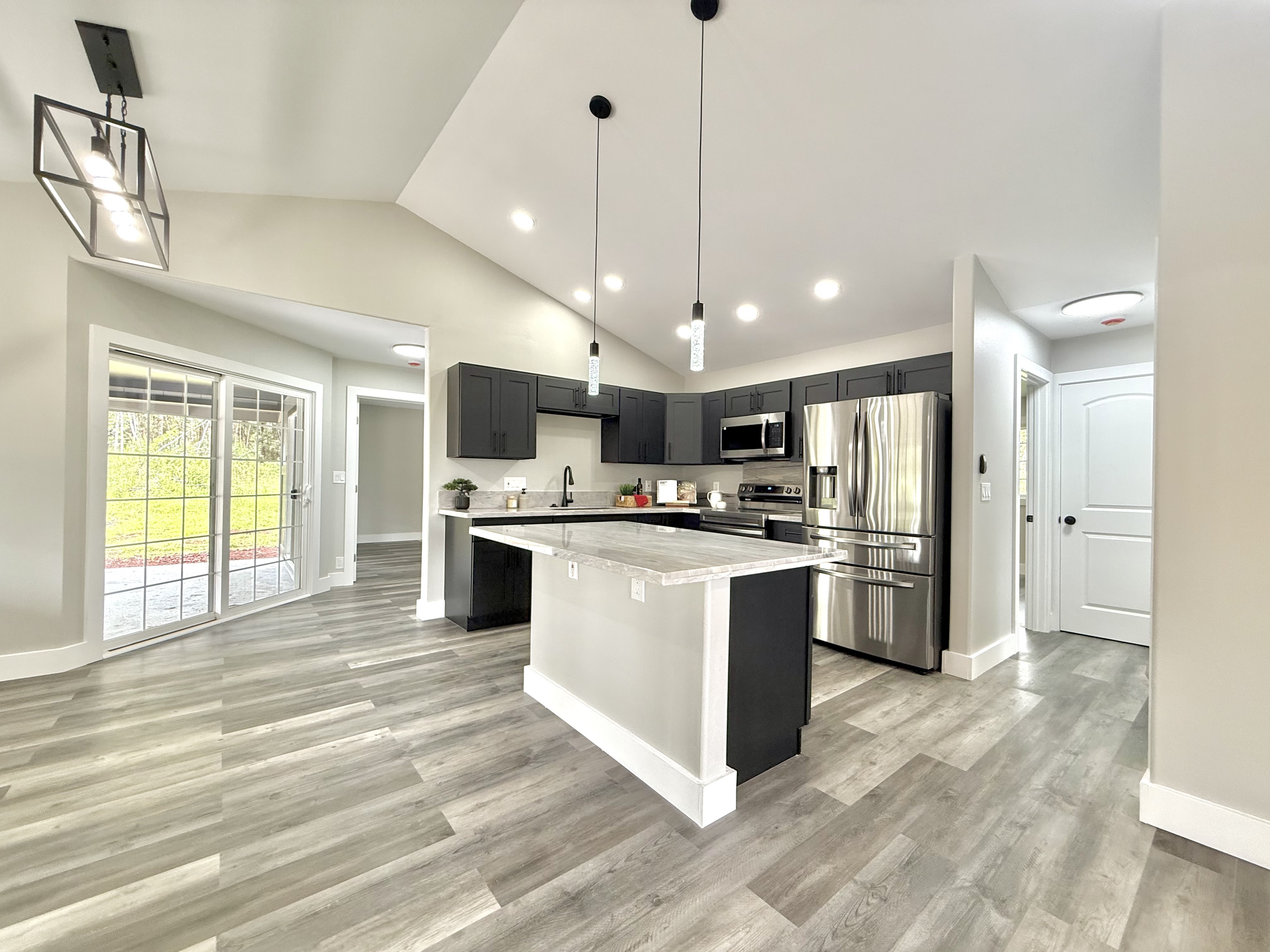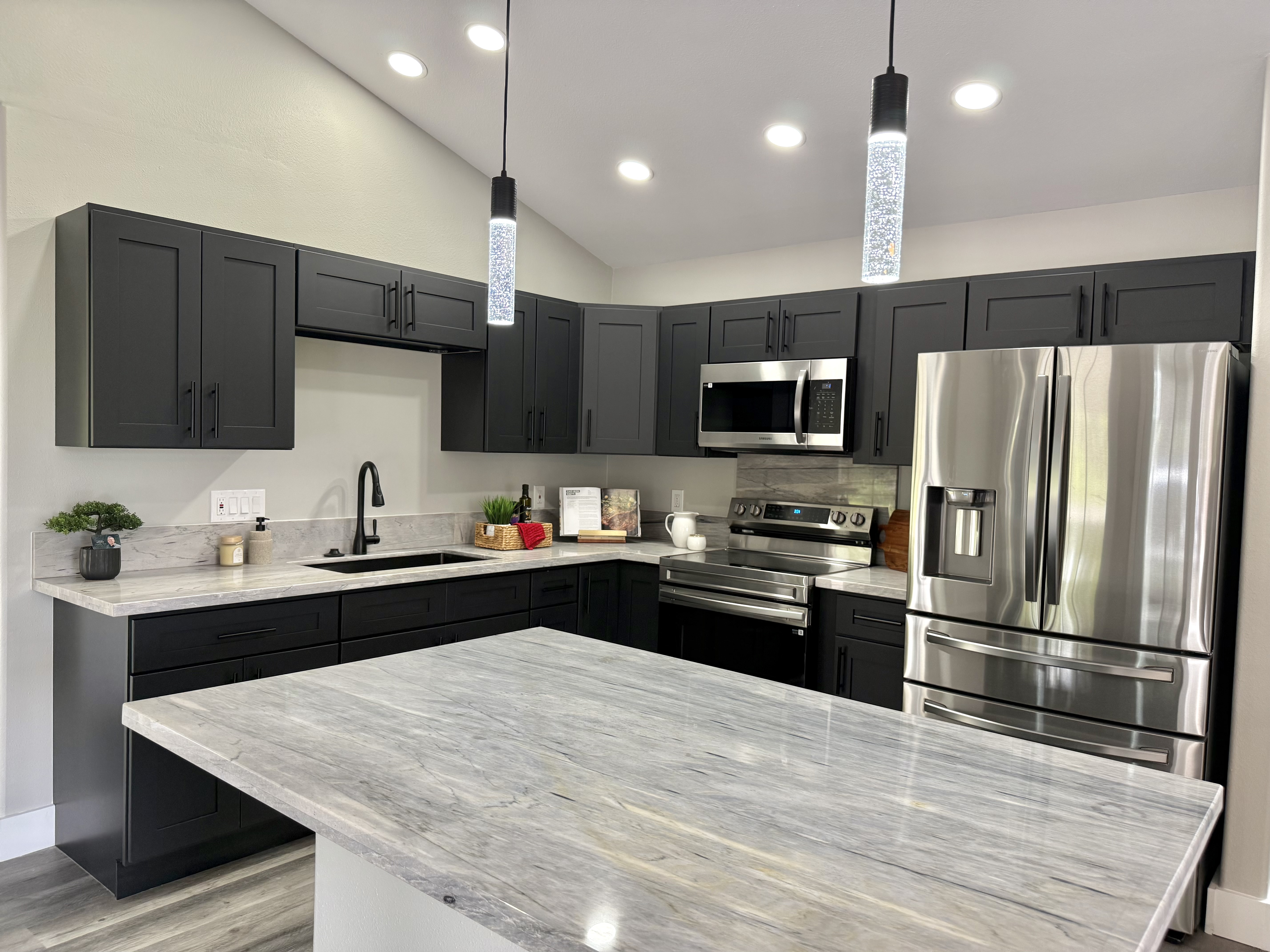 Lush vegetation helps secure peaceful privacy while allowing for cool country breezes to make their way through. Inside you will find an open concept kitchen, living room, and dining area. Perfect for hosting family gatherings or weekend entertainments. Each bedroom is thoughtfully positioned away from the gathering area to ensure quiet reservations on downtime. Two bedrooms are positioned behind the kitchen hallway while the primary suite is tucked in the far west of the home with its own lanai access, walk in closest, and en-suite bath.