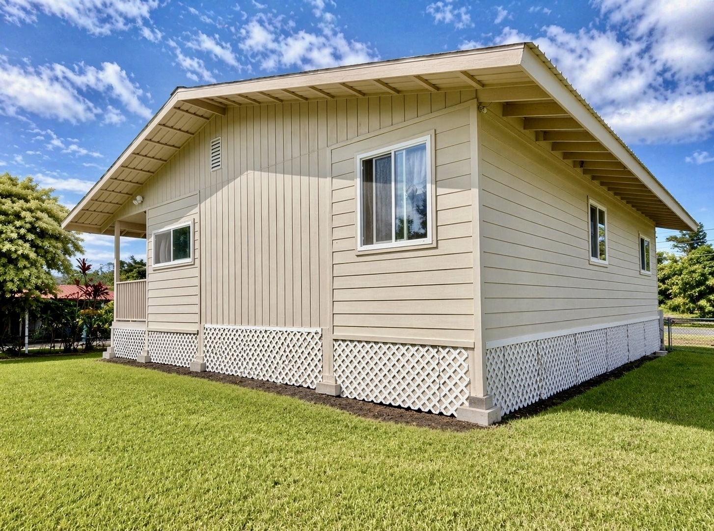 Fully Furnished | Move-In Ready | Just 2 Miles from the Ocean Welcome to this charming 3-bedroom, 2-bath home in the desirable Hawaiian Beaches Subdivision–offering comfort, convenience, and easy island living. Built in 2014, this 1,120 sqft home sits on a spacious 12,040 sqft lot surrounded by lush tropical greenery. Step inside to a bright, open-concept layout filled with natural light. The kitchen offers ample counter space and pantry storage, while the primary suite provides a private retreat with outdoor access and a jacuzzi tub. All bedrooms are generously sized with walk-in closets and custom shelving. Turnkey and thoughtfully upgraded, this home is being sold fully furnished and includes a new tankless water heater, new gas stove (oven range still in box), and new ceiling fans throughout–ready for immediate enjoyment. The post-and-pier foundation allows for added airflow, storage, and easy maintenance. Additional features include a covered carport, multiple storage sheds, and a Matson container with building materials. Tools and equipment are negotiable. Located just 2 miles from the ocean, enjoy coastal breezes and convenient access to nearby shoreline areas. With no HOA fees, county water, overhead power, and internet/cable availability, this Fee Simple property is ideal as a full-time home, second residence, or investment. Flood Zone X (no flood insurance required) | Minutes to Pahoa town for shopping, dining, and amenities. Move-in ready and fully equipped–don’t miss this opportunity to step into your Hawaii lifestyle with ease.