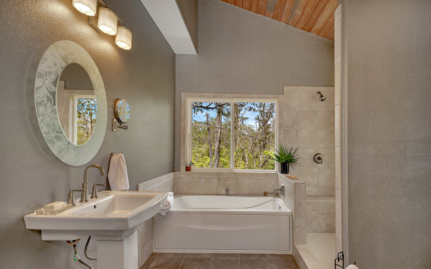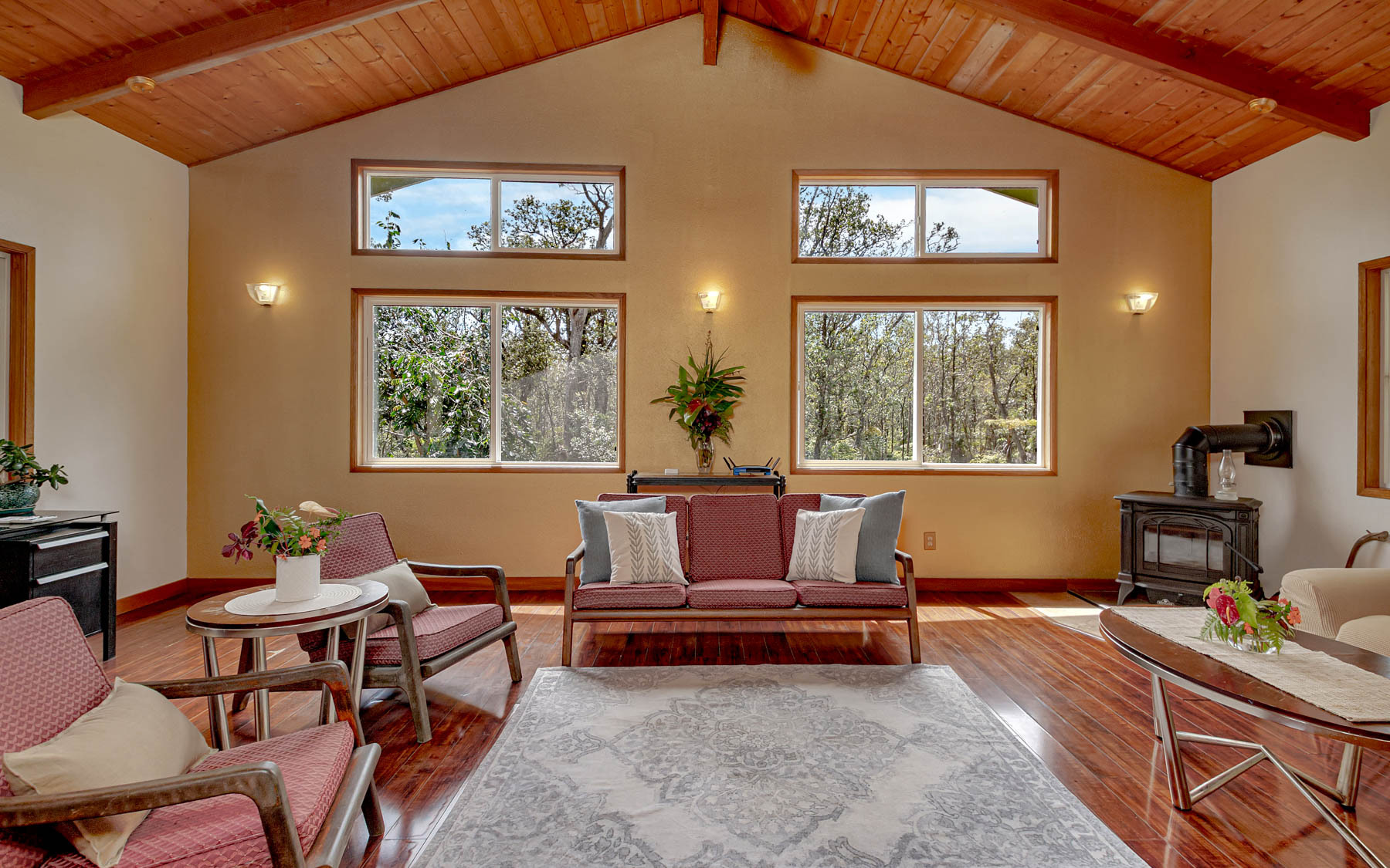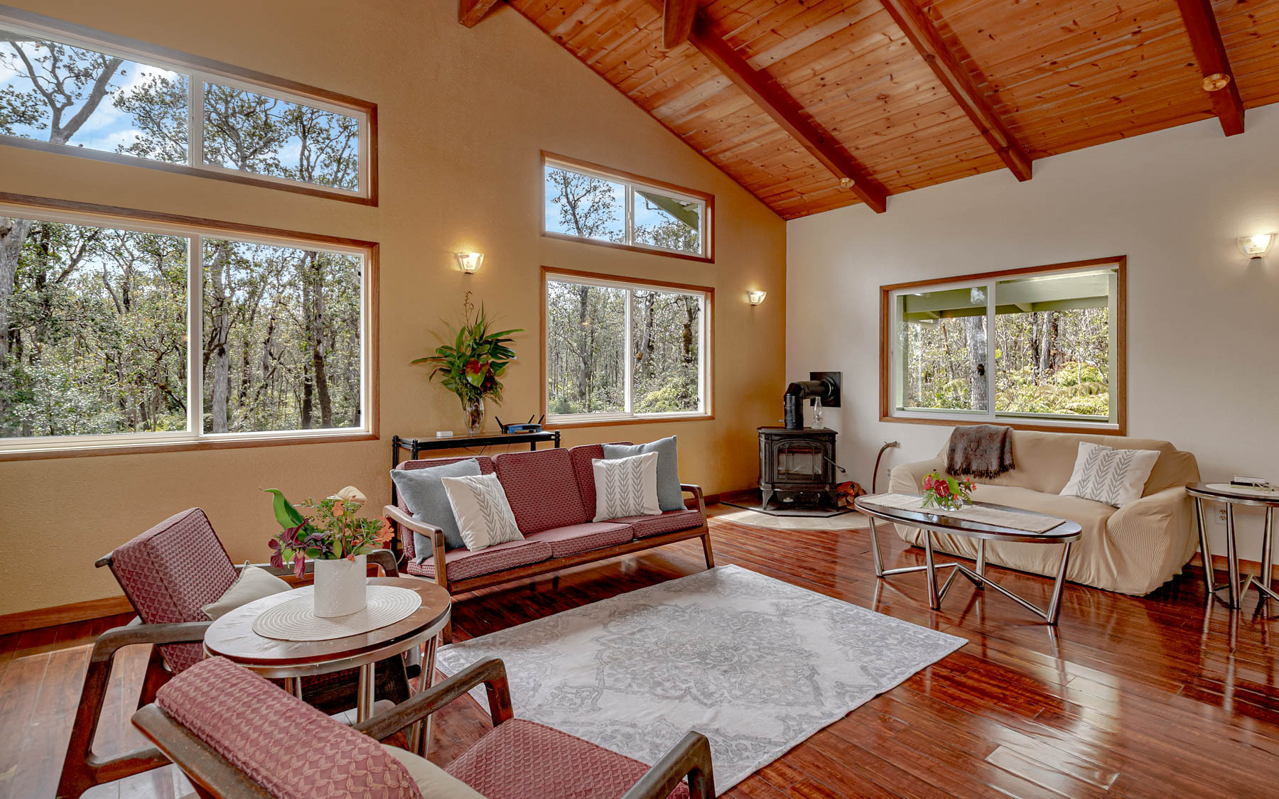 "Ke Alohilani", the Shining Heavenly Place, is a fitting name for this charming custom built home on 4 fenced acres of mature native forest. Thoughtful clearing of the lot maximized privacy and protected the forest. The home lives large with soaring cathedral ceilings, large windows and skylights bringing in light and forest views. It's like living in a treehouse! Recent upgrades include a new on-demand hot water tank, 14 PV Solar Panels (leased) for inexpensive electricity, a new gas cooktop and fresh paint in and out. Other special features include a large soaking tub in the bathroom, heated ceramic floors in the bathroom and kitchen, spacious covered decks for in-door/out-door living and a lower area under the home to develop if desired. Hawaiian Orchid Island Estate is a much sought-after location in Volcano. The lots are 3 acres and square in shape which offers more privacy from neighbors than the thinner "spaghetti" shaped lots so common in nearby subdivisions. Located on the corner of Alii Kane and Ho'olehua Rd., this lot is larger, at 4 acres, with paved access from the highway on Alii Kane St. Lease for PV Solar Panels will be transferred to Buyer at closing. Voluntary dues for Road Maintenance are currently $60/year, subject to change. Also an Assoc. Transfer Fee of $60 will be assessed Buyer at closing. Link to HOIE Association website is http://hoie.weebly.com.