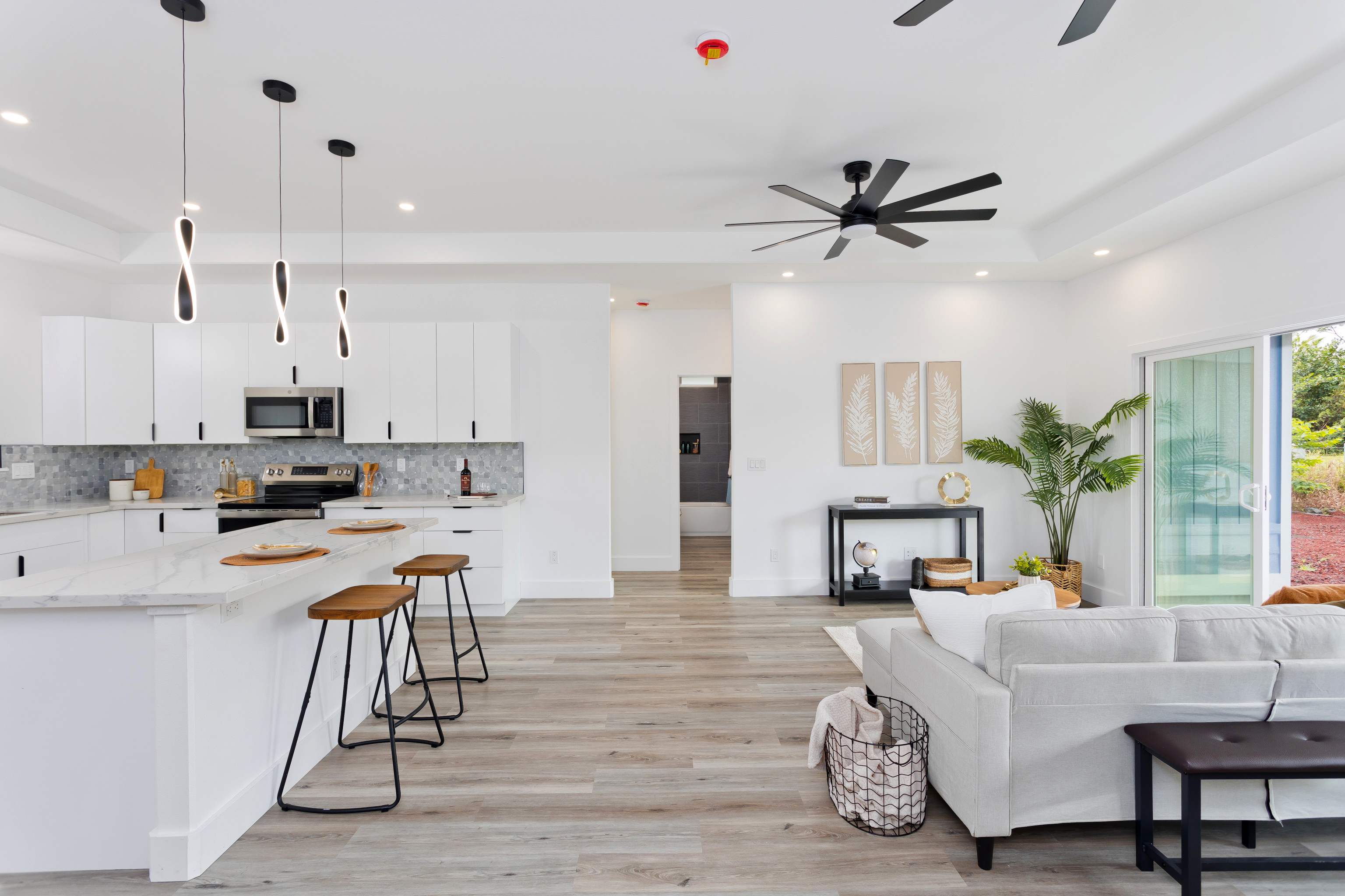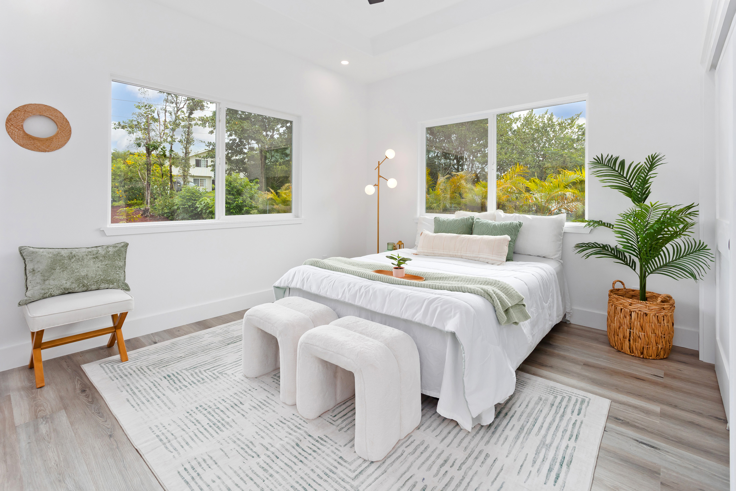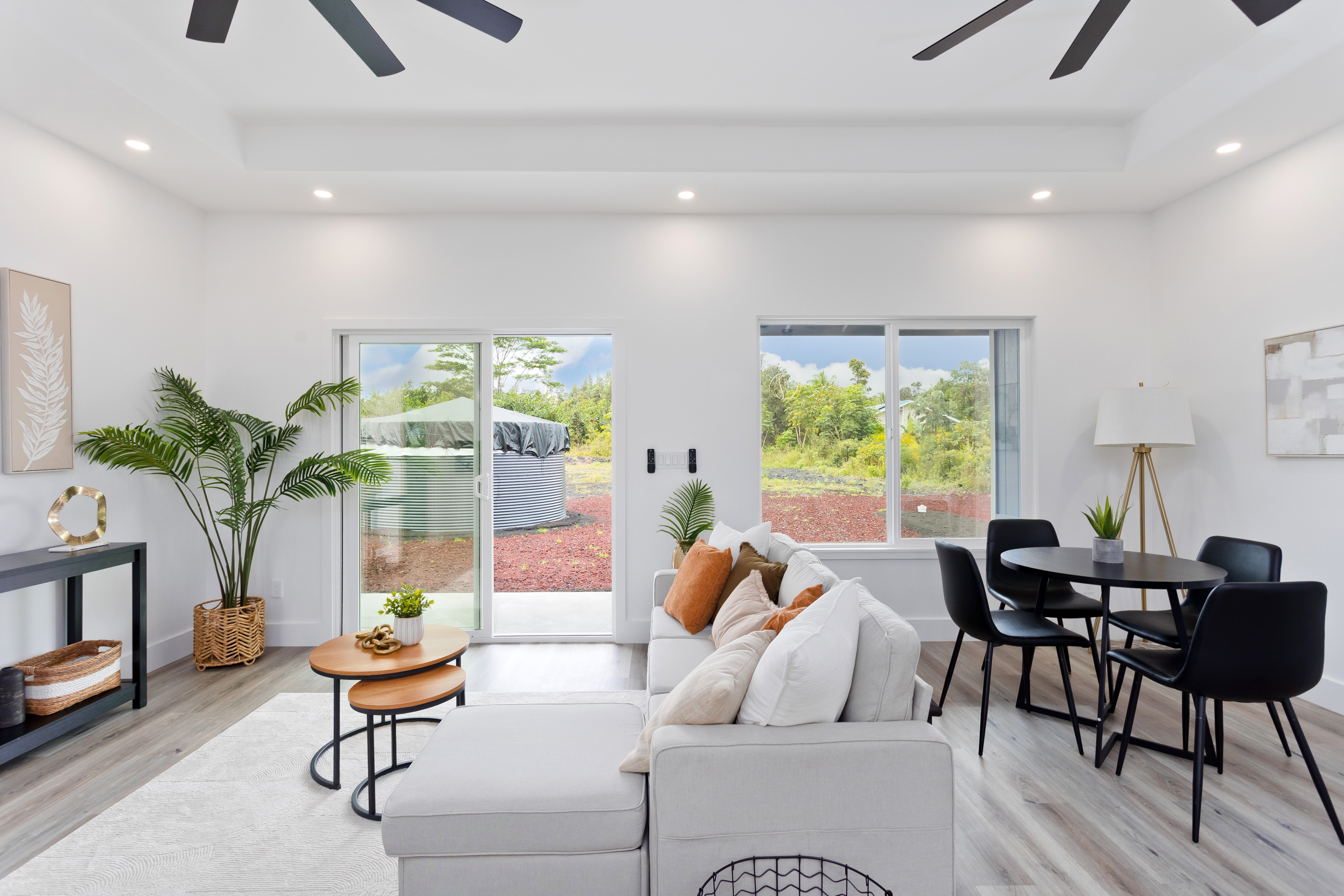 New construction just a 15-minute walk to the famous Shipman Beach trailhead–one of the Big Island’s most scenic coastal hikes leading to a secluded white sand beach. Located near one of Hawaii Island’s most beloved coastal trails, this newly built home offers the rare opportunity to enjoy modern living while being surrounded by the natural beauty of East Hawaii. This well-designed 3-bedroom, 2-bathroom home sits on 21,780 sq ft of land on a quiet private road, offering space for outdoor living while maintaining privacy and tranquility. The home features a split floor plan for added comfort and functionality. On one side of the home you'll find a spacious primary suite which includes a walk-in closet, walk-in shower, and double vanity sinks, creating a relaxing private retreat. On the opposite side are two additional generously sized bedrooms and a shared full bathroom, ideal for family or guests. The open living area flows seamlessly into a modern kitchen equipped with brand-new appliances. Additional features include 10-foot tray ceilings that enhance the sense of space and light, an enclosed garage, UV water filtration system, washer and dryer, and a covered back lanai perfect for outdoor dining and entertainment. This move-in-ready home offers both tranquility and accessibility. Coastal attractions, hiking, and outdoor recreation are nearby, while the conveniences of East Hawaii’s services and amenities remain just a short drive away. An exceptional opportunity to experience comfortable island living in one of East Hawaii’s most sought after locations. Offering .