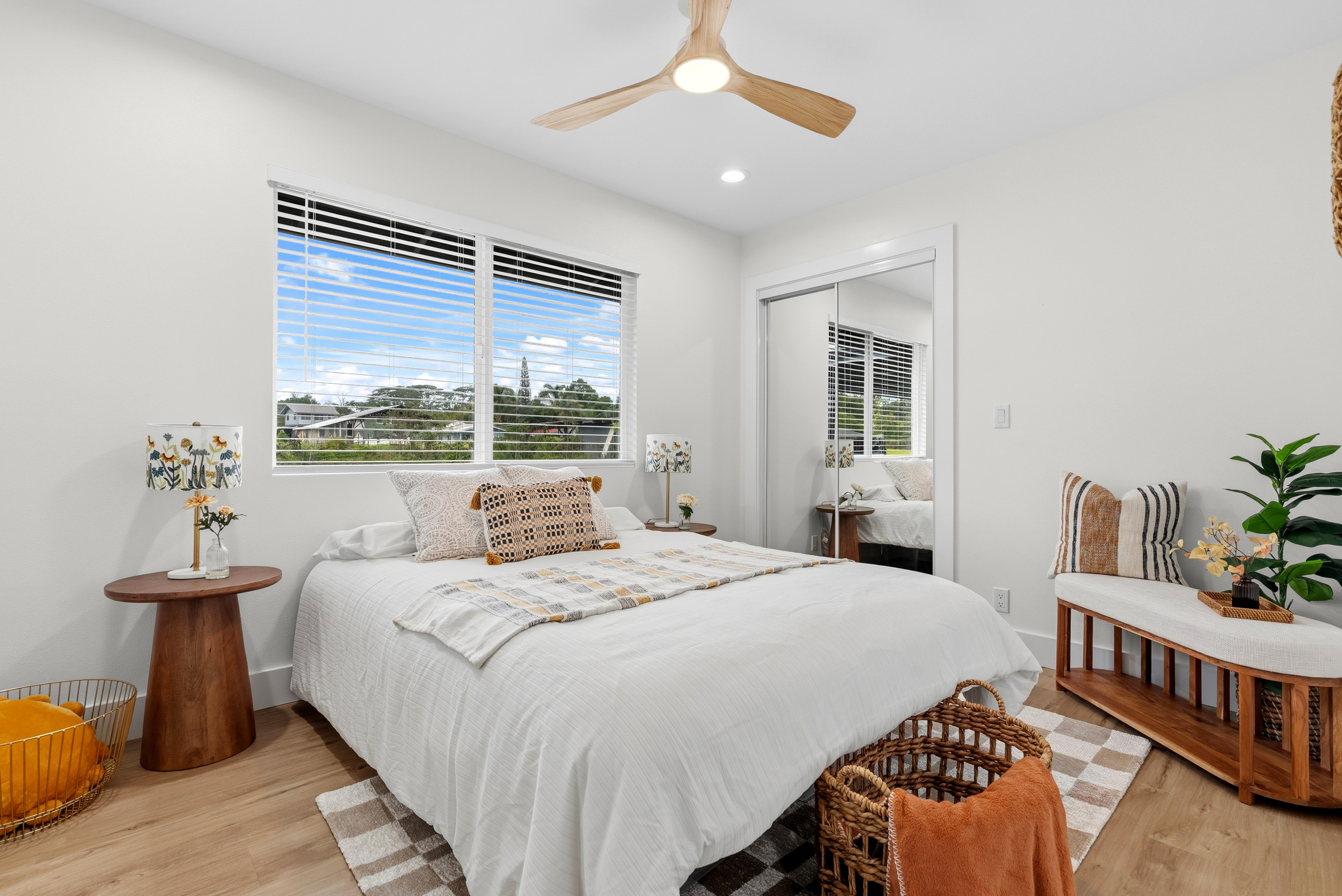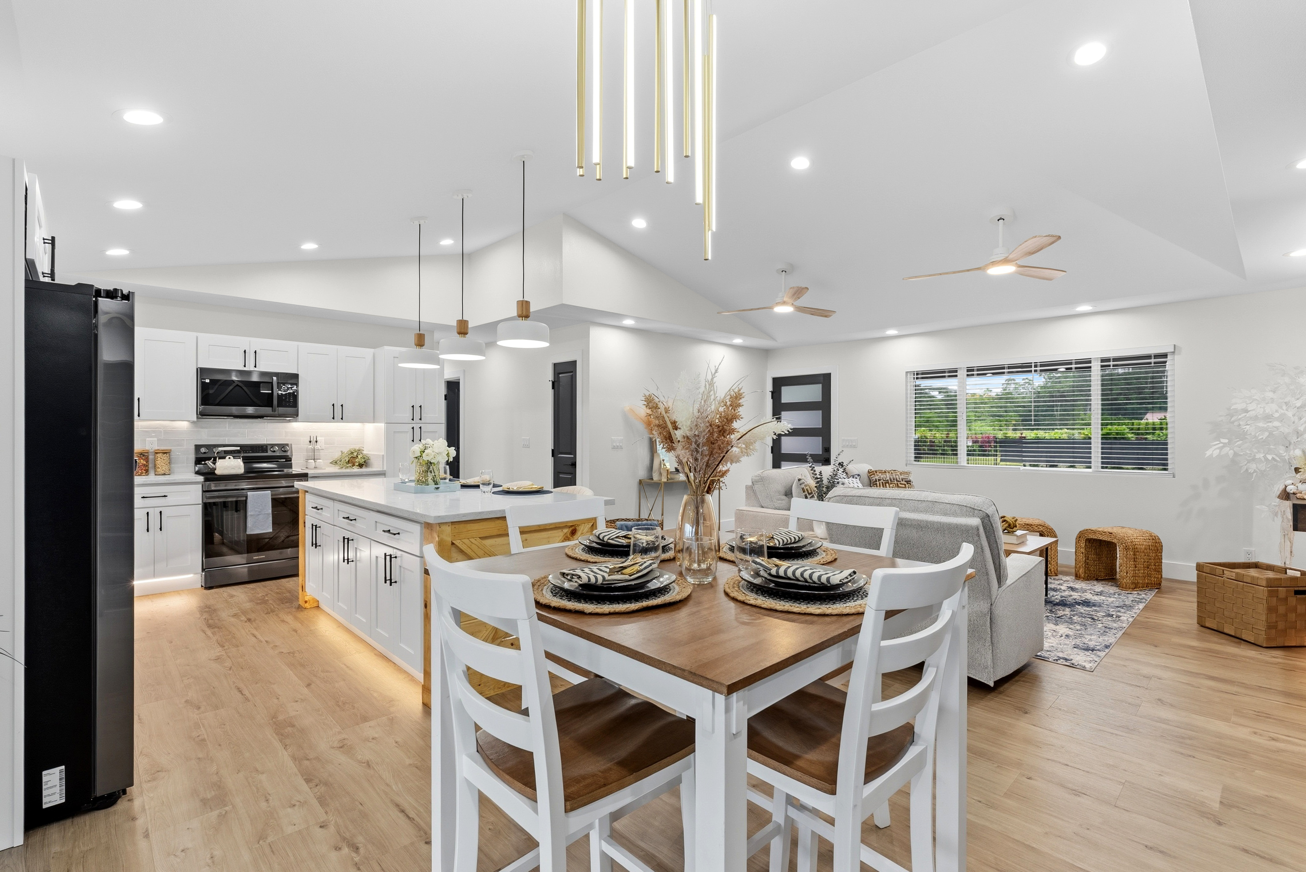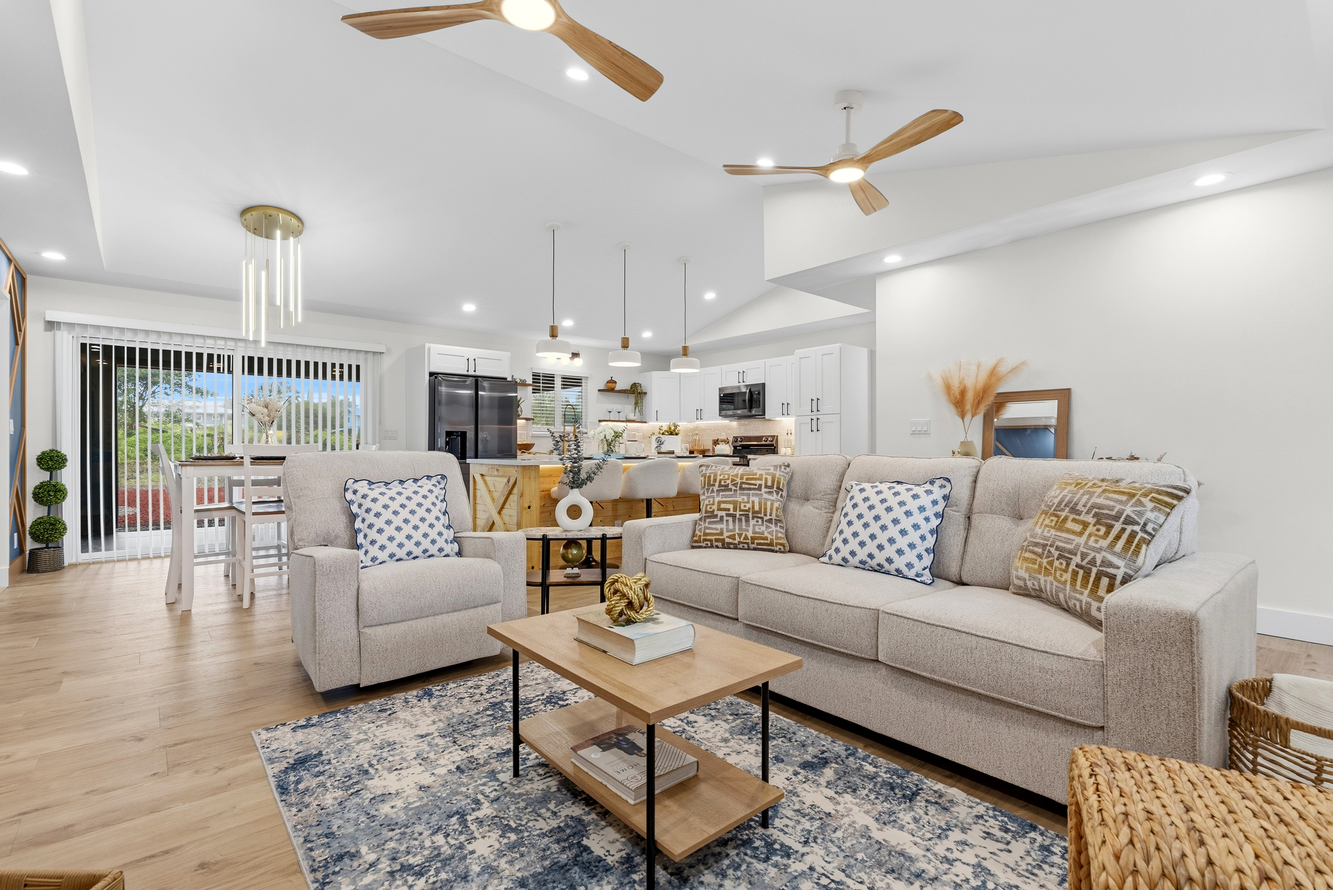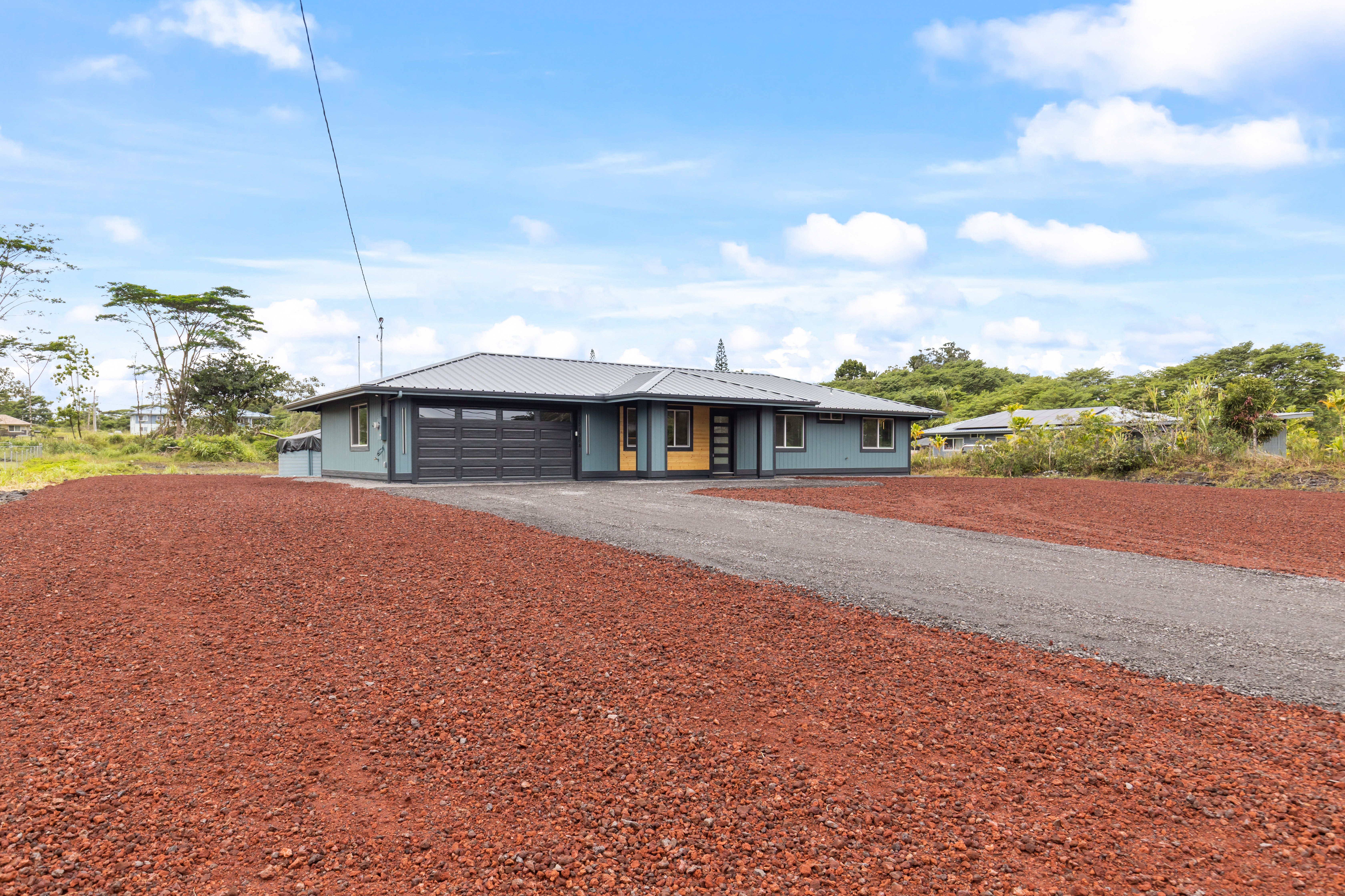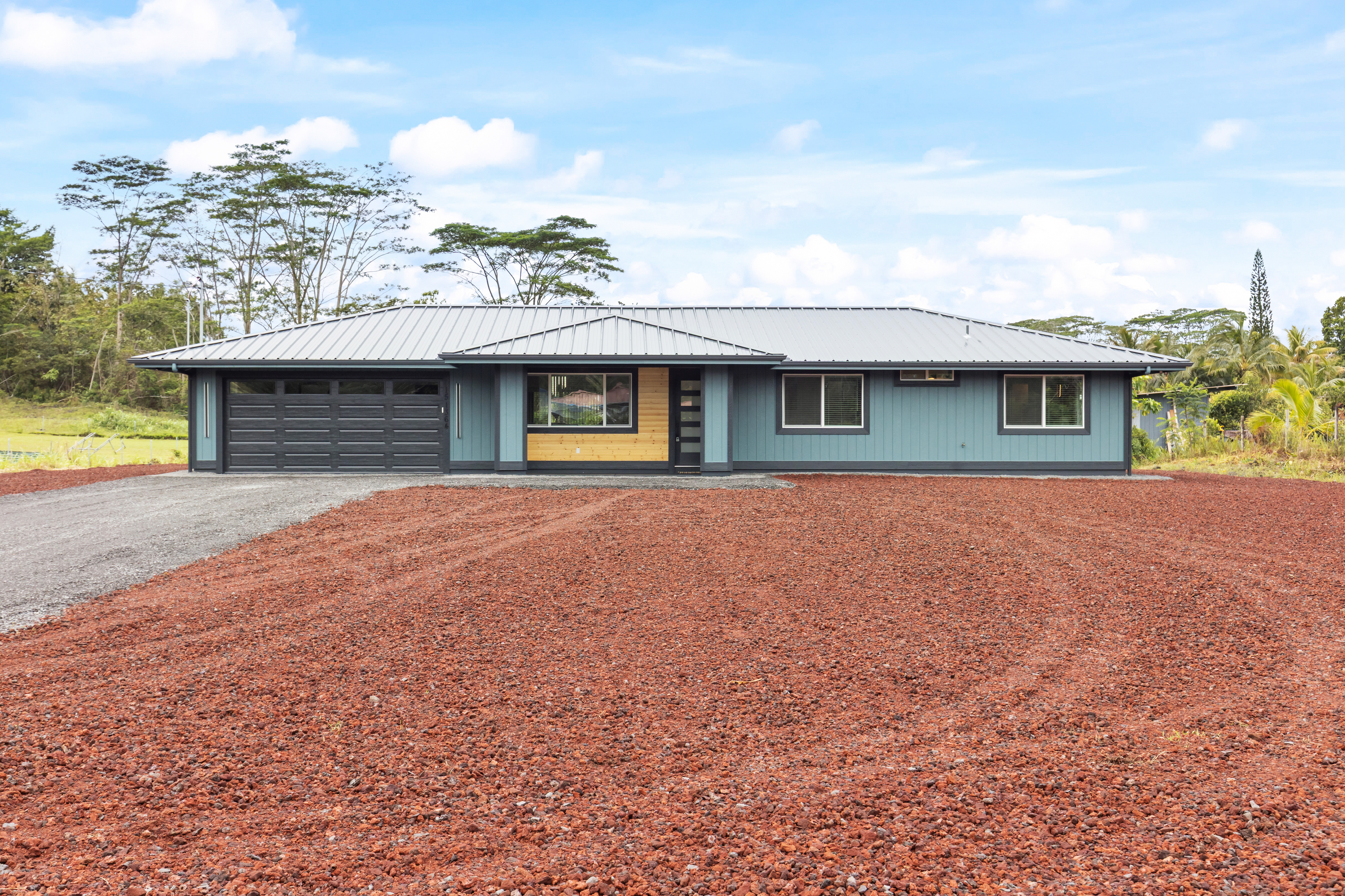 BRAND NEW HOME LOCATED IN HAWAIIAN PARADISE PARK SUBDIVISION ON 20TH AVENUE OFF KALOLI DRIVE! *3 Bed / 2.75 Bath Home *2,064 SqFt Under Roof *1 Acre Lot *Custom-Designed Modern Decor *Vinyl Lifeproof Flooring throughout the Home *Decorative Entertainment Wall with Floating Wood TV Border & Mantel w/ LED Lights in Living Area *LED Under Cabinet Lighting in the Kitchen & Bathrooms *Main Bedroom includes Decorative Wall w/Hanging Ceiling Lights and Painted Ceiling *Main Bathroom provides an En-suite Feel with Dual Vanity Sinks, Linen Closet and a Walk-in Shower *All Bathrooms Feature LED lights in Niches *Countertops and Cabinets Compliment the Style of the Home *Kitchen Appliances Included (Refrigerator, Range/Oven, Dishwasher and Microwave Hood) *Vaulted-Ceiling in the Living Area w/Tray Ceiling Lighting *Ceiling Fans with Light Combo in Living Room and each Bedroom *Walk-in Closet with Built-in Shelving in Main Bedroom *Blinds Installed in all Windows and Sliding Door *Two-Car Enclosed Automatic Garage, Garage has a Storage Room *Storage Room Includes Water Heater, Water Pump, and UV Water Filtration System *Exterior Paint Colors Compliment the Interior Color Palette *Epoxy Painted Garage floors, Front Entrance & Patio Floors for that Finished Touch *Exterior Flood Lights at each Corner of the Home *Front Entrance Patio and a Rear Patio *Property is Landscaped with Cinder and Landscape Rock Borders the Perimeter of the Home It's move-in ready and waiting for you to make this house into a home! *Disclaimer: Couch, Dining Set and Bar Stools can be purchased. All other staging items will be removed prior to closing and is not included in the sale of the home.