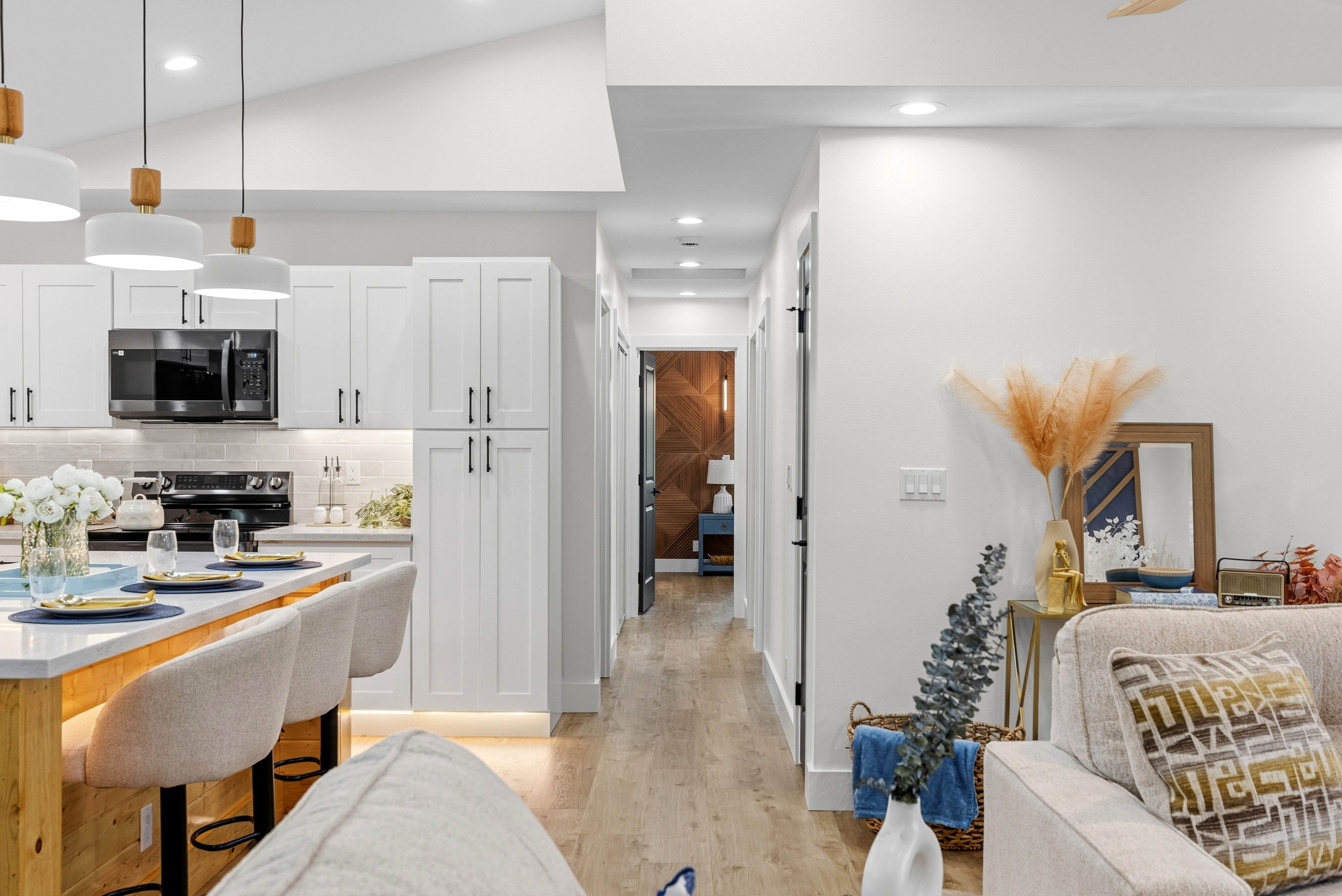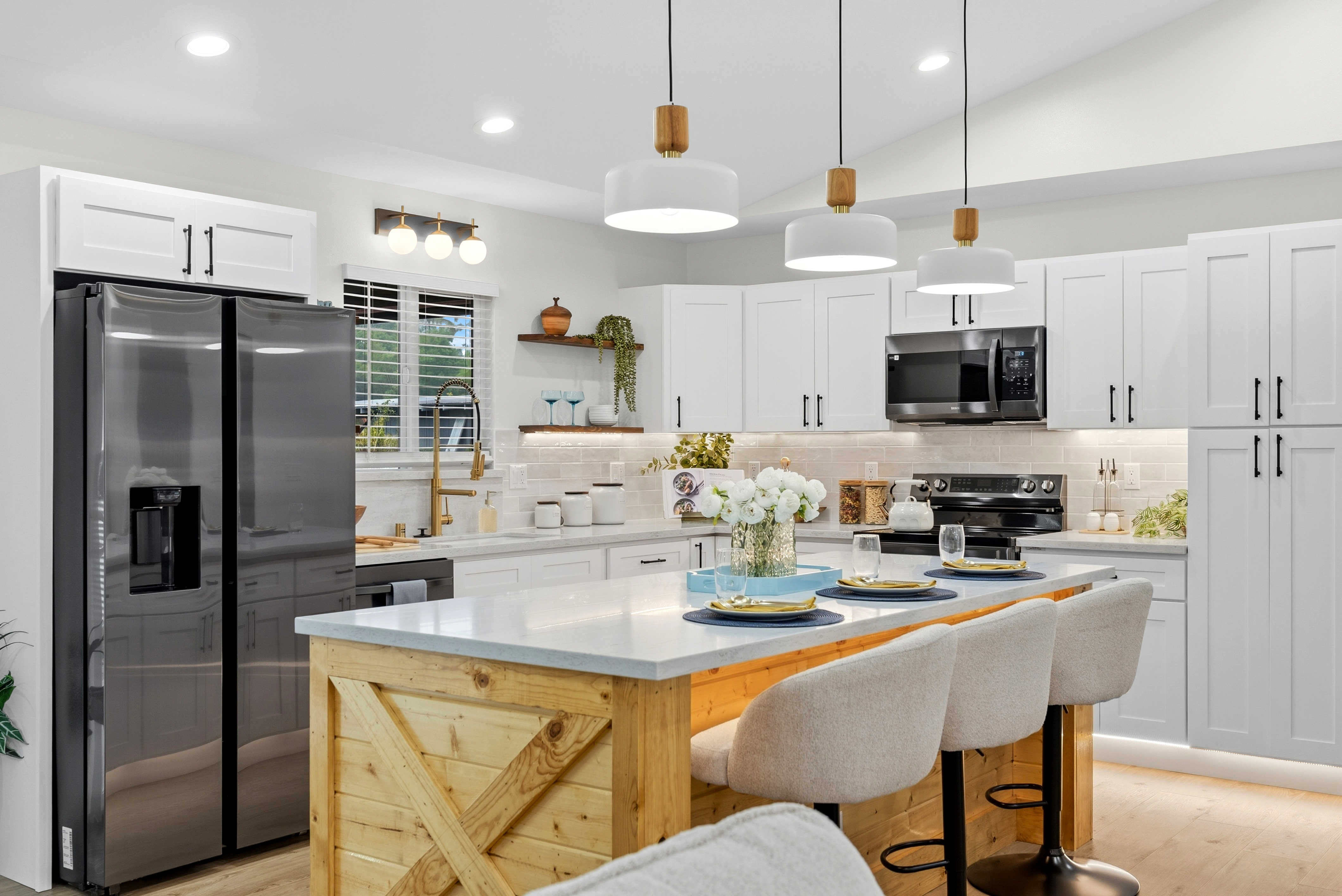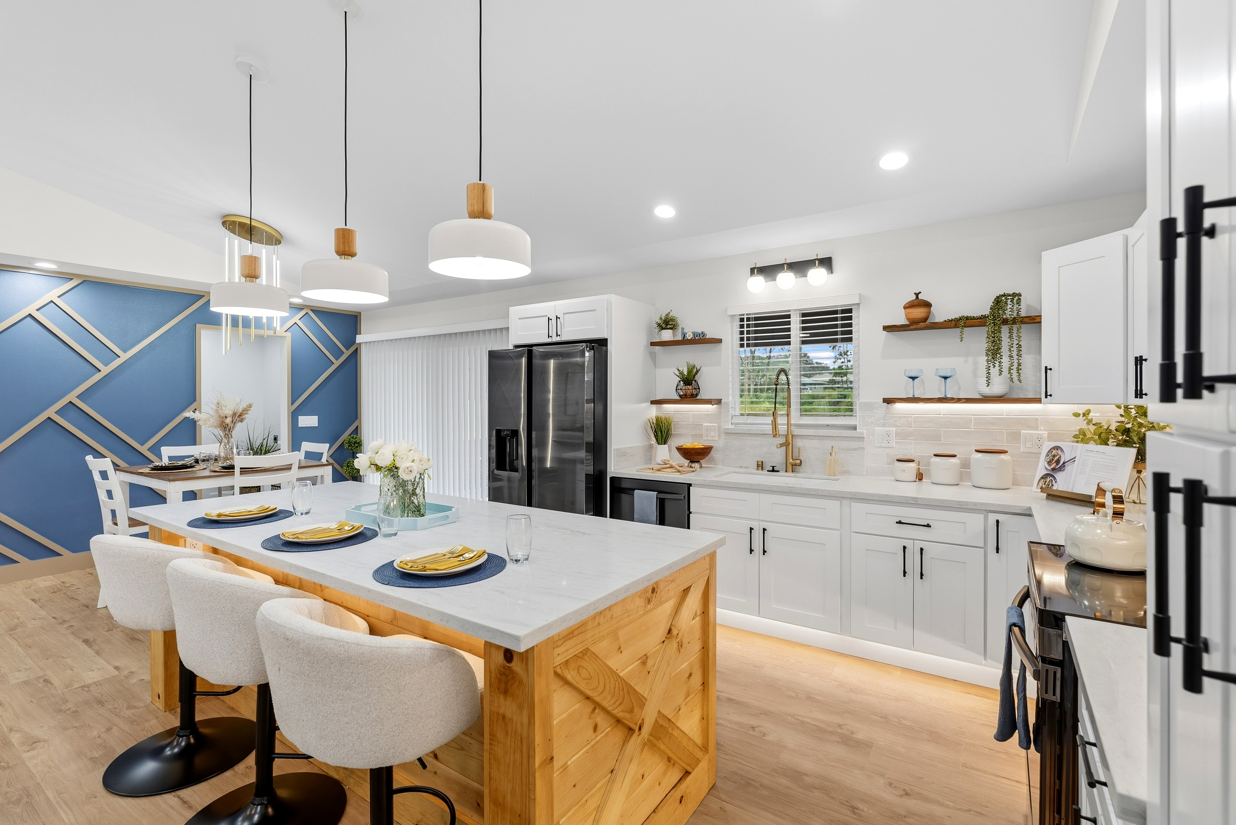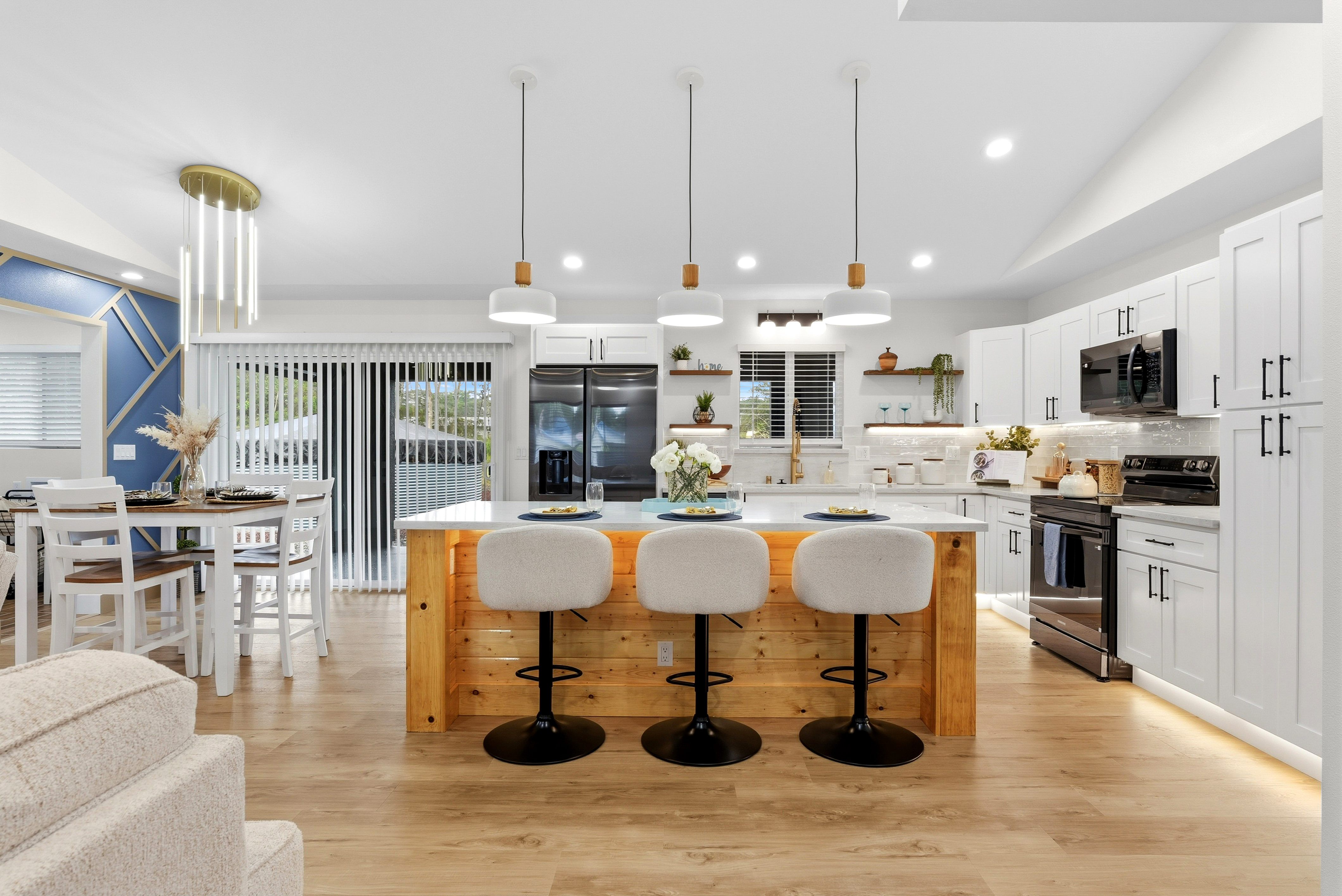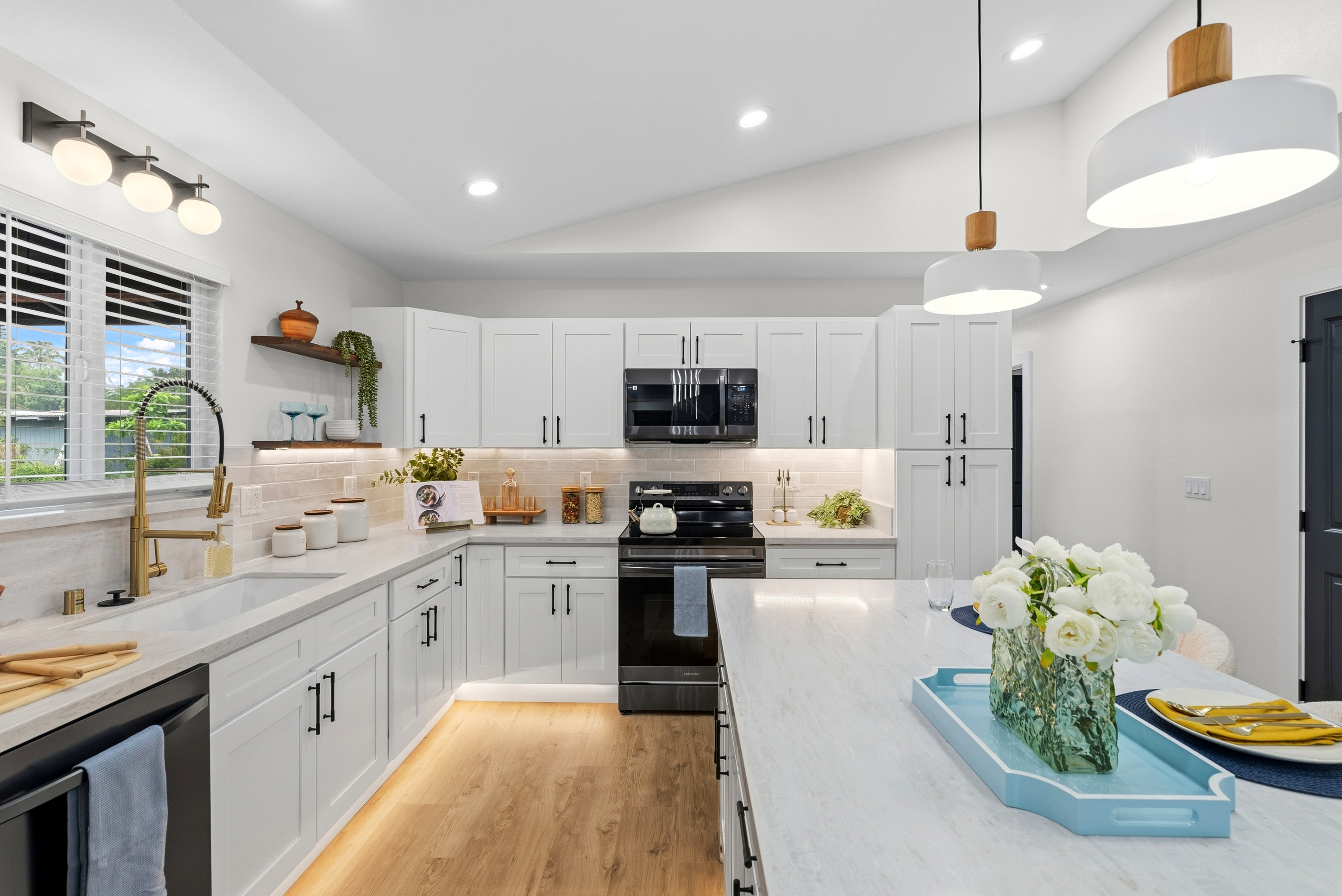 BRAND NEW HOME LOCATED IN HAWAIIAN PARADISE PARK SUBDIVISION ON 20TH AVENUE OFF KALOLI DRIVE! *3 Bed / 2.75 Bath Home *2,064 SqFt Under Roof *1 Acre Lot *Custom-Designed Modern Decor *Vinyl Lifeproof Flooring throughout the Home *Decorative Entertainment Wall with Floating Wood TV Border & Mantel w/ LED Lights in Living Area *LED Under Cabinet Lighting in the Kitchen & Bathrooms *Main Bedroom includes Decorative Wall w/Hanging Ceiling Lights and Painted Ceiling *Main Bathroom provides an En-suite Feel with Dual Vanity Sinks, Linen Closet and a Walk-in Shower *All Bathrooms Feature LED lights in Niches *Countertops and Cabinets Compliment the Style of the Home *Kitchen Appliances Included (Refrigerator, Range/Oven, Dishwasher and Microwave Hood) *Vaulted-Ceiling in the Living Area w/Tray Ceiling Lighting *Ceiling Fans with Light Combo in Living Room and each Bedroom *Walk-in Closet with Built-in Shelving in Main Bedroom *Blinds Installed in all Windows and Sliding Door *Two-Car Enclosed Automatic Garage, Garage has a Storage Room *Storage Room Includes Water Heater, Water Pump, and UV Water Filtration System *Exterior Paint Colors Compliment the Interior Color Palette *Epoxy Painted Garage floors, Front Entrance & Patio Floors for that Finished Touch *Exterior Flood Lights at each Corner of the Home *Front Entrance Patio and a Rear Patio *Property is Landscaped with Cinder and Landscape Rock Borders the Perimeter of the Home It's move-in ready and waiting for you to make this house into a home! *Disclaimer: Couch, Dining Set and Bar Stools can be purchased. All other staging items will be removed prior to closing and is not included in the sale of the home.