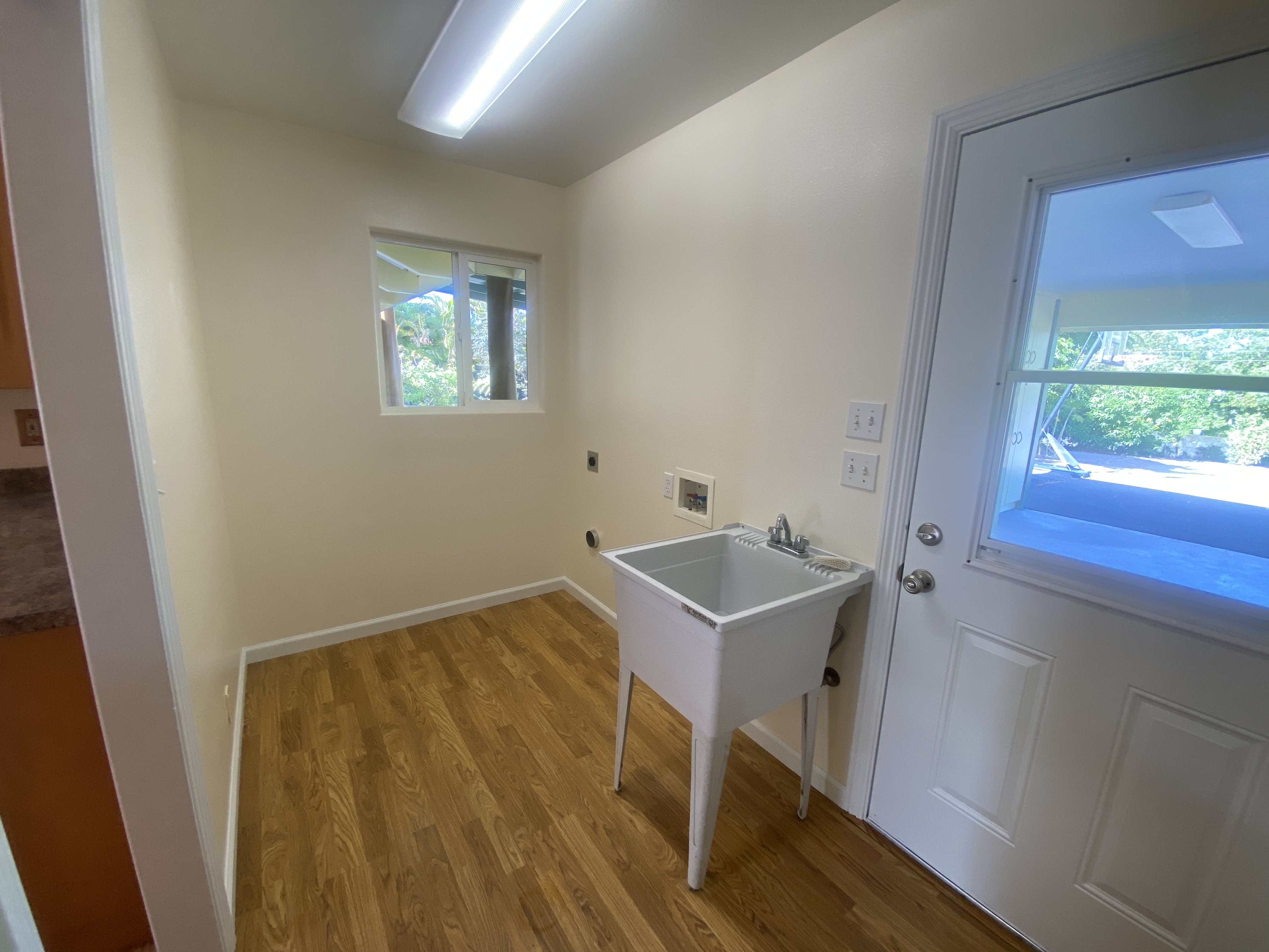 The home is very spacious and thoughtfully designed with an open floor plan, open beam and knotty pine ceilings, 2 lanais (one on each side of the home) and a very grand and welcoming Ohia post entryway.