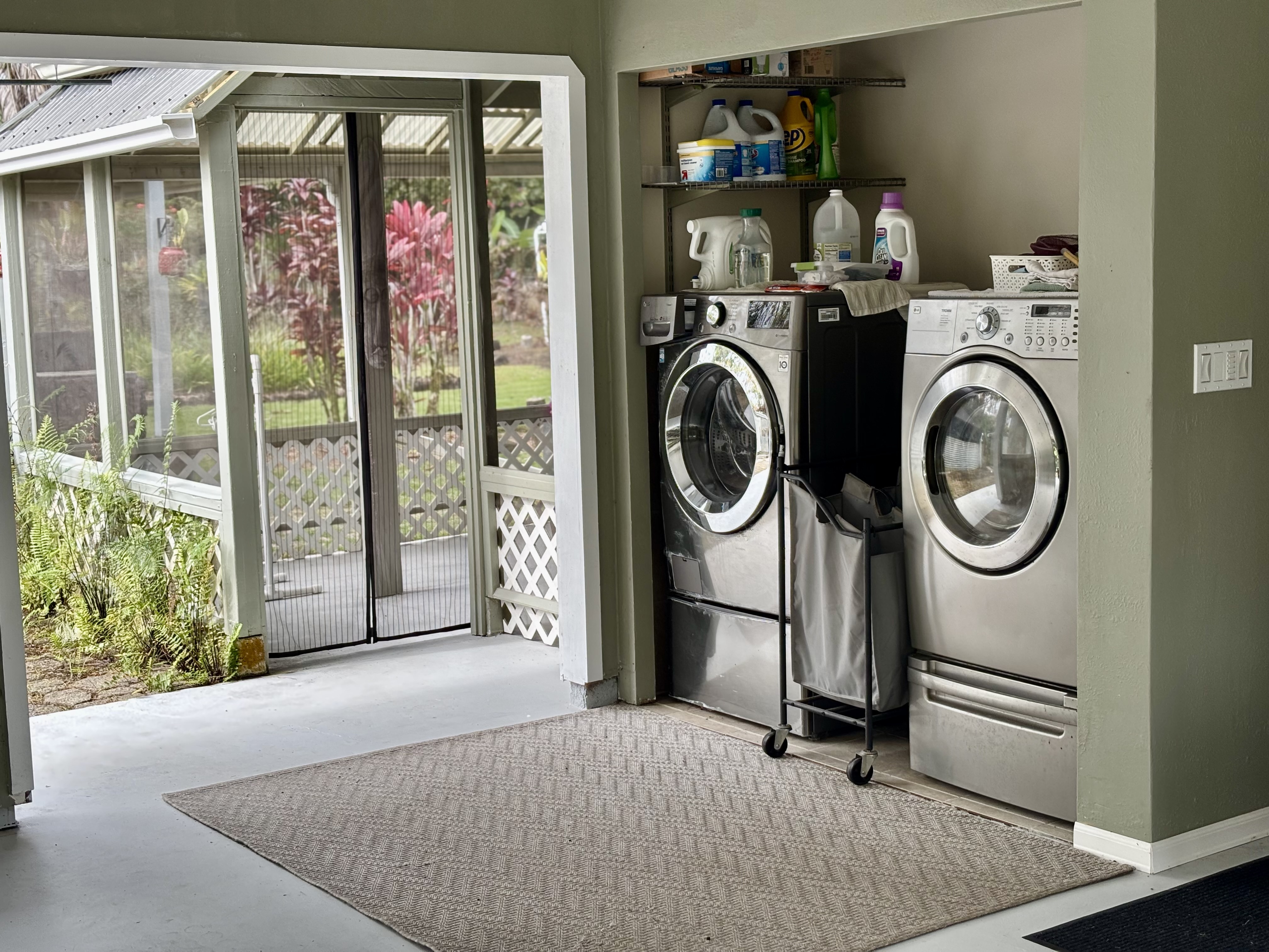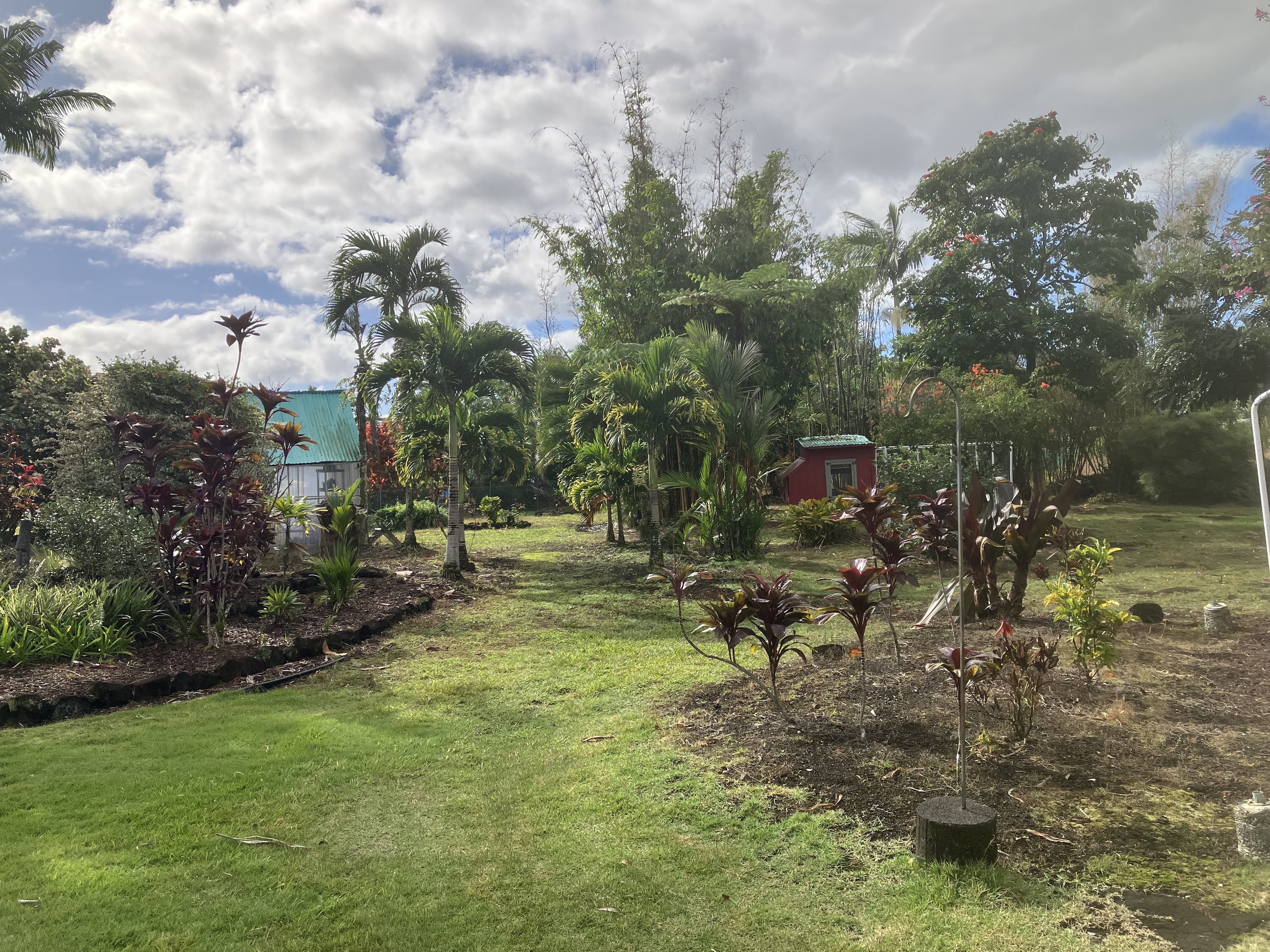 If you are looking for a Fully Turn Key Beautifully Maintained comfortable 3 bedroom 3 bath home on the big island? Look no further for here it is! Property is located off of Kaloli on the dead end side ten blocks from the Ocean. This home has been thoughtfully & lovingly upgraded with so many bonus features including : *Tropical Ceiling fans with recessed lighting and surround sound wired in all main rooms, * Kitchen has all LG Appliances including built in microwave lots of counter space and cabinets. * 2 built in pantries including a big walk in pantry, * Lots of storage, cabinet and closet space with shelving. * Sliding glass doors leading to outside from living room and master bedroom. * Porcelain tile throughout home, * Front door entry is semi formal, tiled and covered with security spot lights, * Property is fenced on three sides with gated fencing on both sides of home to keep pets safe and secure, * lots of outdoor patio area area including huge carport area adding more space. **The best part is Home is Fully Turn Key providing everything you need to comfortably move in including linens, kitchenware, tools, riding lawn mower, generator and more. Yard has been well maintained and landscaped with chicken coop, storage sheds and greenhouse. Yard hosts a huge Mango tree and bananas as well as many decorative flowering plants. Lots of room for new owner to add gardens, fruit trees and more. Property comes with riding mower and 3 trailers: 3rd trailer is just for the 25 gallon sprayer perfect tools for yard maintenance as well as three compost bins for the avid gardener.. * All four corners still have original pins and are easily identified. This area is close to Keaau and Pahoa Villages both areas offer shopping, schools, churches, medical services and more. Hilo Town is approx 20 minutes away. For more information please visit www.hppoa.org